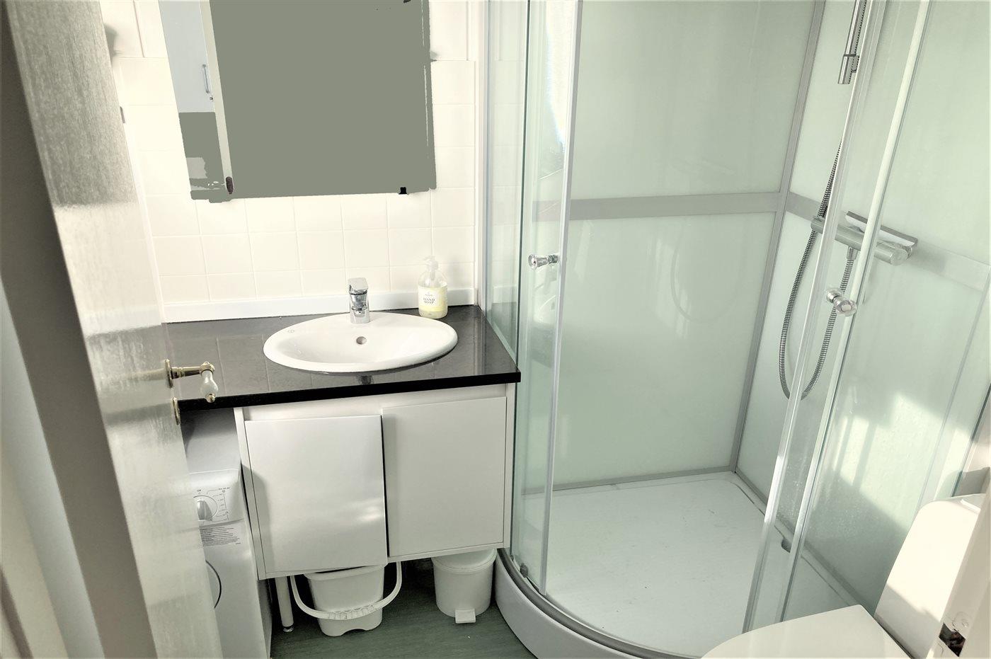 There is 1 bathroom with shower cabinet and 1 toilet.