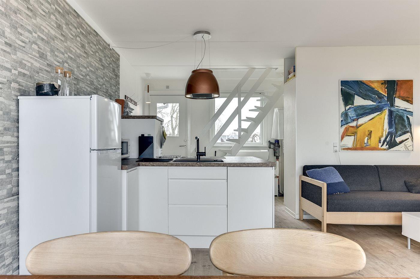 Holiday home suitable for 6 persons as well as 1 child up to 3 years. The holiday home is 60 m², in 2 levels, and is build in 1975. In 2015 the holiday home was renovated. No pets allowed. The holiday home has washing machine. Freezer capacity of 50 litres. For the youngest ones there is 1 high chair.