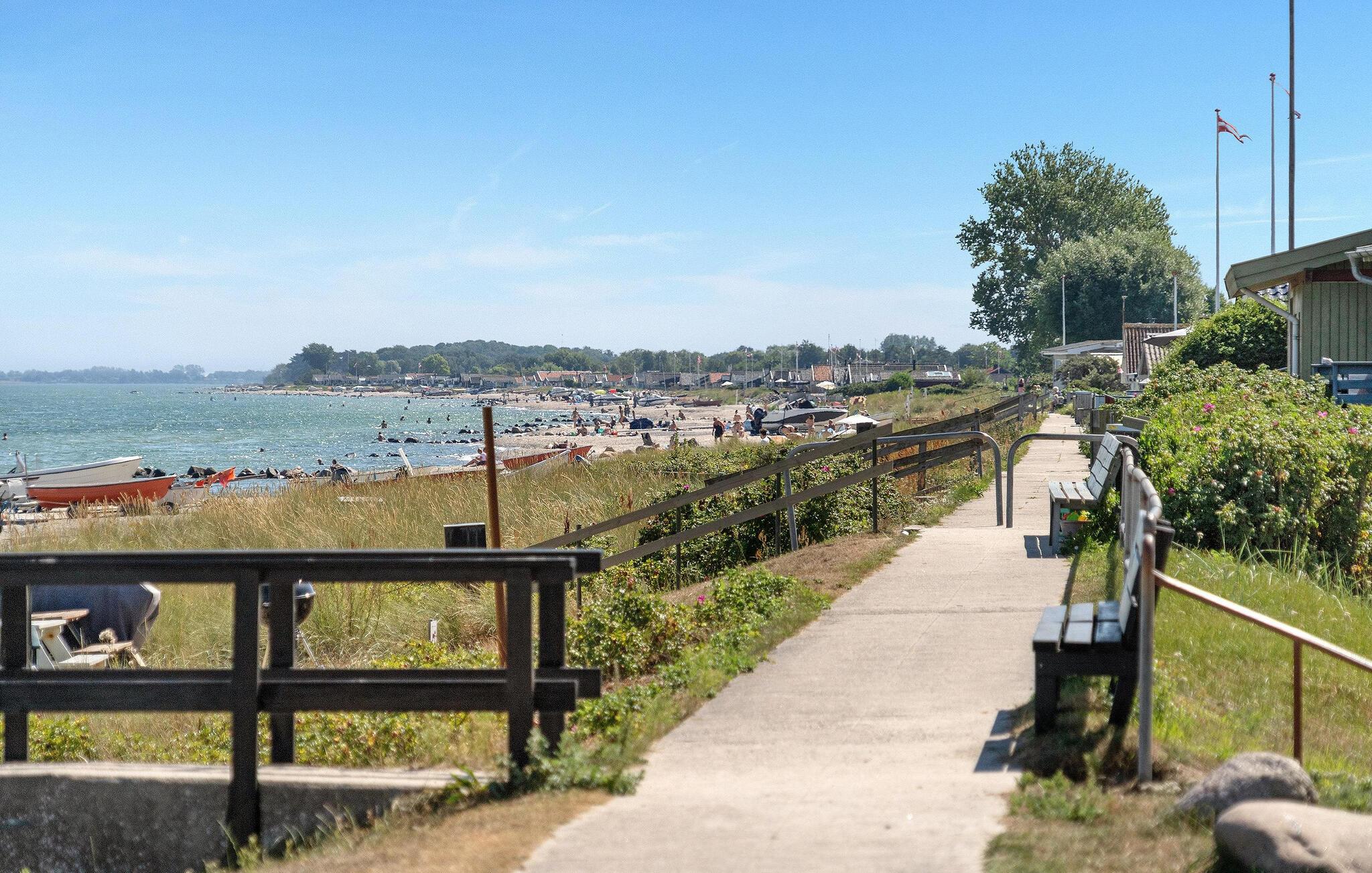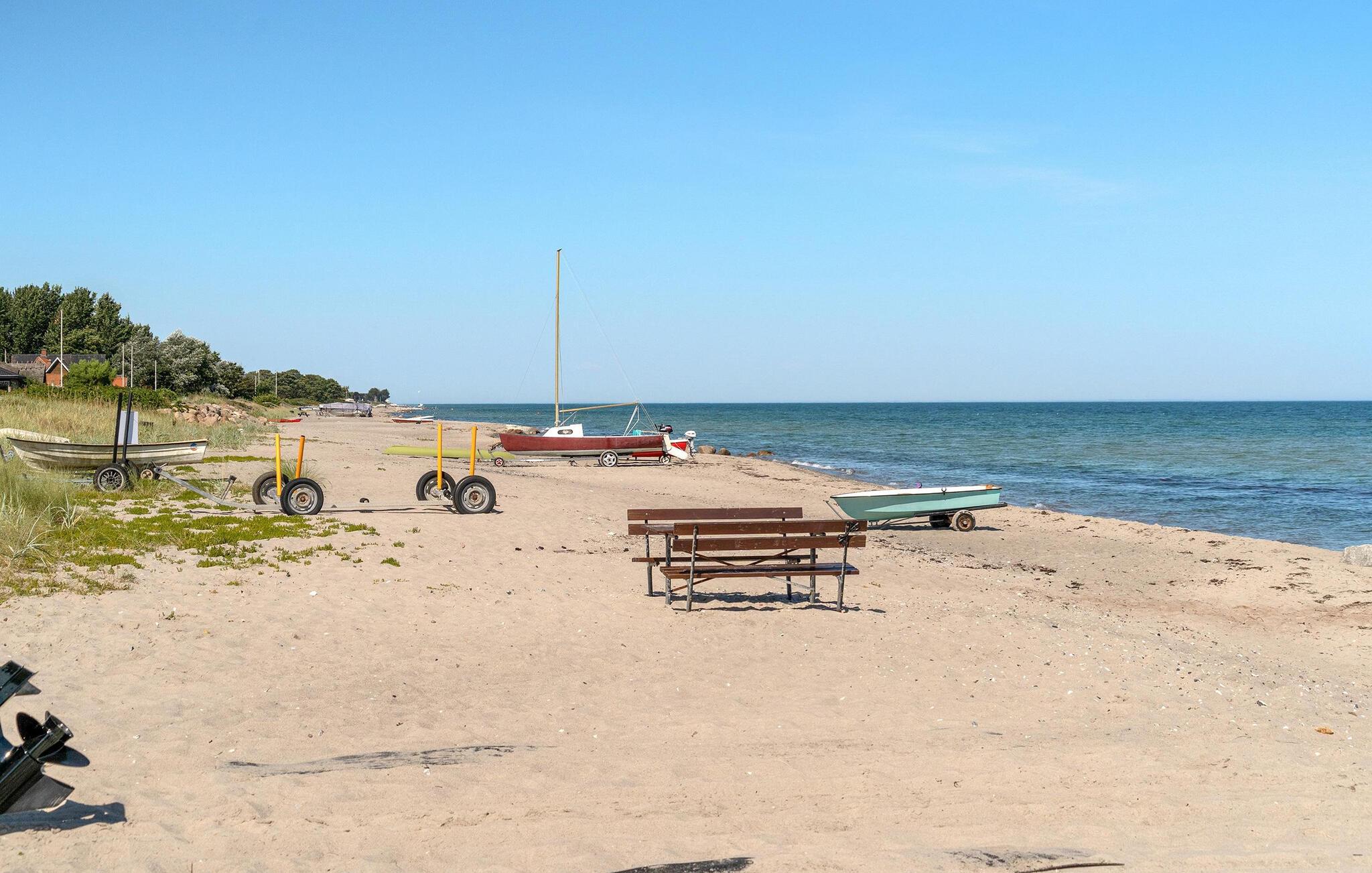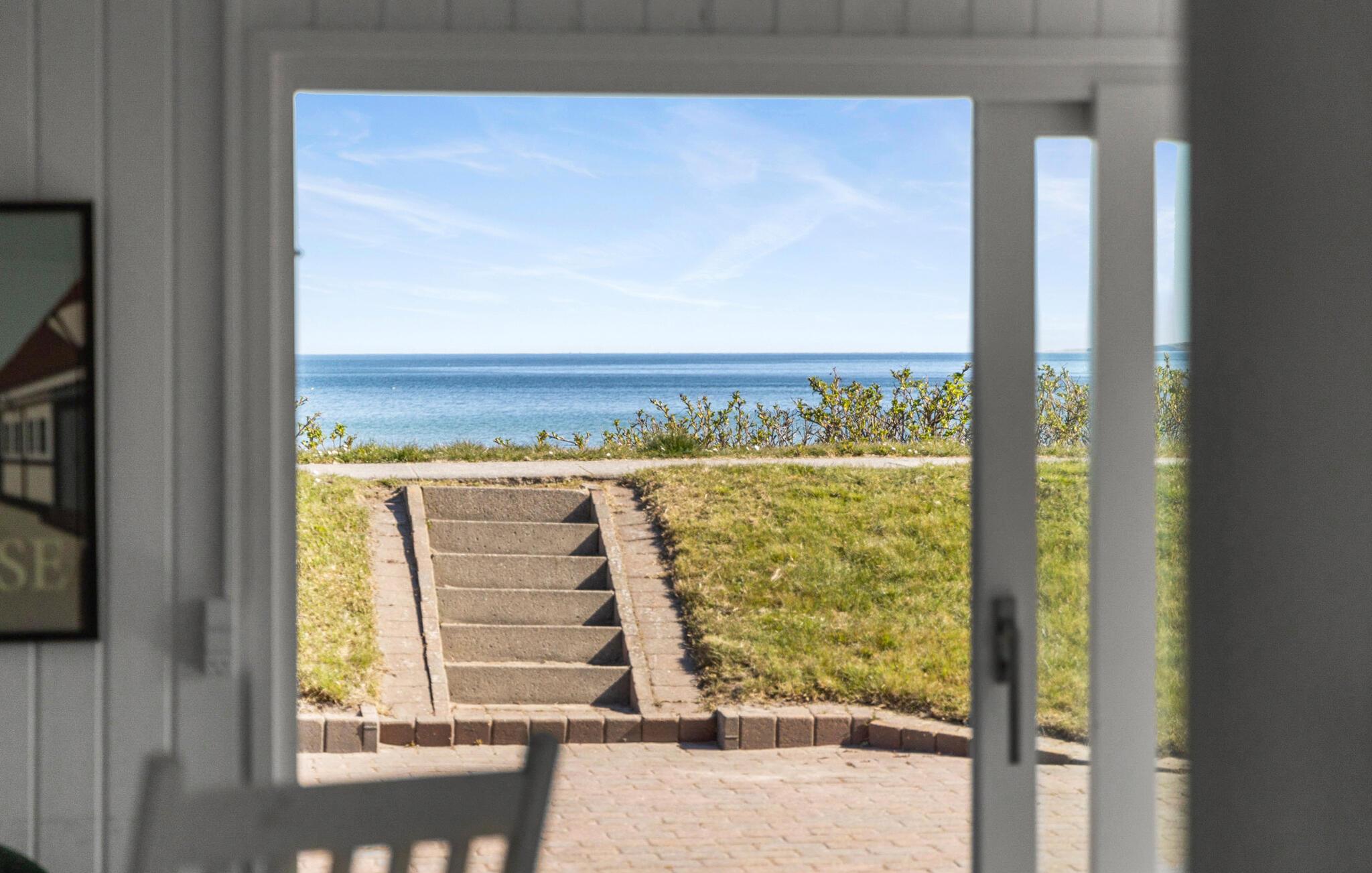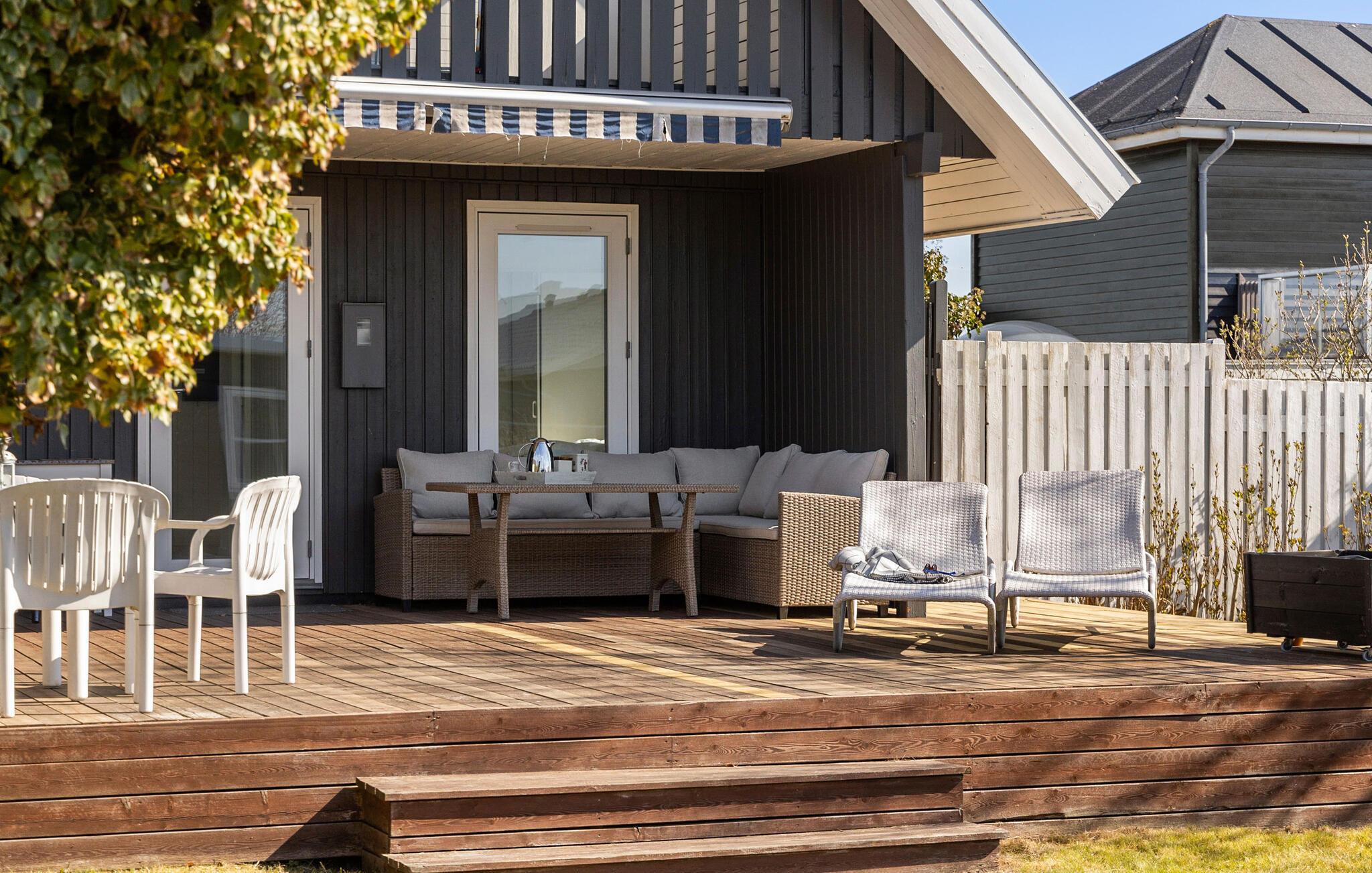 Draußen erwartet Sie eine geräumige Holzterrasse mit bequemen Gartenmöbeln und Sonnenliegen. Lassen Sie die Seele baumeln, während Sie den direkten Blick auf das Wasser genießen. Der gepflegte Garten bietet viel Platz für Freizeitaktivitäten und lädt zu entspannten Grillabenden ein. Am Sandstrand können Sie morgendliche Spaziergänge machen oder erfrischende Bäder im Meer nehmen.