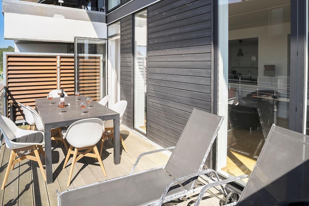 Von der Nordseite der Wohnung aus hast du eine schöne Aussicht über das Wattenmeer. Die Aussicht kommt besonders gut vom überdachten Balkon in der oberen Etage der Wohnung zur Geltung. In südlicher Richtung befindet sich ein zusätzlicher Balkon, der vom Wohnzimmer aus zu erreichen ist. Hier gibt es viel Platz und viele Möglichkeiten, einen Sitzplatz in der Sonne zu finden. Wenn du davon träumst, Sommergerichte unter freiem Himmel zuzubereiten, steht dir ein Grill zur Verfügung, und dank der Liegestühle besteht sogar die Möglichkeit für einen Mittagsschlaf im Freien.