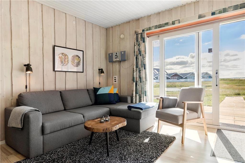 Die Quadratmeter der Wohnung sind gut genutzt, sodass es ein Badezimmer, ein Schlafzimmer und ein Wohnzimmer mit integriertem Küchenbereich gibt. Das Schlafzimmer ist mit einem Doppelbett ausgestattet, zudem gibt es ein Schlafsofa im Wohnzimmer, sodass die Ferienwohnung insgesamt vier Urlaubsgäste beherbergen kann. Alle Räume sind gepflegt, und das Wohnzimmer wurde zum Beispiel mit einem UHD-Smart-TV mit dänischen und deutschen Kanälen ausgestattet. Durch die nach Süden ausgerichtete Fensterfront des Wohnzimmers kannst du den schönen Blick auf das Wattenmeer und die grüne Natur genießen.