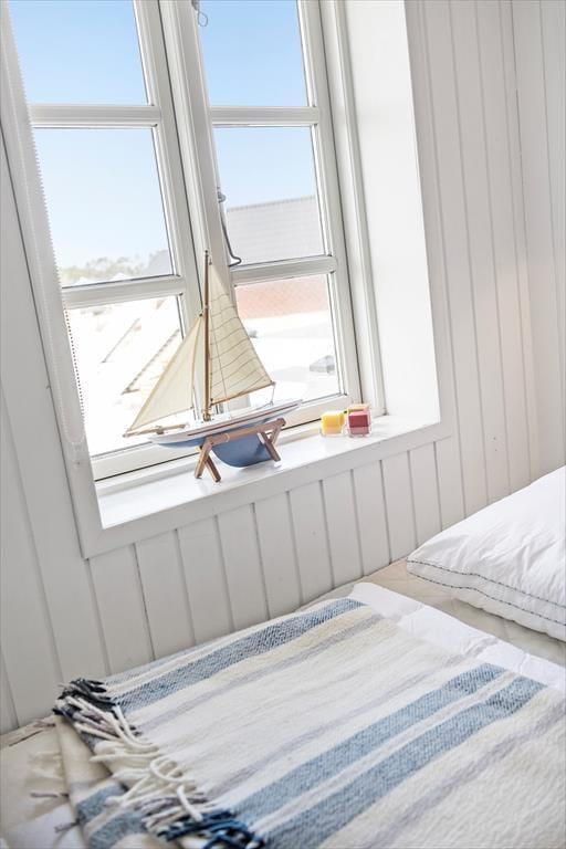 Nicht nur vom Balkon, sondern auch vom Wohnzimmer aus kannst du auf die flache Wattlandschaft blicken und beobachten, wie die Fähre und andere Schiffe auf dem Wasser vorbeigleiten. Ein solcher Ausblick eignet sich gut für die ruhigen Momente des Urlaubs, in denen du dich bei einer guten Tasse Kaffee und einem spannenden Krimi gemütlich machen kannst – vielleicht auch im Schein der Flammen, wenn die Jahreszeit dazu einlädt, den Brennofen anzumachen. Im Wohnraum ist eine helle Küche integriert, und vom Flur der Ferienwohnung aus hast du Zugang zu einem schönen Badezimmer mit Dusche und drei Schlafzimmern, von denen eines mit einem Doppelbett und die anderen beiden mit jeweils zwei Einzelbetten ausgestattet sind.