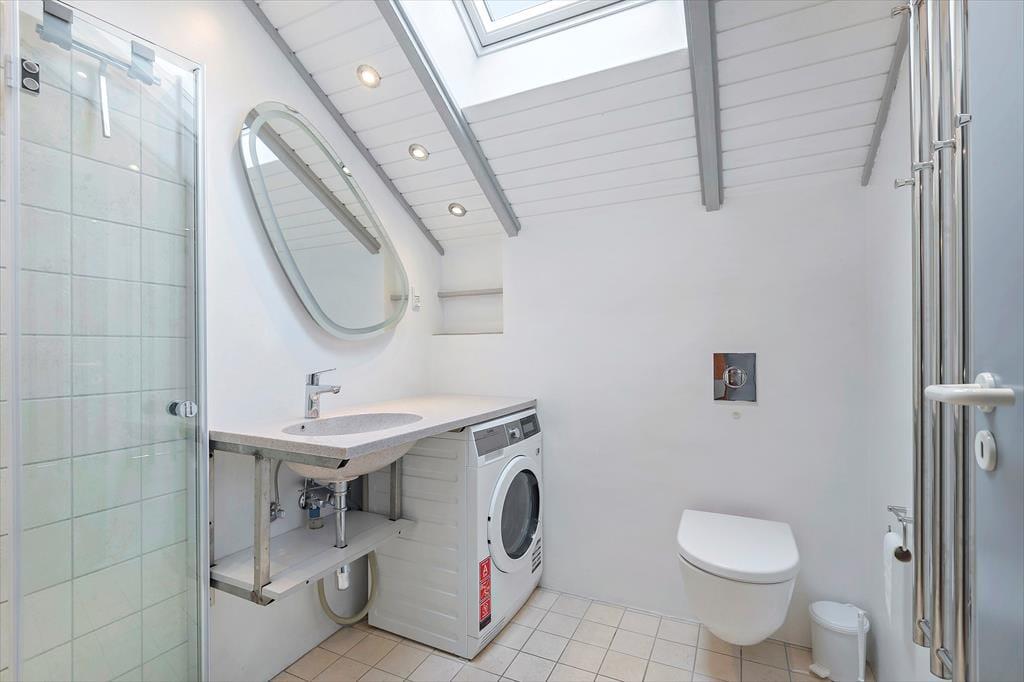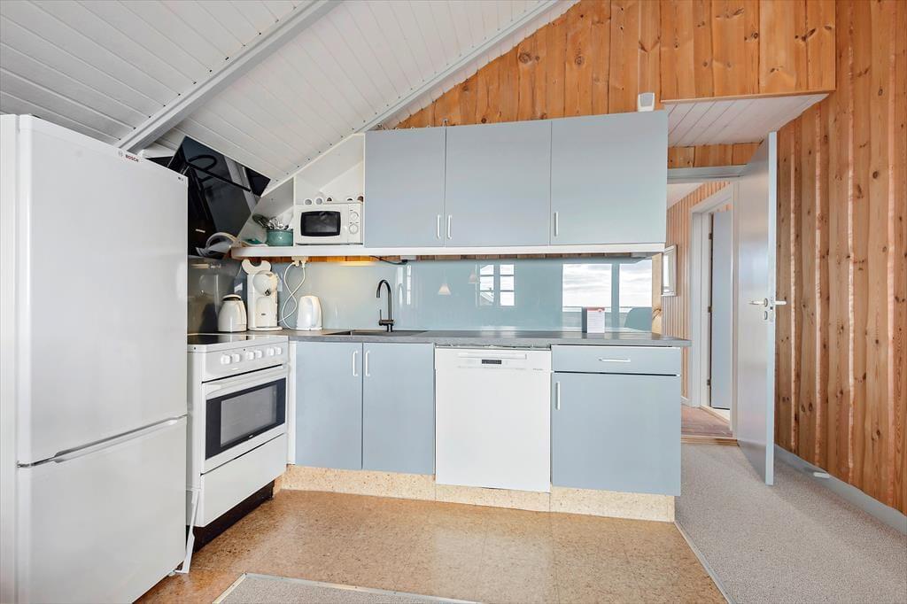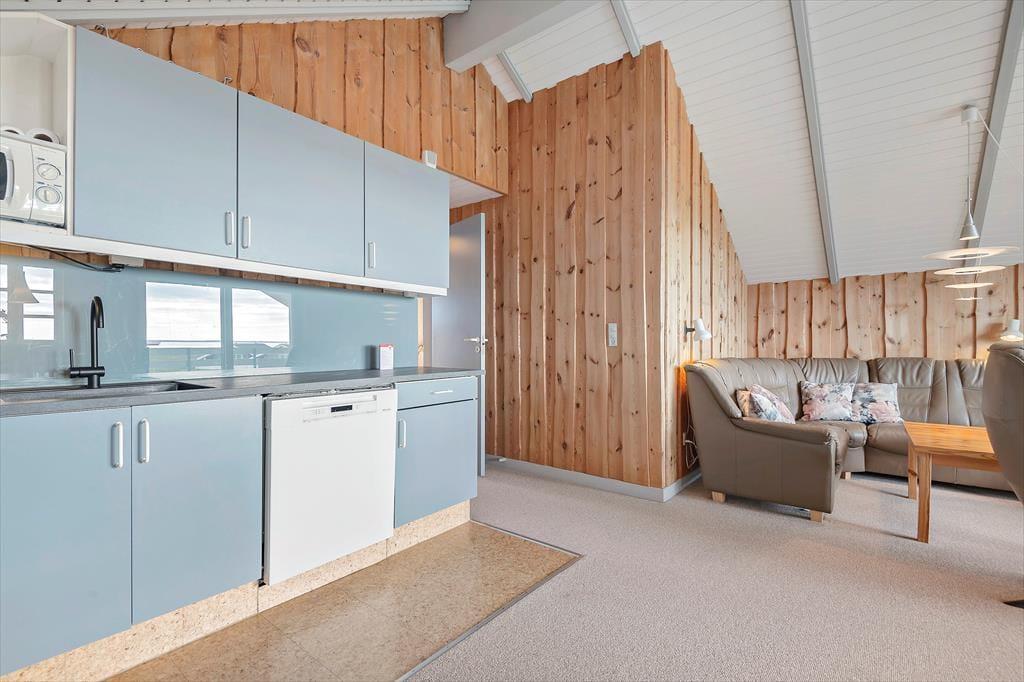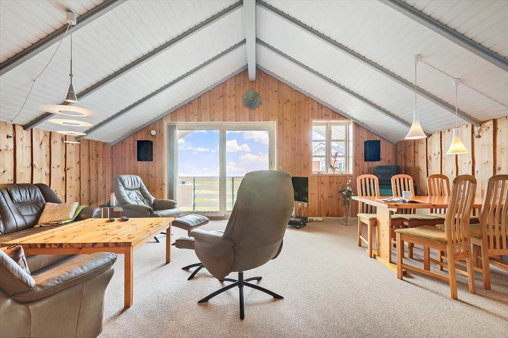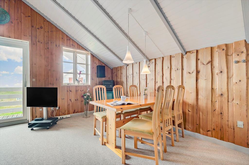 Die Wohnung liegt im ersten Stock in einem Backsteingebäude. Sie ist ganz im dänischen Sommerhausstil mit Holz vertäfelt. Und weil du im ersten Stock wohnst, gibt es hohe Decken und dadurch ein angenehmes Raumgefühl. Vom Wohnzimmer aus kannst du die Aussicht über das Wattenmeer genießen. Die Küche ist ins Wohnzimmer integriert und große Fenster verbinden den Raum mit dem Balkon. Die Wohnung hat drei gute Schlafzimmer und ein Badezimmer, welches 2017 modernisiert worden ist.