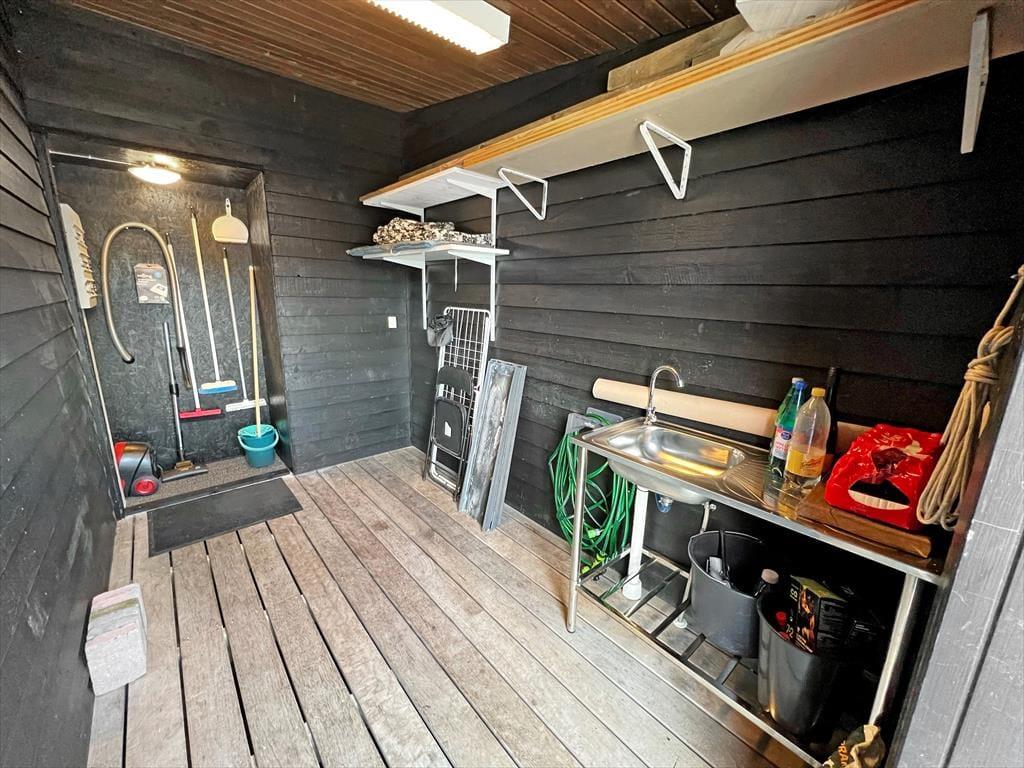 Die Terrassenausstattung mit guten Gartenmöbeln, Liegestühlen, einem Grill und einem Sonnenschirm verspricht entspannte Stunden unter freiem Himmel. Besondere Erwähnung bedarf die kleine Außenküche, in der du wunderbar Salate und dergleichen für ein köstliches Essen vom Grill zubereiten kannst.
