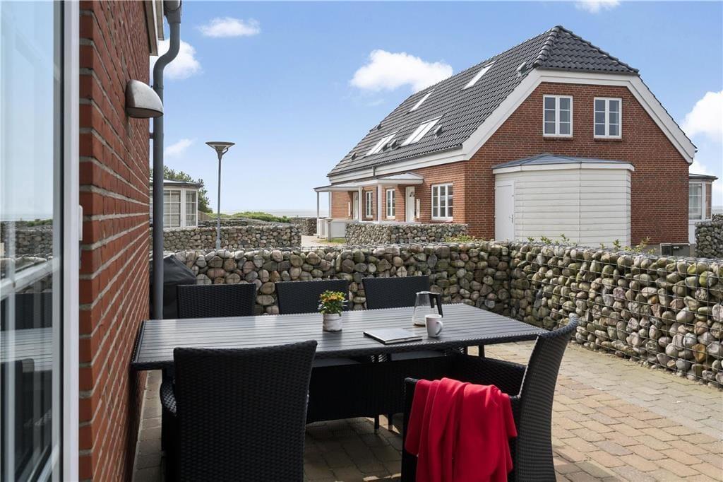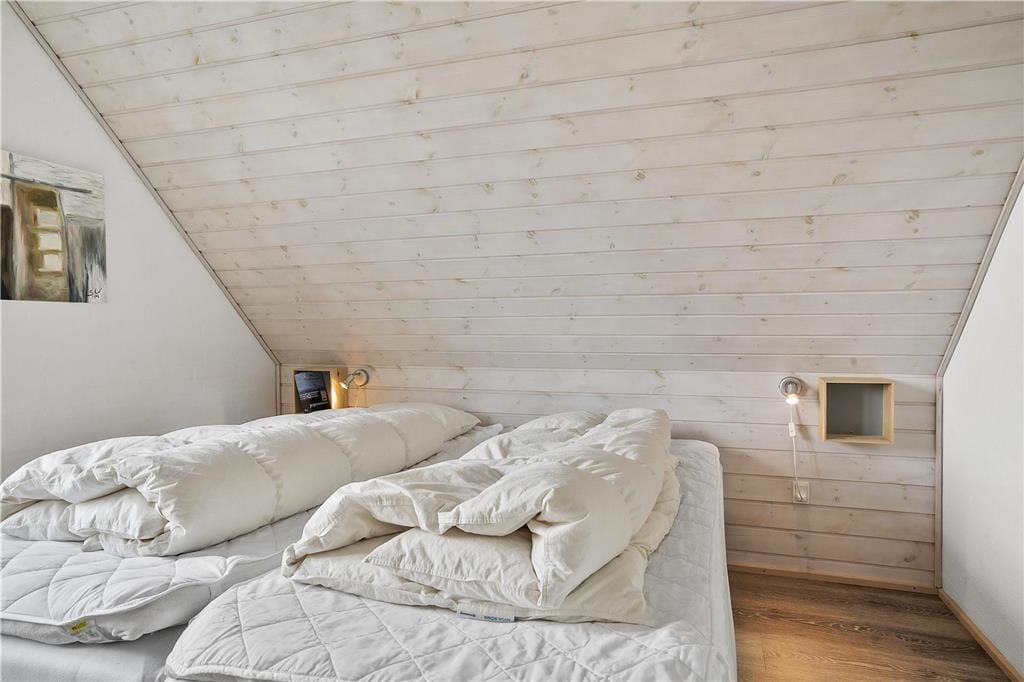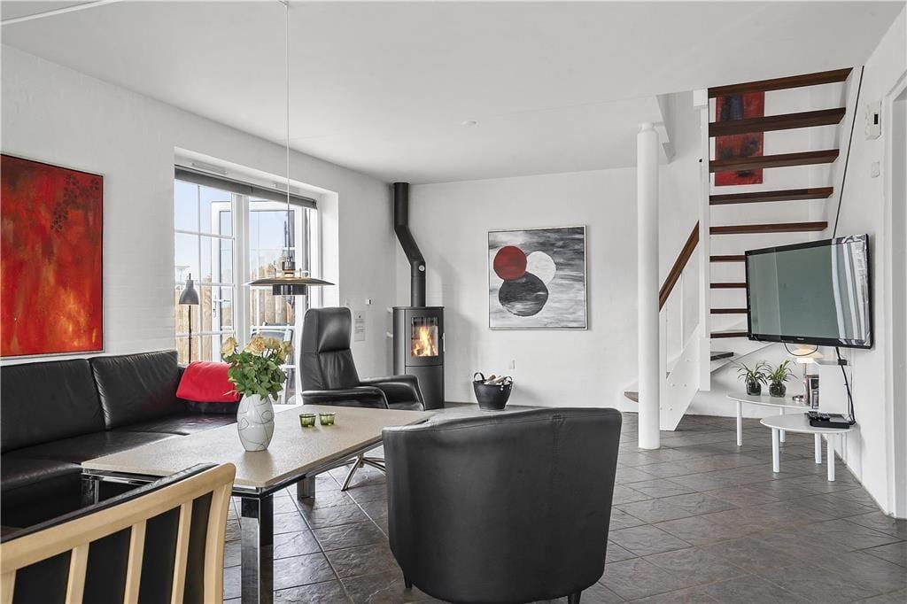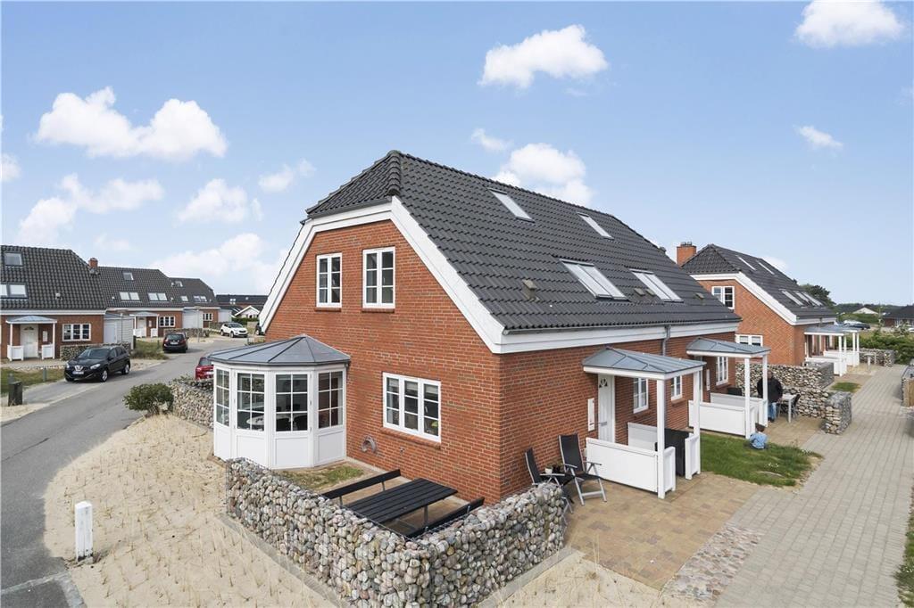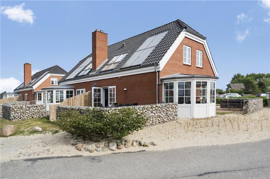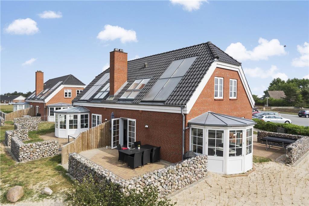 Die Ferienwohnung ist eine Doppelhaushälfte in einem energiesparsamen Qualitätsgebäude mit einer Solaranlage. Den anspruchsvollen Standard kannst du auch im Innern erkennen: Im Erdgeschoss und im Obergeschoss ist die Atmosphäre hell und einladend, und alle Räume sind geschmackvoll und mit komfortablen Möbeln eingerichtet. Der größte Teil der Wohnfläche nimmt das wunderbare Wohnzimmer und die in offener Verbindung stehende Küche ein. Es gibt eine Fußbodenheizung und einen Kaminofen. Die Küche ist gut ausgestattet, sodass du zu keinen Kompromissen bei der Essenszubereitung gezwungen wirst. Der Esstisch steht in einem sonnenbeschienenen Erker. Von hier aus kannst du die Mahlzeiten und den Meerblick genießen. Im Obergeschoss gibt es zwei helle Schlafzimmer mit Doppelbetten - darüber hinaus gibt es einen Zugang zu einem ausgebauten Dachboden mit Sitzgelegenheiten und zwei Matratzen. Hier können es sich die Jüngsten der Familie gemütlich machen. Die beiden Bäder sind gut ausgestattet und das im Obergeschoss ist mit einem Whirlpool ausgestattet.
