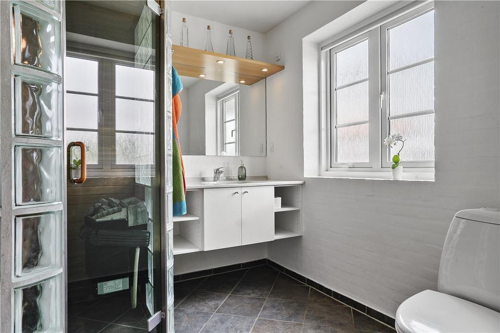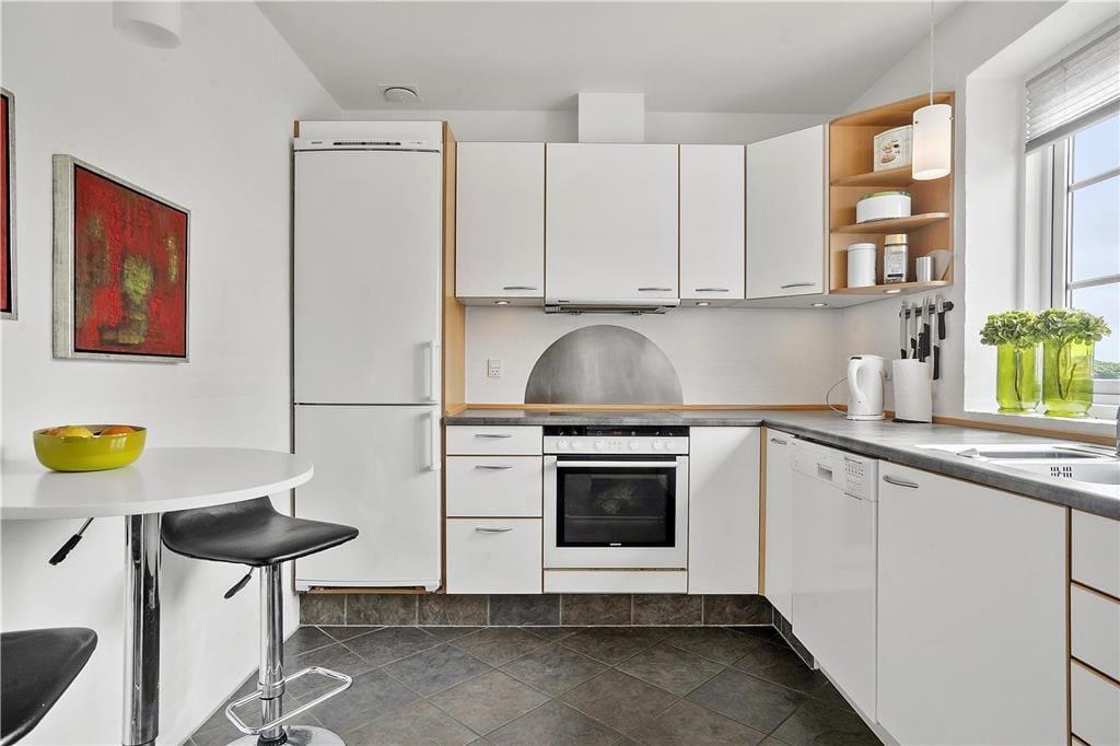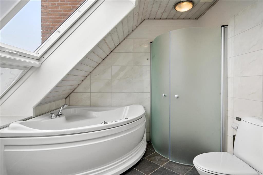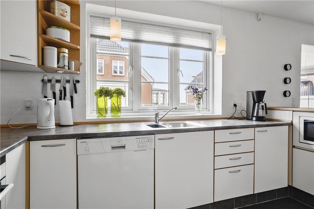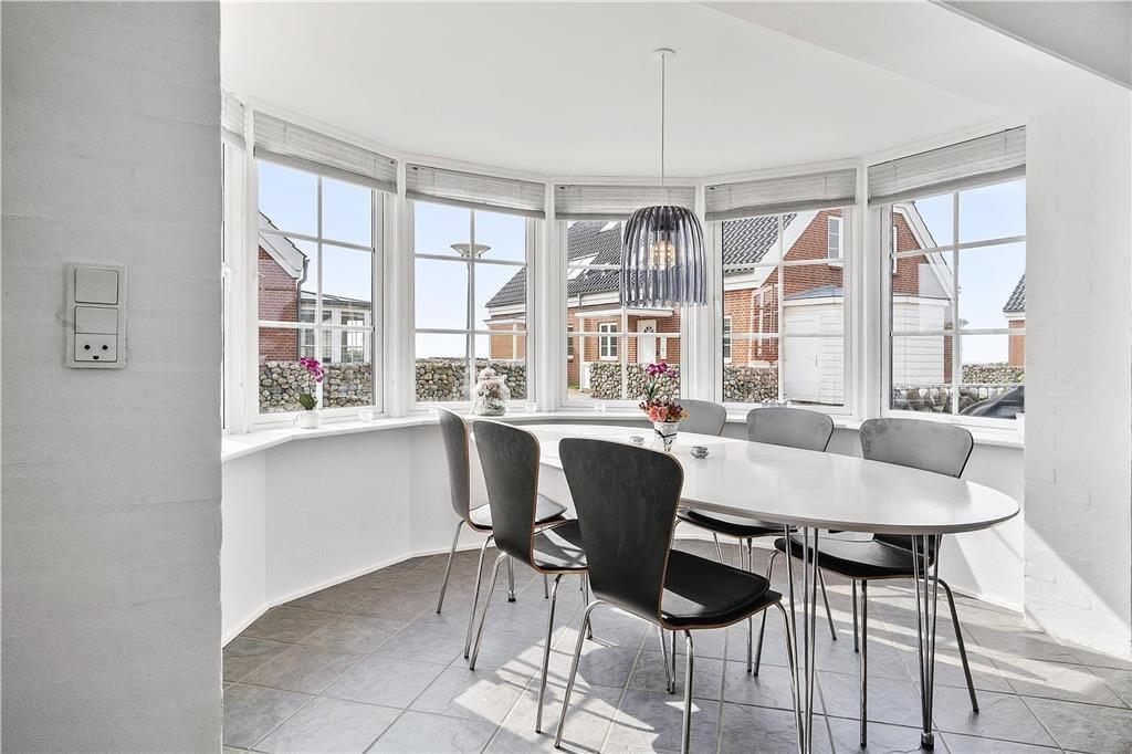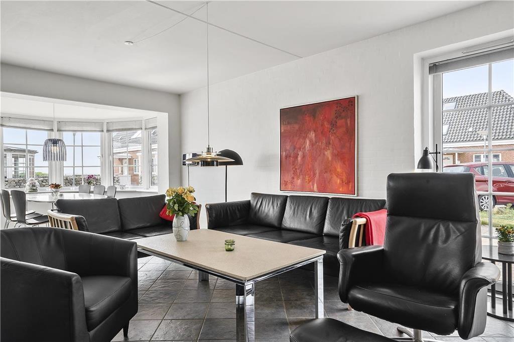 Die Ferienwohnung ist eine Doppelhaushälfte in einem energiesparsamen Qualitätsgebäude mit einer Solaranlage. Den anspruchsvollen Standard kannst du auch im Innern erkennen: Im Erdgeschoss und im Obergeschoss ist die Atmosphäre hell und einladend, und alle Räume sind geschmackvoll und mit komfortablen Möbeln eingerichtet. Der größte Teil der Wohnfläche nimmt das wunderbare Wohnzimmer und die in offener Verbindung stehende Küche ein. Es gibt eine Fußbodenheizung und einen Kaminofen. Die Küche ist gut ausgestattet, sodass du zu keinen Kompromissen bei der Essenszubereitung gezwungen wirst. Der Esstisch steht in einem sonnenbeschienenen Erker. Von hier aus kannst du die Mahlzeiten und den Meerblick genießen. Im Obergeschoss gibt es zwei helle Schlafzimmer mit Doppelbetten - darüber hinaus gibt es einen Zugang zu einem ausgebauten Dachboden mit Sitzgelegenheiten und zwei Matratzen. Hier können es sich die Jüngsten der Familie gemütlich machen. Die beiden Bäder sind gut ausgestattet und das im Obergeschoss ist mit einem Whirlpool ausgestattet.
