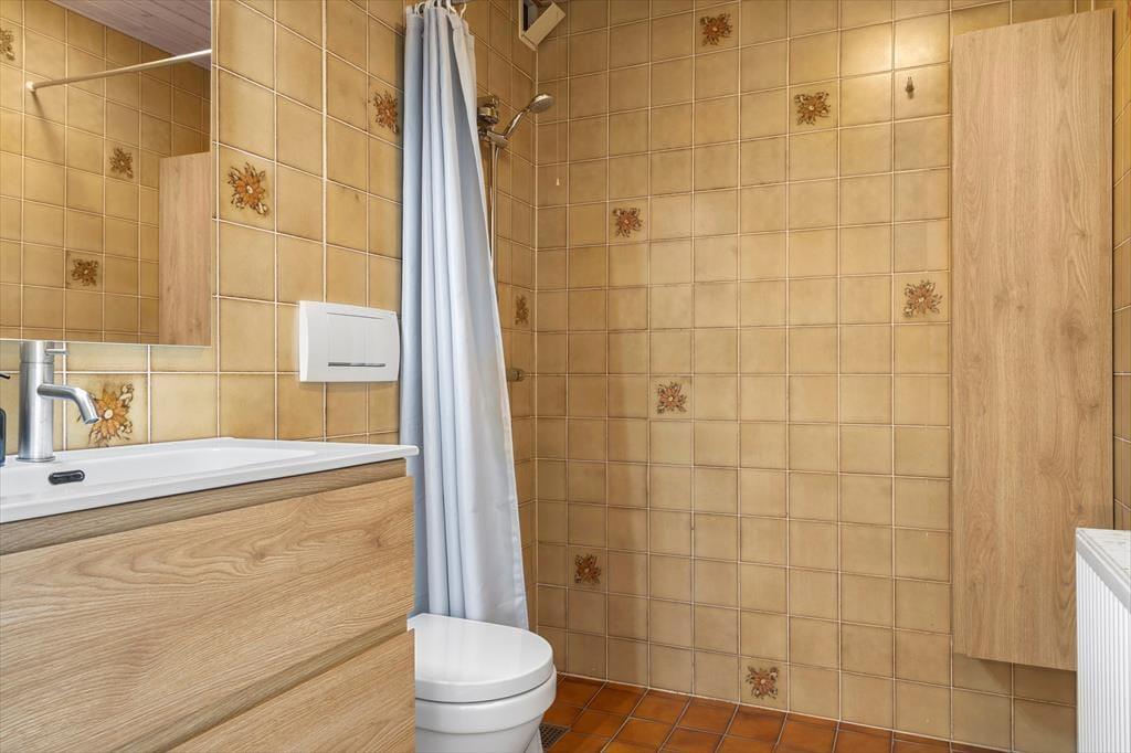 Im Innenraum empfängt dich eine helle und einladende Wohnatmosphäre. Alle Räume bestechen mit ihrer schönen und funktionalen Einrichtung. Die Wohnung beherbergt ohne Probleme bis zu vier Urlaubsgäste. Zur Wohnfläche zählen ein Badezimmer, ein Schlafraum mit einem Doppelbett und ein Durchgangszimmer mit einem Etagenbett. Falls du lieber im Wohnzimmer schlafen möchtest, ist dies auf dem komfortablen Schlafsofa möglich. Der Wohnraum beinhaltet darüber hinaus einen Esstisch und einen Fernseher mit dänischen und deutschen Sendern. Da die Küche offen in den Wohnraum integriert ist, befindest du dich selbst beim Zubereiten der Mahlzeiten mitten im Familiengeschehen.