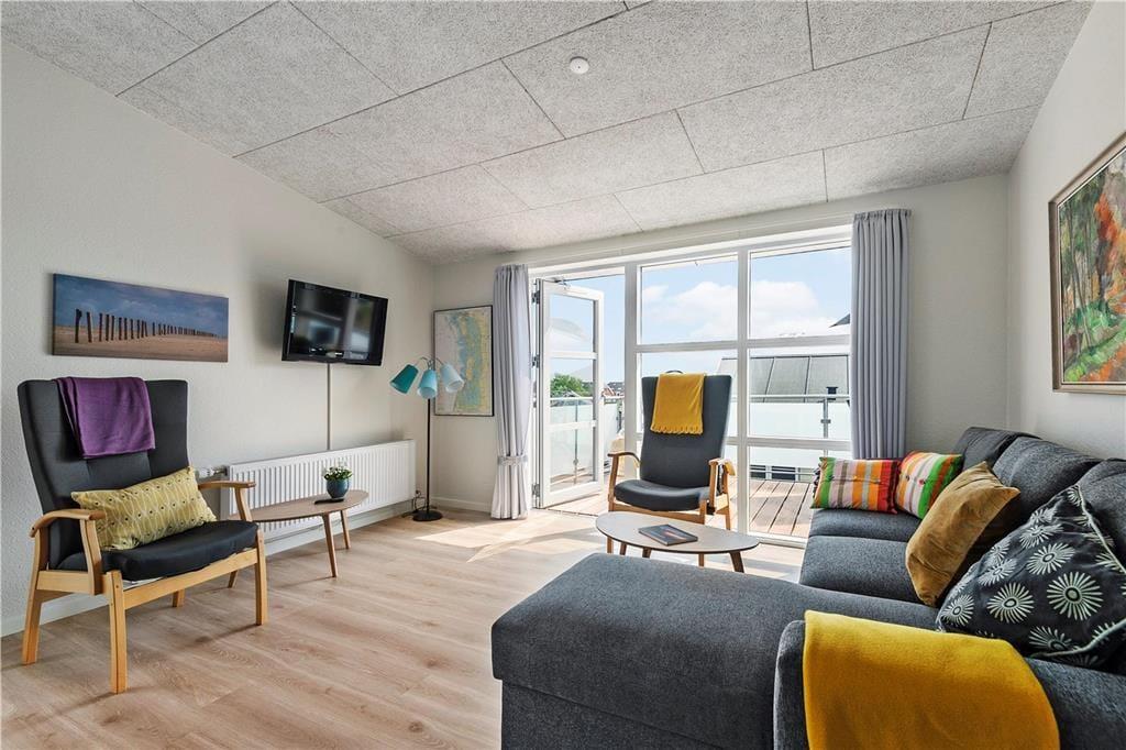 Wenn du Ferien in dieser Ferienwohnung machst, wohnst du hoch über Havnebys zentralem Platz und hast eine Aussicht bis zum Wattenmeer. Die attraktive Lage bestimmt nicht nur die Qualität; auch die Wohnung ist hell und schön eingerichtet und zudem gut zugänglich für Rollstuhlfahrer und Gehbehinderte.