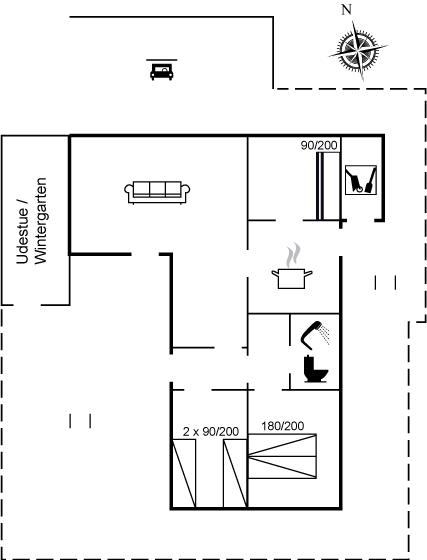 The holiday home is situated on a 1198 m² natural site. Situated 2000 m from the sea. Situated 500 m from the Wadden Sea. Nearest shop is 500 m away. You will find a golf course in a distance of 250 m. A 80 m² terrace belong to the holiday home. Furthermore the house has a 3 m² covered terrace. Equally, you have access to a sunroom. You find a tool shed. Barbecue at your disposal. Carport is at your disposal. Parking place by the holiday home.