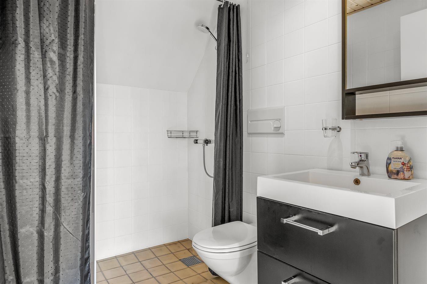 There is 1 bathroom with shower and 1 toilet.