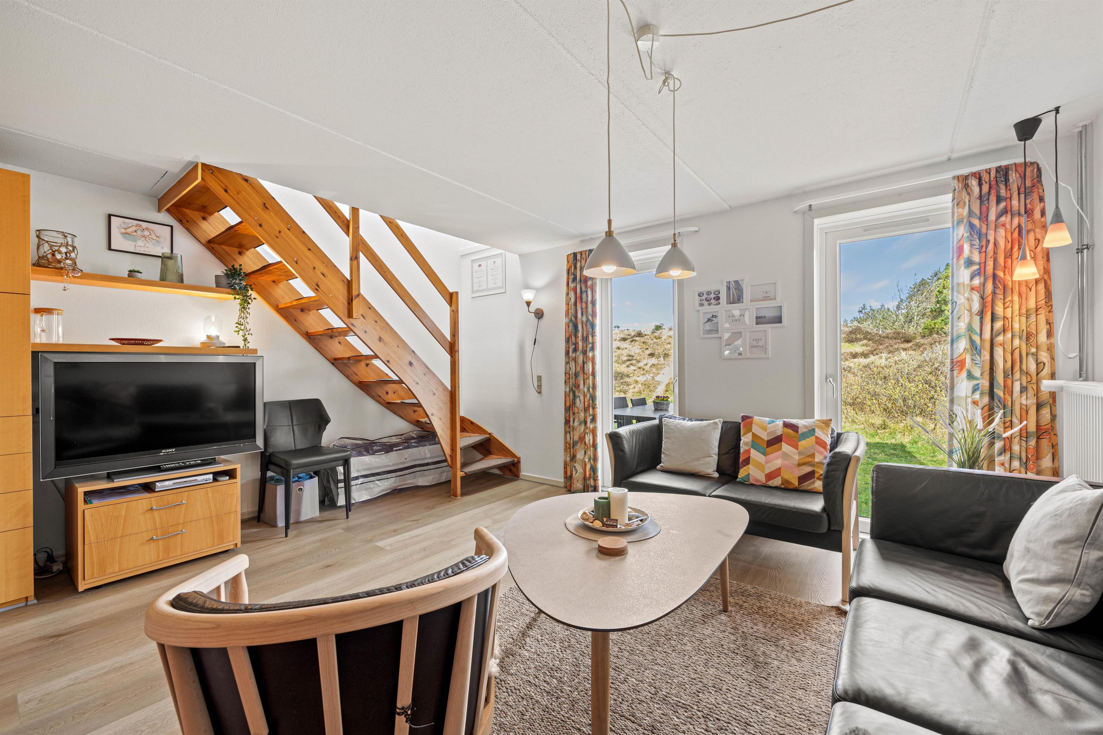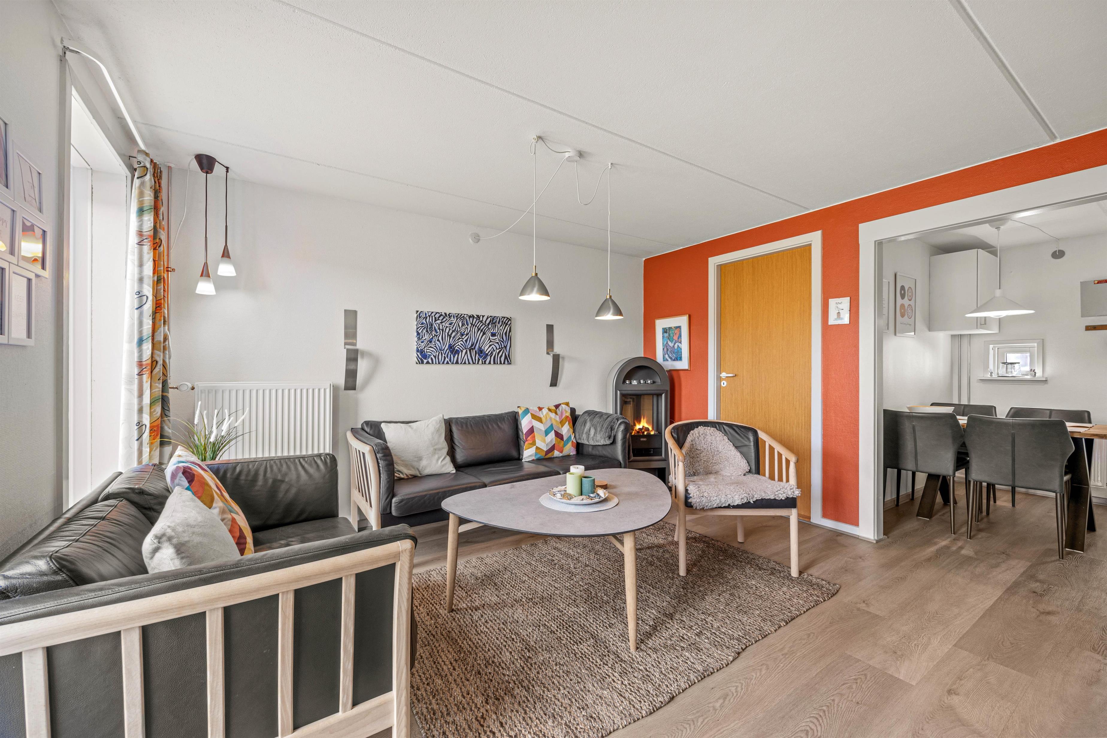 This attractive semi-detached holiday home, located at Vestergade 97B in Havneby on the North Sea island of Rømø, is ideal for a family holiday. The cosy 73-square-metre holiday home accommodates up to six guests and one dog. The ground floor was renovated in 2023 and now features practical vinyl flooring in the living and kitchen areas. An electric fireplace creates a welcoming atmosphere, perfect for relaxing hours on the sofa.
