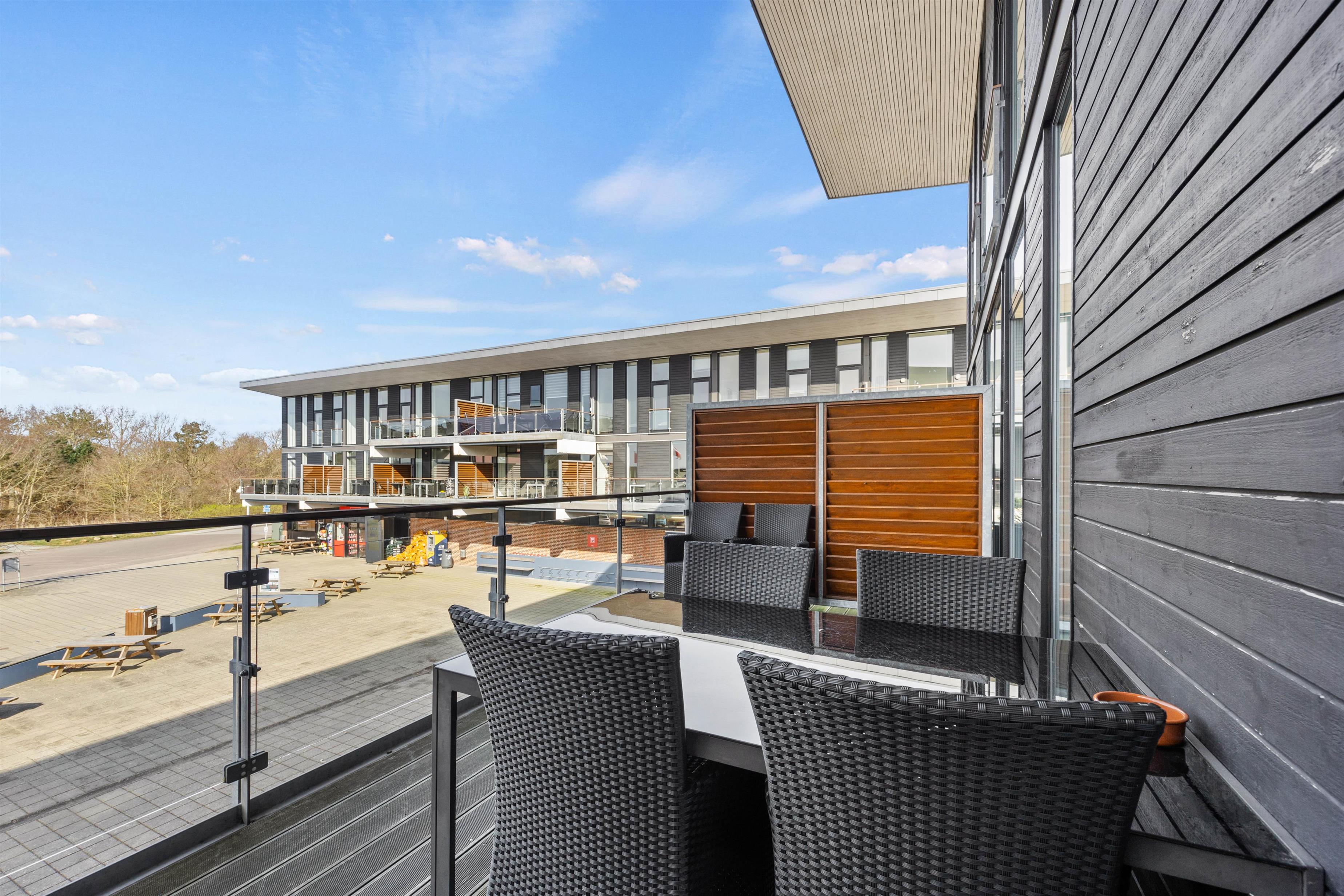 Welcome to this attractive residential complex where this modern holiday apartment awaits! The apartment is spread across two floors, elegantly furnished with large windows providing abundant natural light and beautiful views over the Wadden Sea.The first floor features a practical utility room, a bathroom, and an open-plan living and dining area combined with the kitchen. Here you can enjoy pleasant hours cooking, playing games, relaxing with a good board game or book. On cooler days, the eco-friendly wood-burning stove creates a warm and cosy atmosphere. From the first floor, you have direct access to the large terrace where you can enjoy breakfast, sunbathe, and unwind.The second floor has a balcony that also offers magnificent views. Additionally, there are three large bedrooms upstairs, two with double beds and the third with twin beds. The comfortable beds guarantee a good night's sleep, ensuring you start each day refreshed and well-rested. There's a second bathroom on this floor, which, like the other, features underfloor heating.