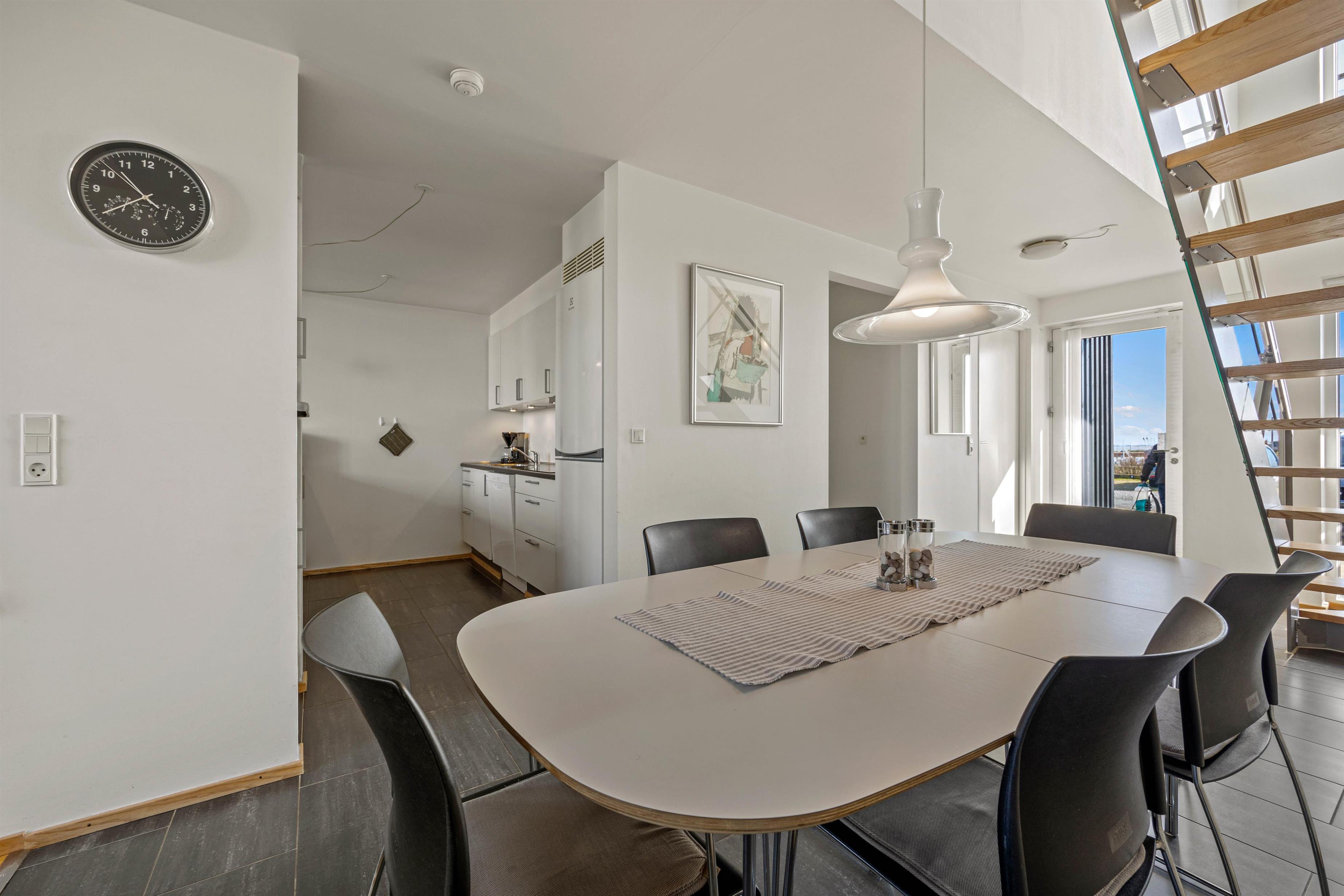This beautiful two-storey holiday apartment, spanning 124 square metres, offers spectacular views over the Wadden Sea National Park and Havneby. You'll enjoy light-filled rooms and a wonderful terrace/balcony, with the harbour, cafés and shopping facilities close by. Welcome to Nordre Havnebyvej 60 on Rømø in Denmark.