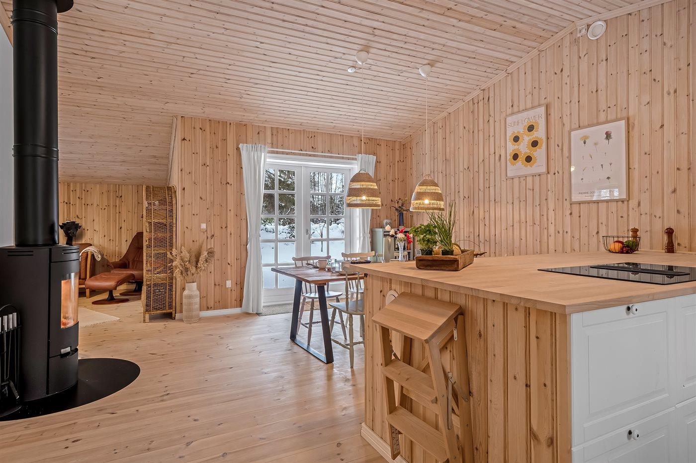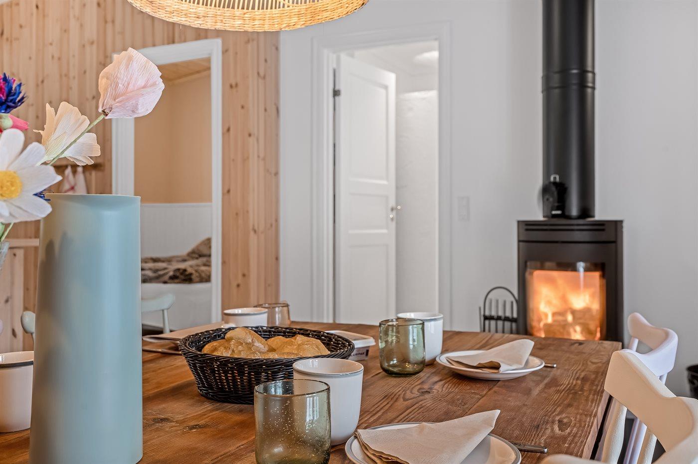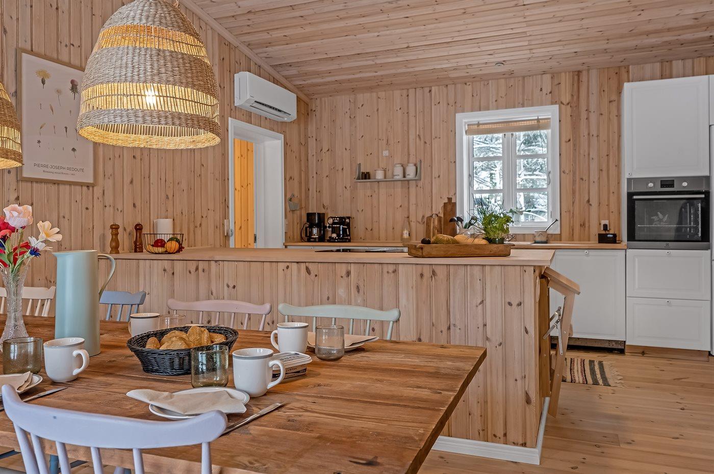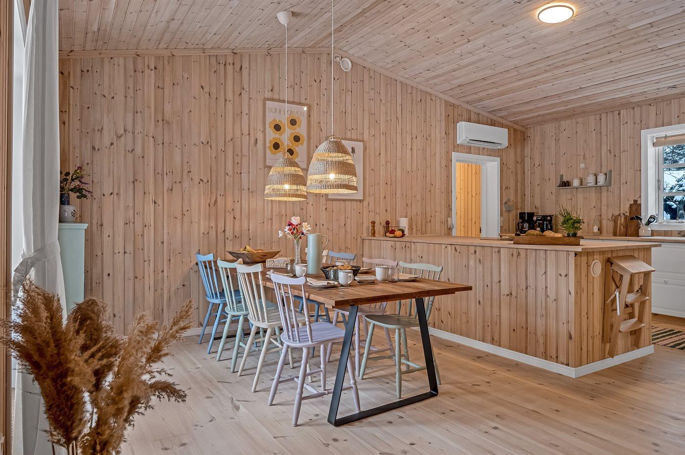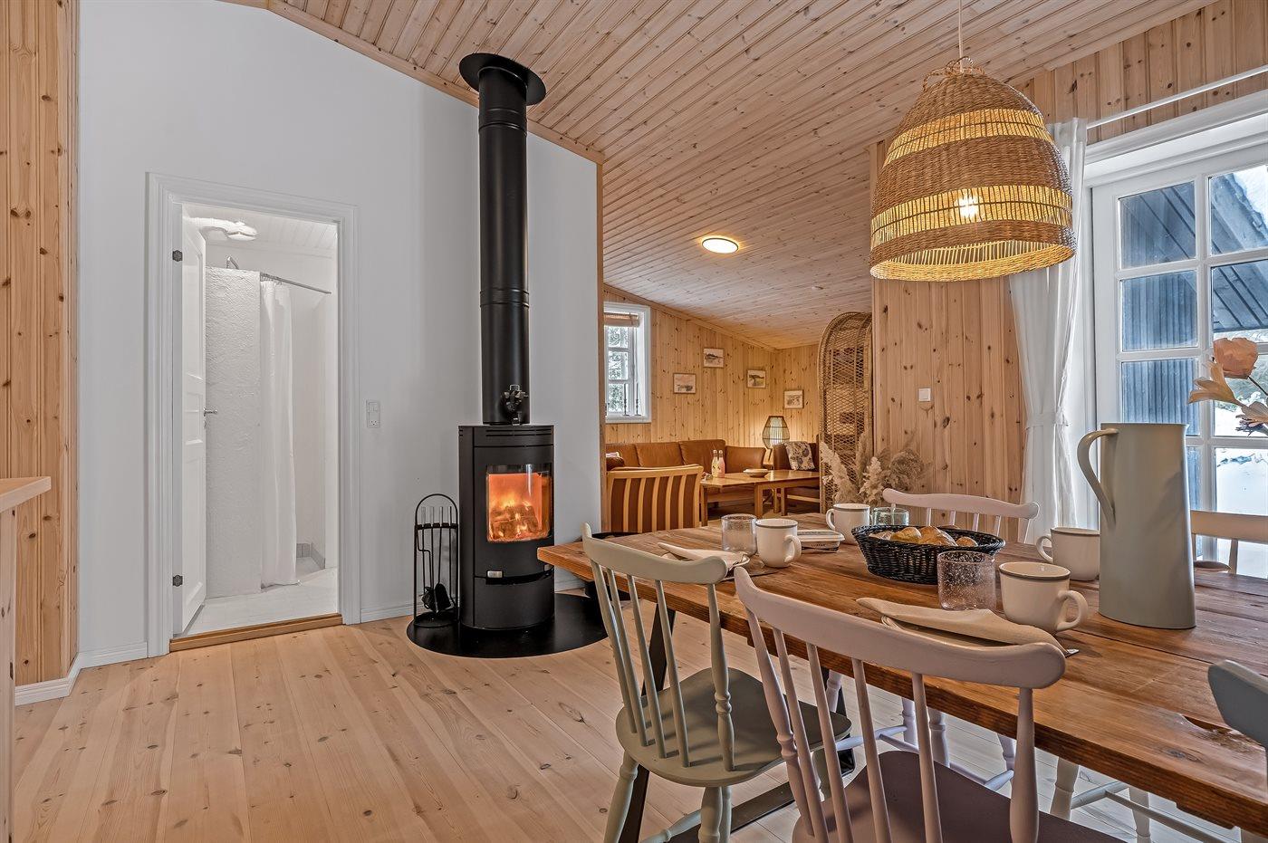 Holiday home suitable for 8 persons . The holiday home is 115 m² and is build in 1966. In 2025 the holiday home was renovated. No pets allowed. The holiday home is equipped with 1 energy-saving air-to-air heat pump. The holiday home has washing machine. Freezer capacity of 74 litres. Further more there is 1 wood-burning stove. For the youngest ones there is 1 high chair.