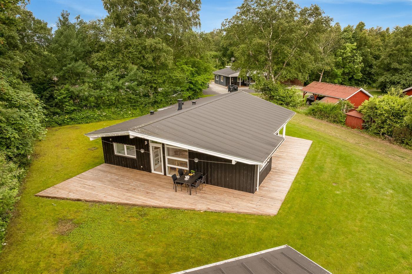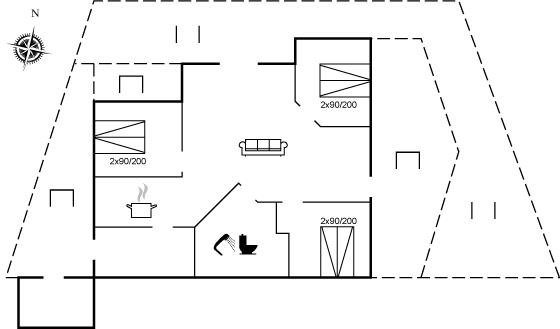The holiday home is situated on a 1034 m² natural site. Situated 200 m from the sea. Nearest shop is 2500 m away. A terrace belong to the holiday home. Furthermore the house has a covered terrace. Barbecue at your disposal. Parking place by the holiday home.