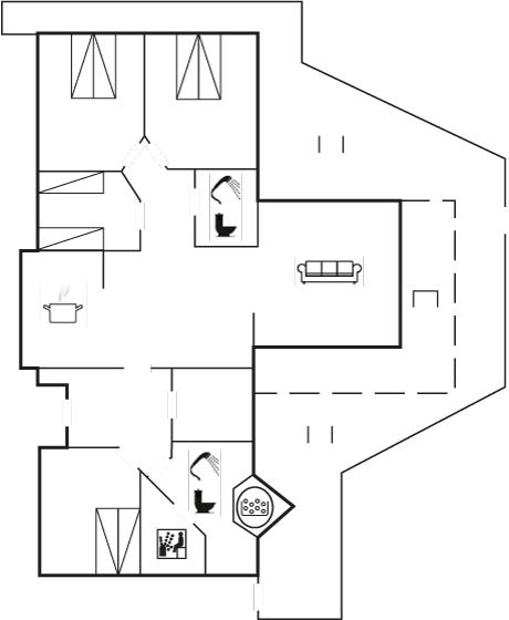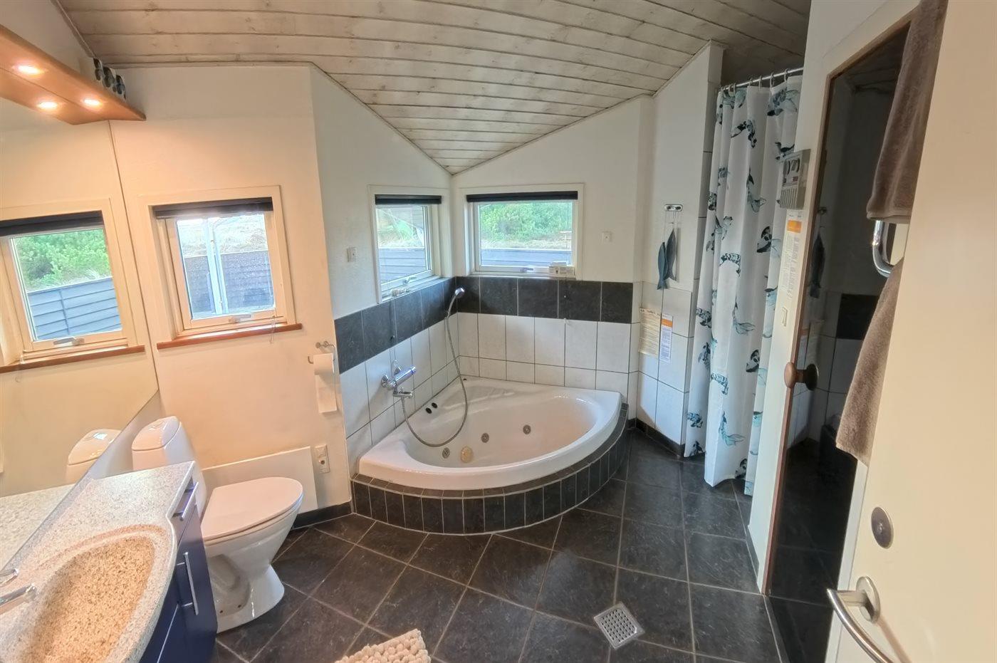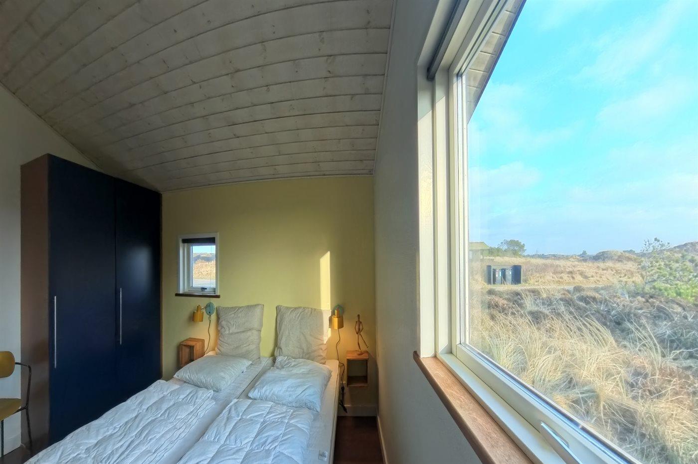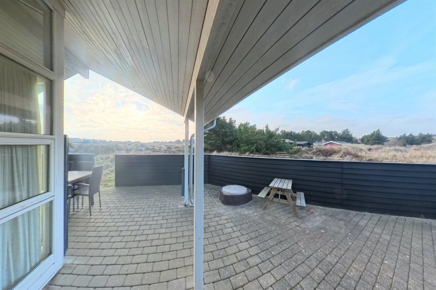 The holiday home is situated on a 1650 m² natural site. Situated 500 m from the sea. Nearest shop is 2200 m away. 45 m² enclosed terrace belong to the holiday home. Hereof 15 m² covered terrace. You find a tool shed. Swing. Sandbox. Parking place by the holiday home.