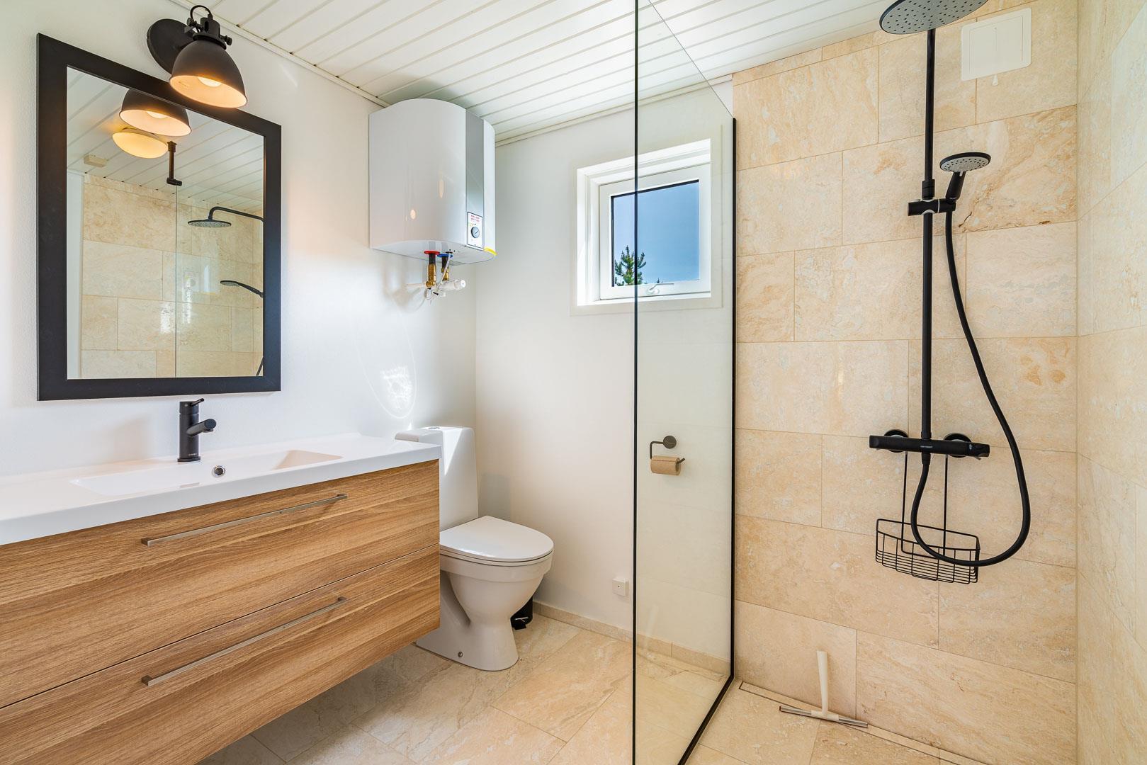 Das moderne Badezimmer ist mit Fußbodenheizung ausgestattet – perfekt für Komfort und Wohlbefinden.