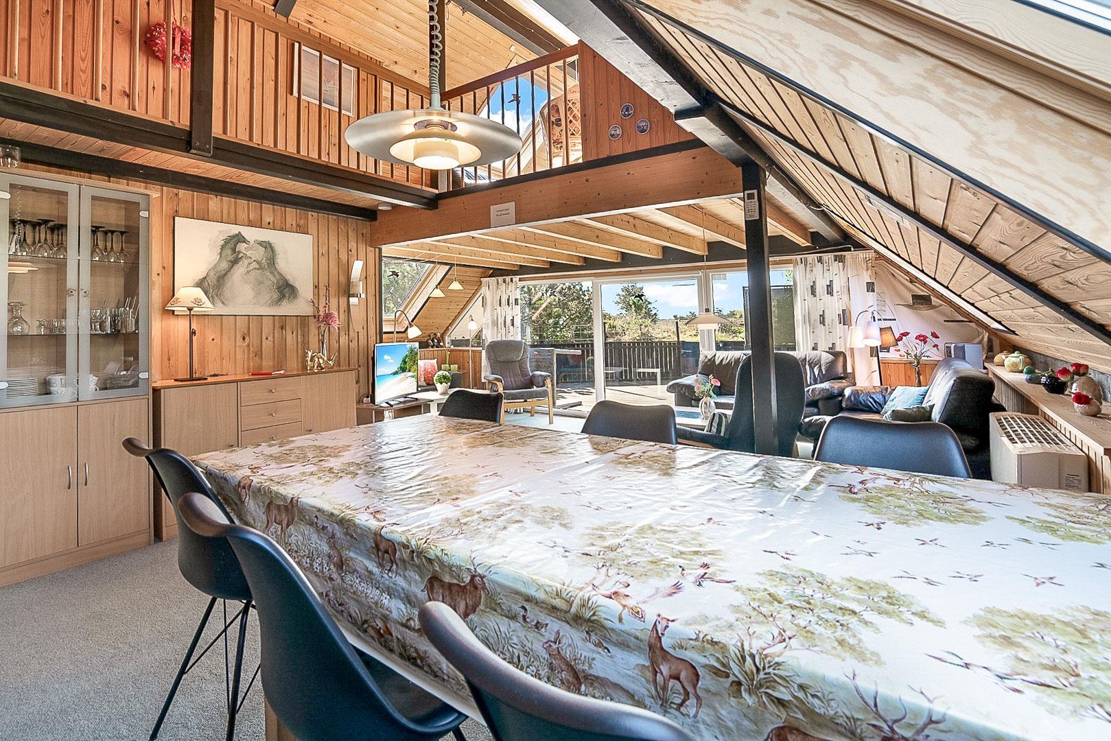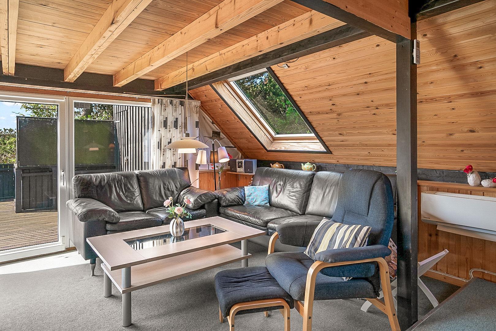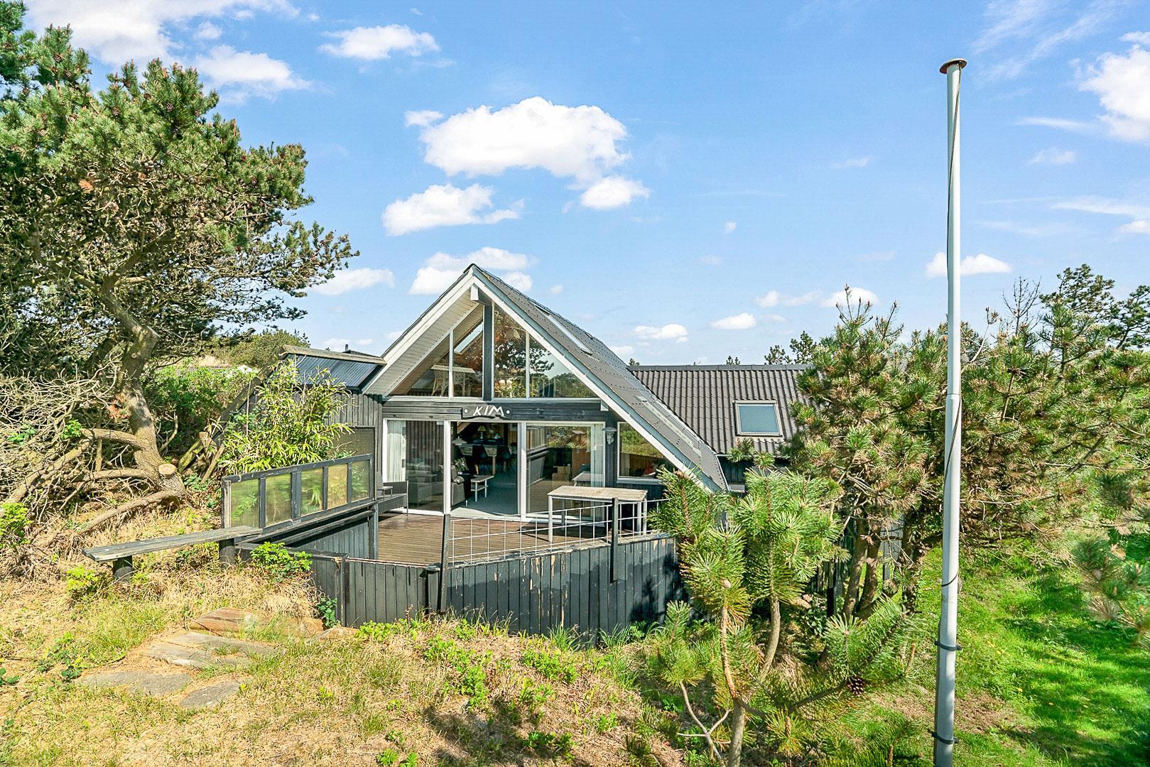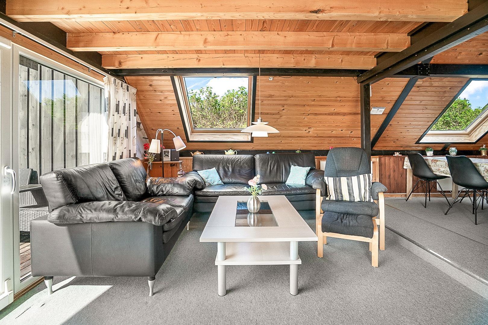 Auf der Hjelmevej liegt ein gemütliches Ferienhaus, ideal gelegen nahe der charmanten Stadt Henne Strand, bekannt für ihre vielen Cafés, gute Einkaufsmöglichkeiten und einen der besten Strände entlang der jütländischen Westküste. Das Ferienhaus liegt hoch und gut hinter üppiger Bepflanzung, was ein Gefühl von Privatsphäre und Ruhe vermittelt. Dieses ältere, aber charmante Ferienhaus ist zweistöckig. Im Erdgeschoss finden Sie sowohl die Küche, das Wohnzimmer, das Badezimmer als auch beide Schlafzimmer. Das Wohnzimmer bietet zwei gemütliche Sitzgruppen und einen Esstisch, perfekt für gemeinsame Mahlzeiten und Entspannung. Vom Wohnzimmer führt eine Schiebetür hinaus auf eine große, geschlossene Terrasse, wo Sie die Sonne und frische Luft in Ruhe genießen können. Im ersten Stock erwartet Sie ein kleines, gemütliches Wohnzimmer mit einem atemberaubenden Blick über das Gebiet und die umliegenden Ferienhäuser. Es ist der perfekte Ort, um sich mit einem guten Buch zu entspannen oder einfach die fantastische Aussicht zu genießen.