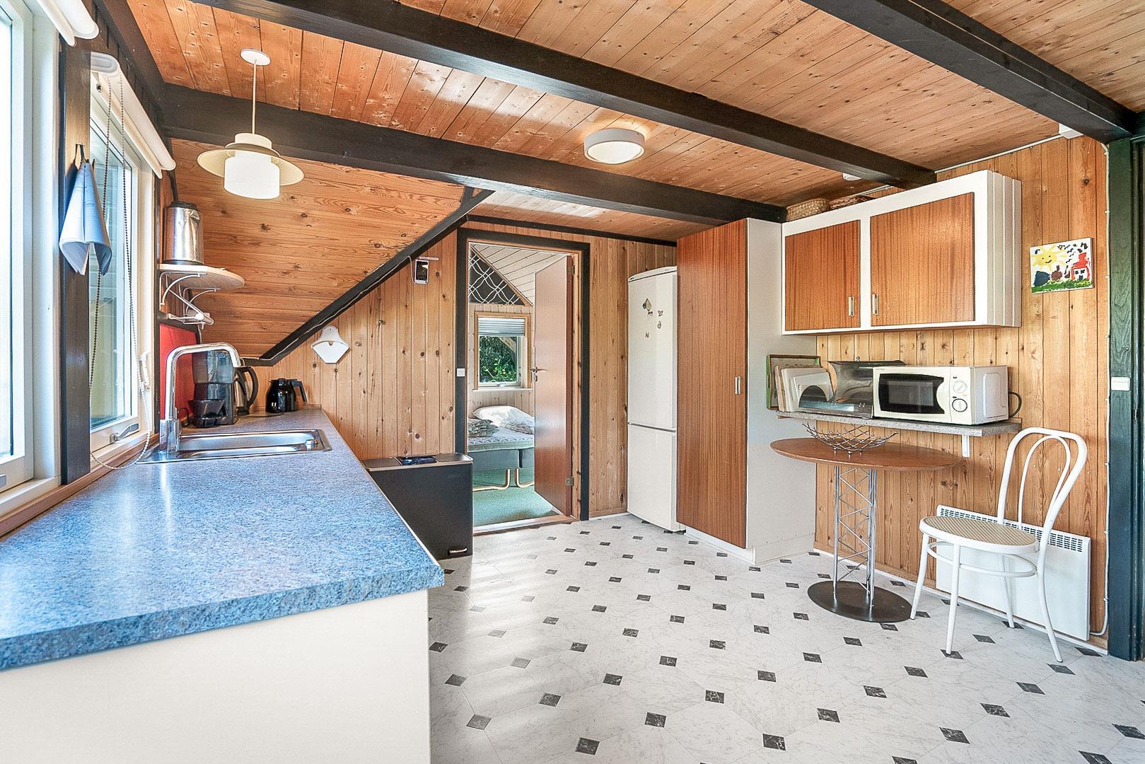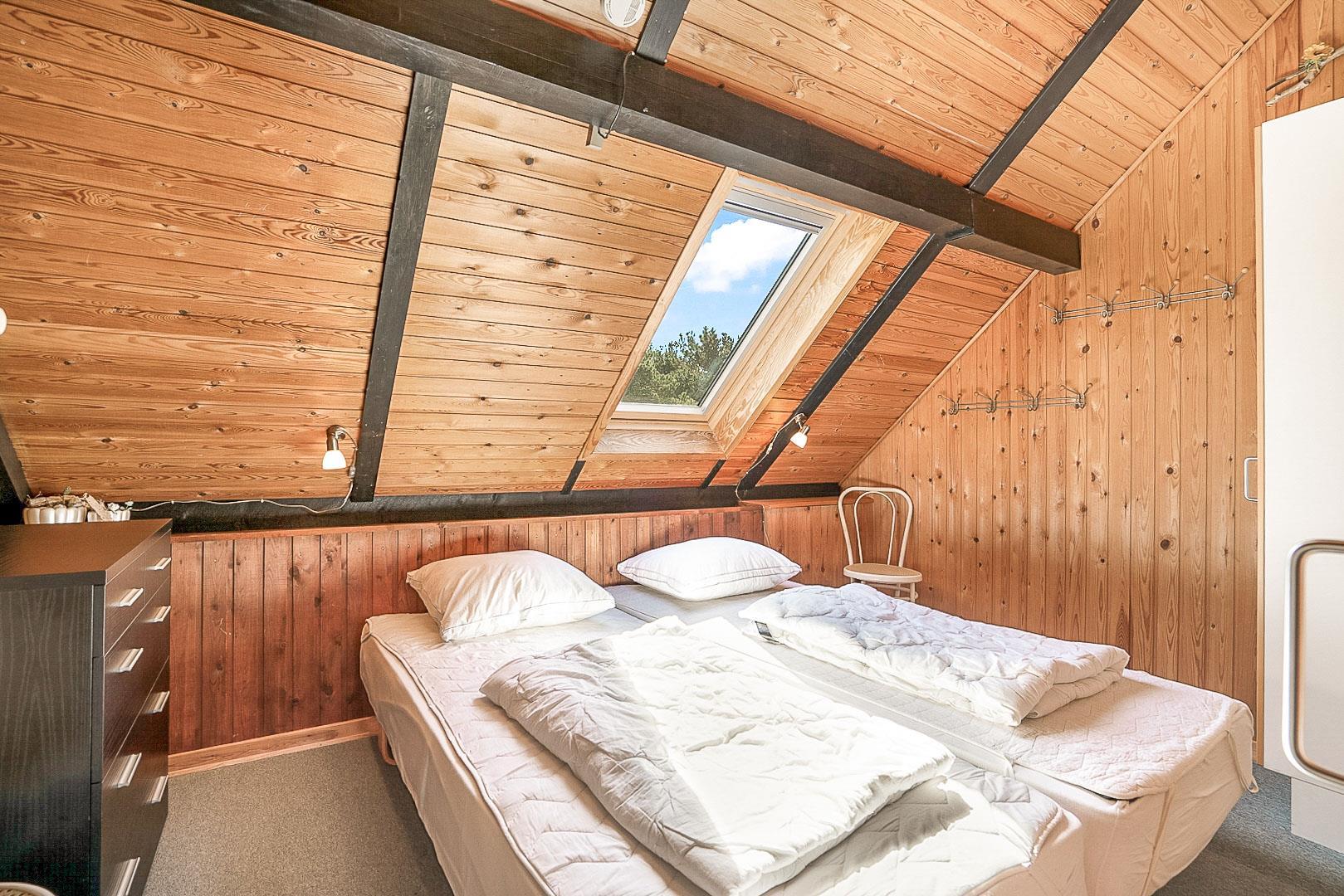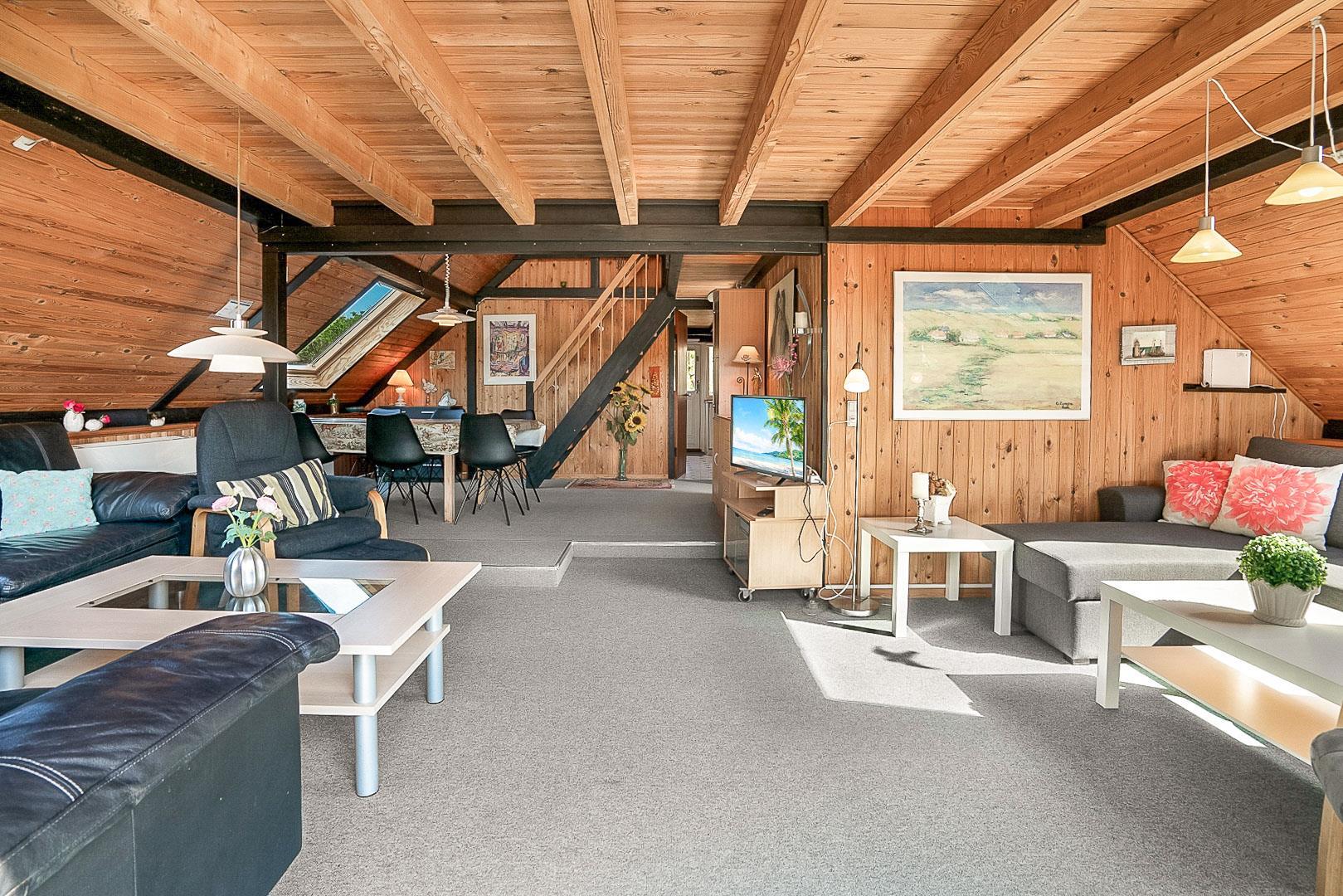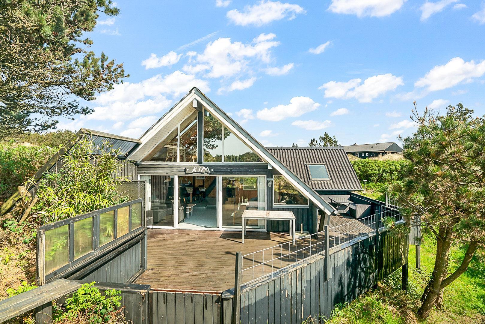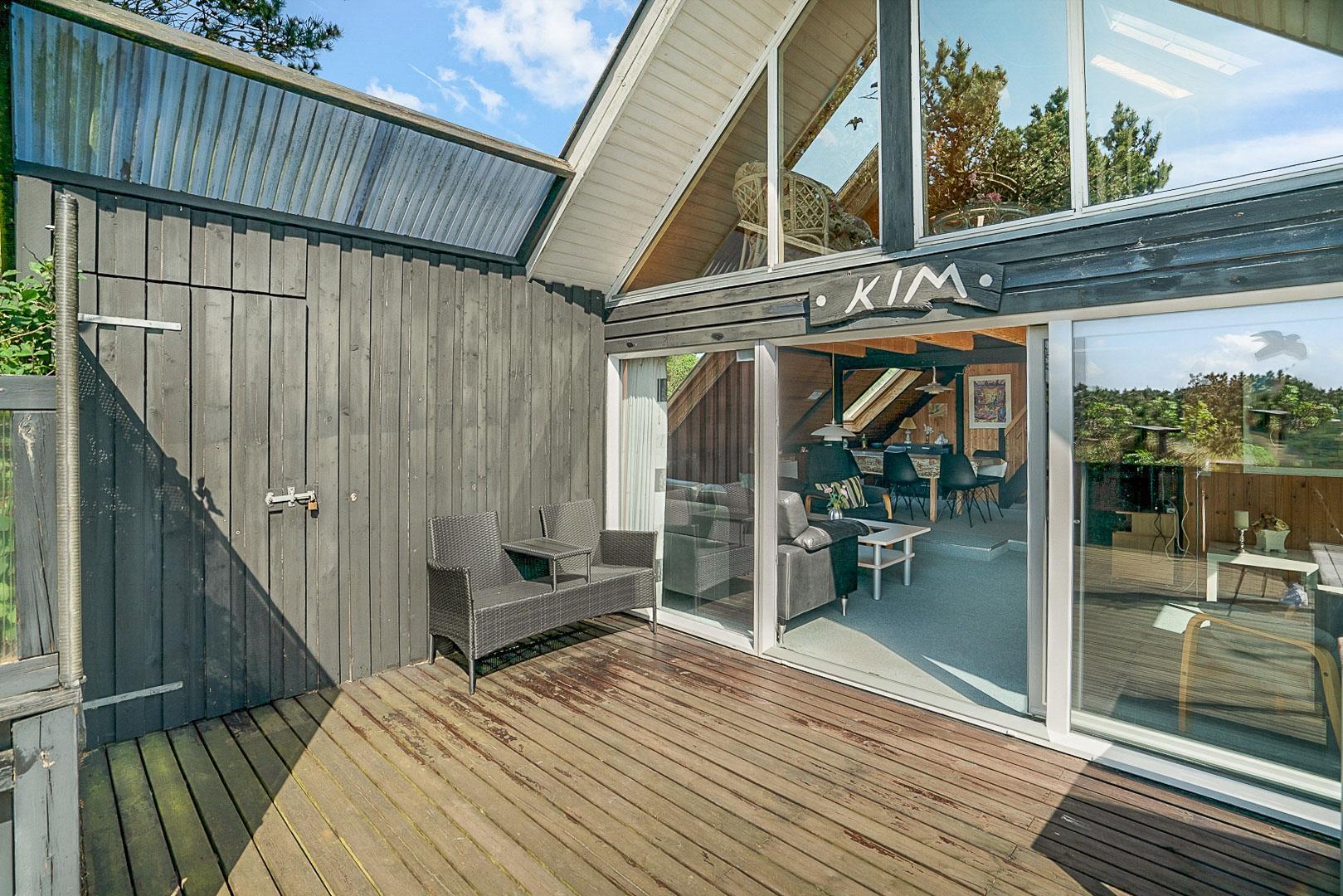 Auf der Hjelmevej liegt ein gemütliches Ferienhaus, ideal gelegen nahe der charmanten Stadt Henne Strand, bekannt für ihre vielen Cafés, gute Einkaufsmöglichkeiten und einen der besten Strände entlang der jütländischen Westküste. Das Ferienhaus liegt hoch und gut hinter üppiger Bepflanzung, was ein Gefühl von Privatsphäre und Ruhe vermittelt. Dieses ältere, aber charmante Ferienhaus ist zweistöckig. Im Erdgeschoss finden Sie sowohl die Küche, das Wohnzimmer, das Badezimmer als auch beide Schlafzimmer. Das Wohnzimmer bietet zwei gemütliche Sitzgruppen und einen Esstisch, perfekt für gemeinsame Mahlzeiten und Entspannung. Vom Wohnzimmer führt eine Schiebetür hinaus auf eine große, geschlossene Terrasse, wo Sie die Sonne und frische Luft in Ruhe genießen können. Im ersten Stock erwartet Sie ein kleines, gemütliches Wohnzimmer mit einem atemberaubenden Blick über das Gebiet und die umliegenden Ferienhäuser. Es ist der perfekte Ort, um sich mit einem guten Buch zu entspannen oder einfach die fantastische Aussicht zu genießen.