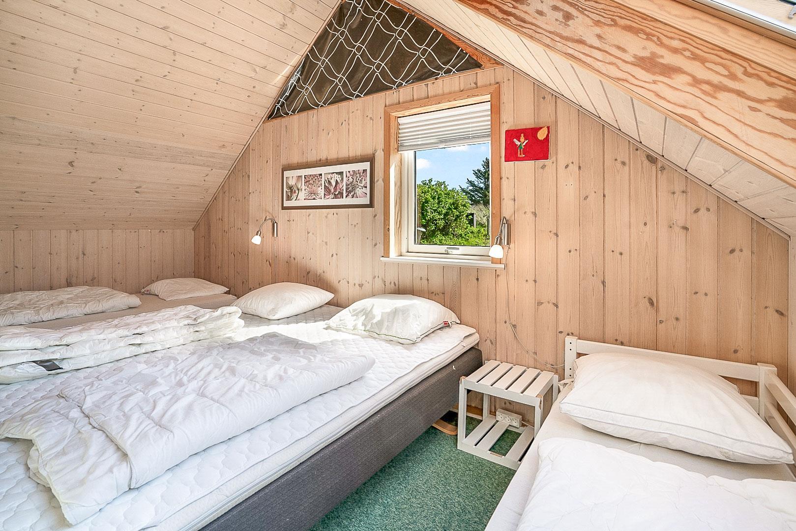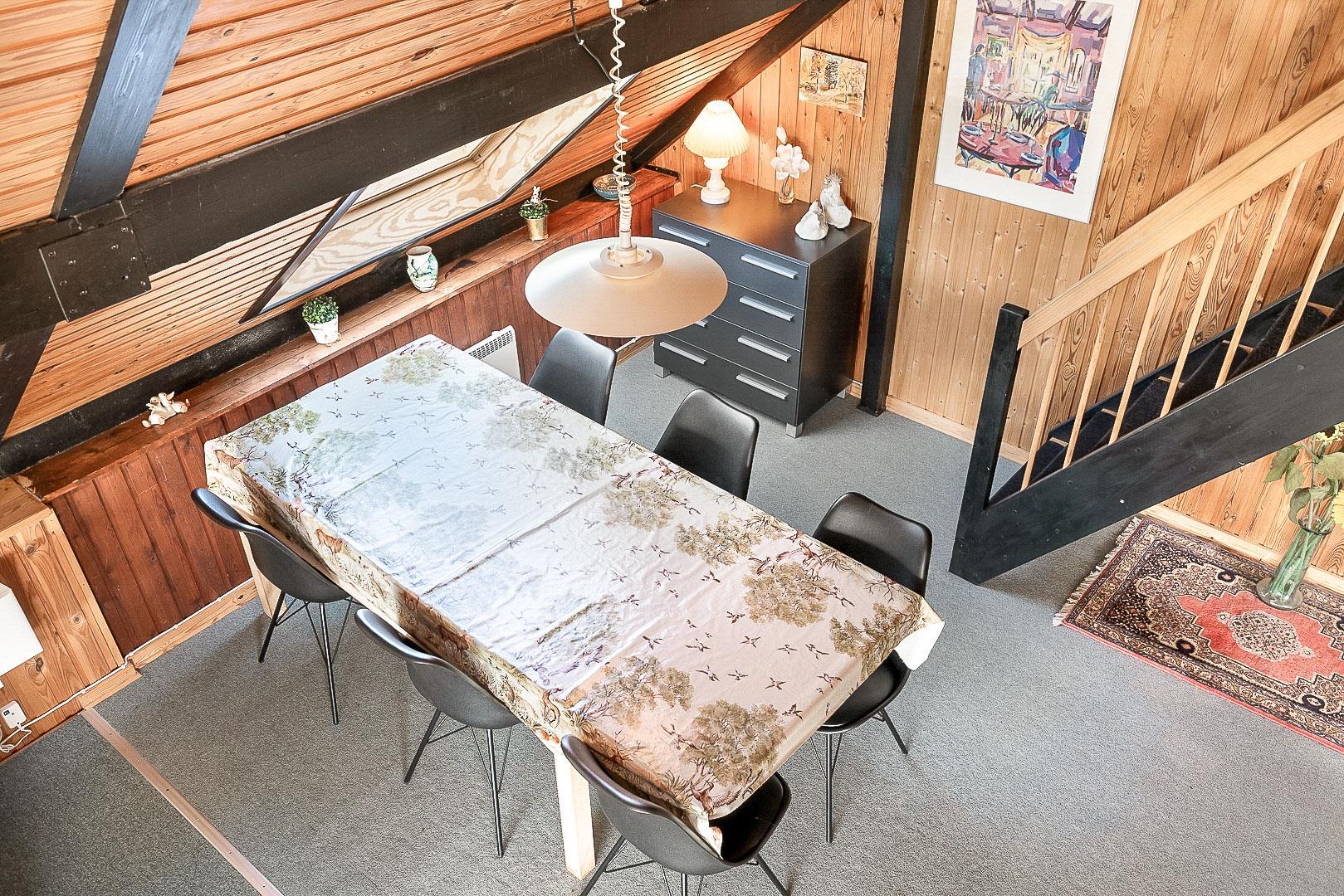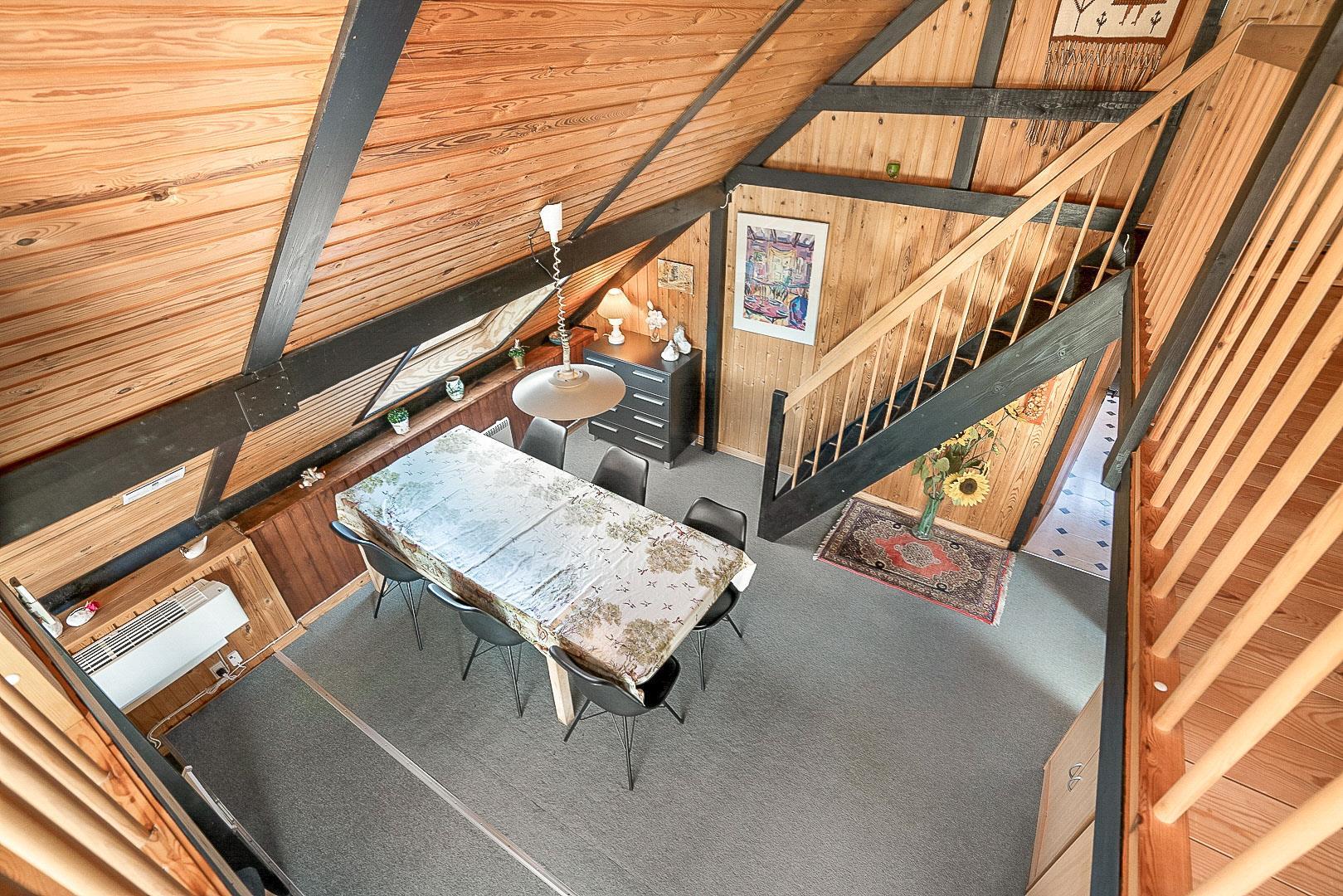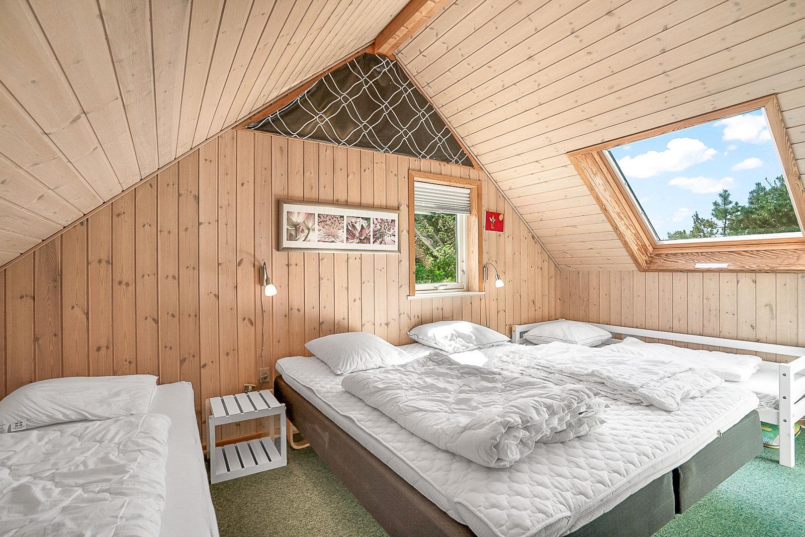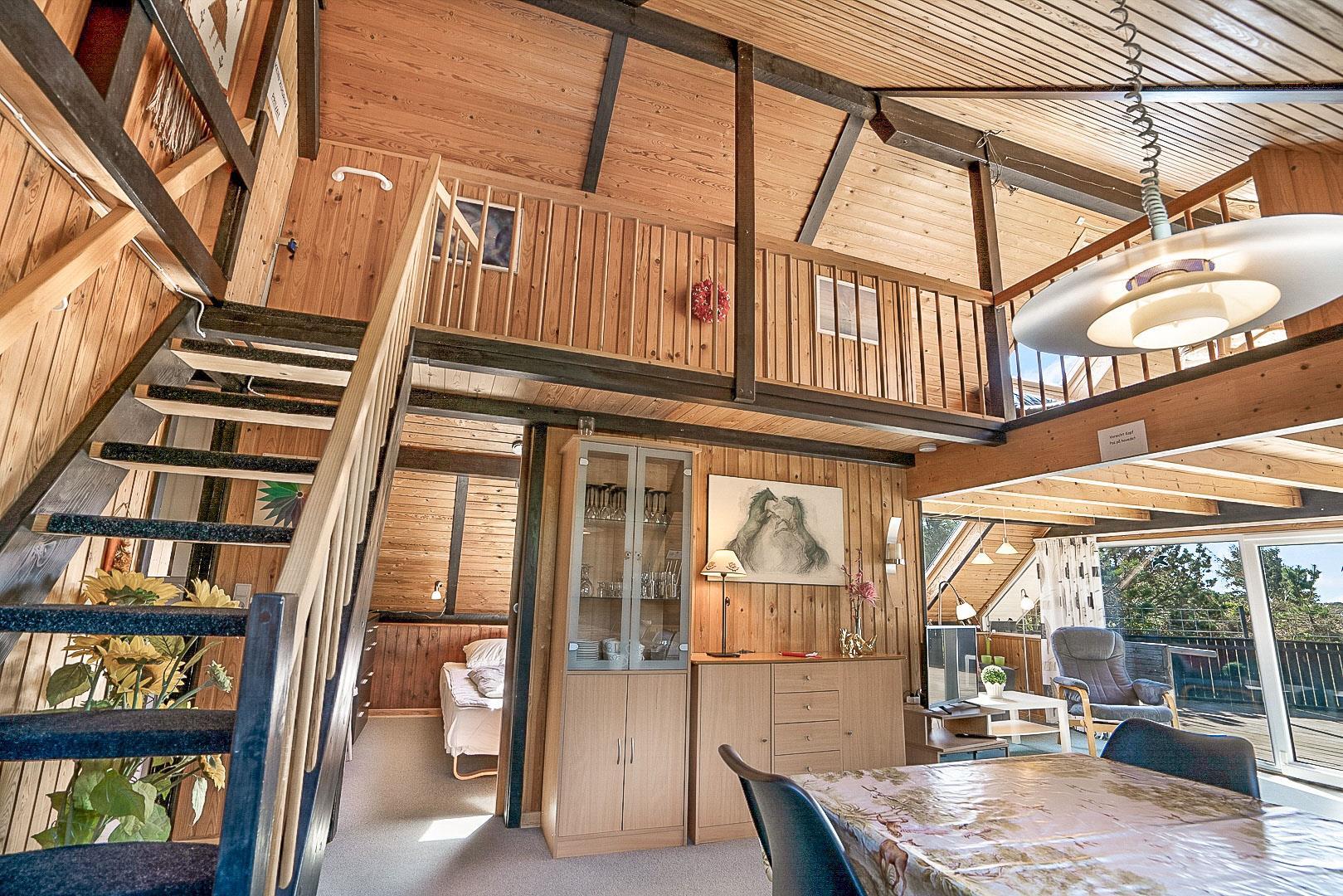 Auf der Hjelmevej liegt ein gemütliches Ferienhaus, ideal gelegen nahe der charmanten Stadt Henne Strand, bekannt für ihre vielen Cafés, gute Einkaufsmöglichkeiten und einen der besten Strände entlang der jütländischen Westküste. Das Ferienhaus liegt hoch und gut hinter üppiger Bepflanzung, was ein Gefühl von Privatsphäre und Ruhe vermittelt. Dieses ältere, aber charmante Ferienhaus ist zweistöckig. Im Erdgeschoss finden Sie sowohl die Küche, das Wohnzimmer, das Badezimmer als auch beide Schlafzimmer. Das Wohnzimmer bietet zwei gemütliche Sitzgruppen und einen Esstisch, perfekt für gemeinsame Mahlzeiten und Entspannung. Vom Wohnzimmer führt eine Schiebetür hinaus auf eine große, geschlossene Terrasse, wo Sie die Sonne und frische Luft in Ruhe genießen können. Im ersten Stock erwartet Sie ein kleines, gemütliches Wohnzimmer mit einem atemberaubenden Blick über das Gebiet und die umliegenden Ferienhäuser. Es ist der perfekte Ort, um sich mit einem guten Buch zu entspannen oder einfach die fantastische Aussicht zu genießen.