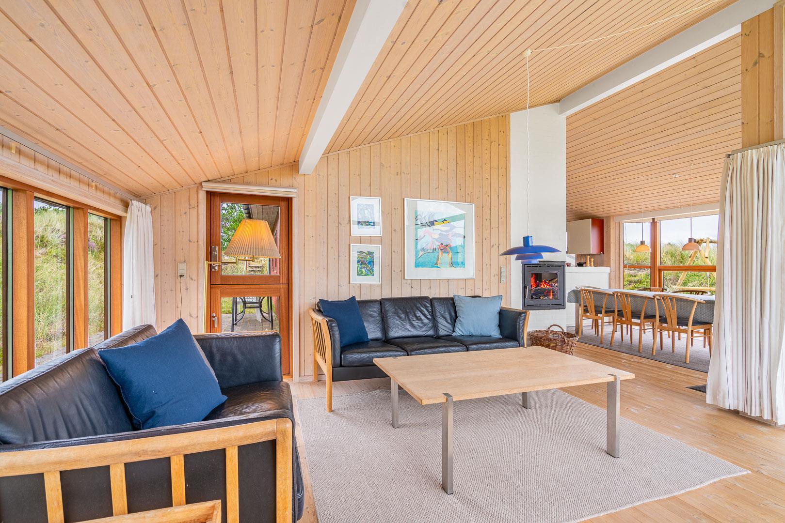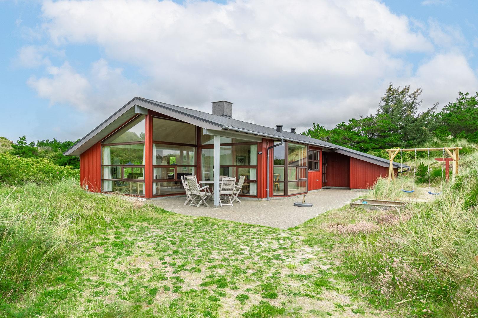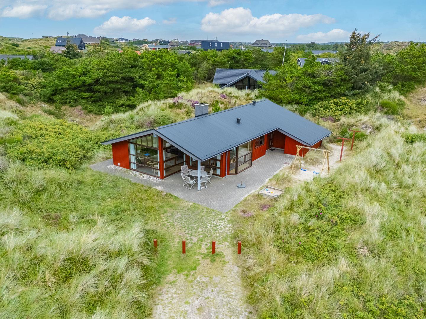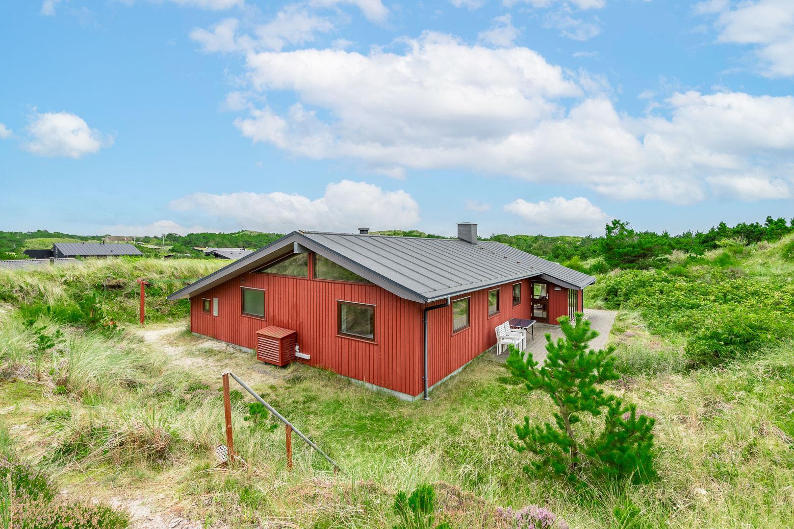 Auf einem ungestörten Grundstück in einer Sackgasse und an der Naturschutzlinie bei einem großen geschützten Dünengebiet, liegt dieses schöne Ferienhaus. Das Haus ist gemütlich und persönlich eingerichtet. Es gibt eine überdachte Terrasse und zwei offene Terrassen alle mit Zugang von der Stube. Von den Terrassen kann man die fantastische Aussicht über die Dünenumgebung genießen. Zentral gelegener Kaminofen und Wärmepumpe halten die Energiekosten gering. Es gibt kostenloses drahtloses Internet im Haus. Nichtraucherhaus.