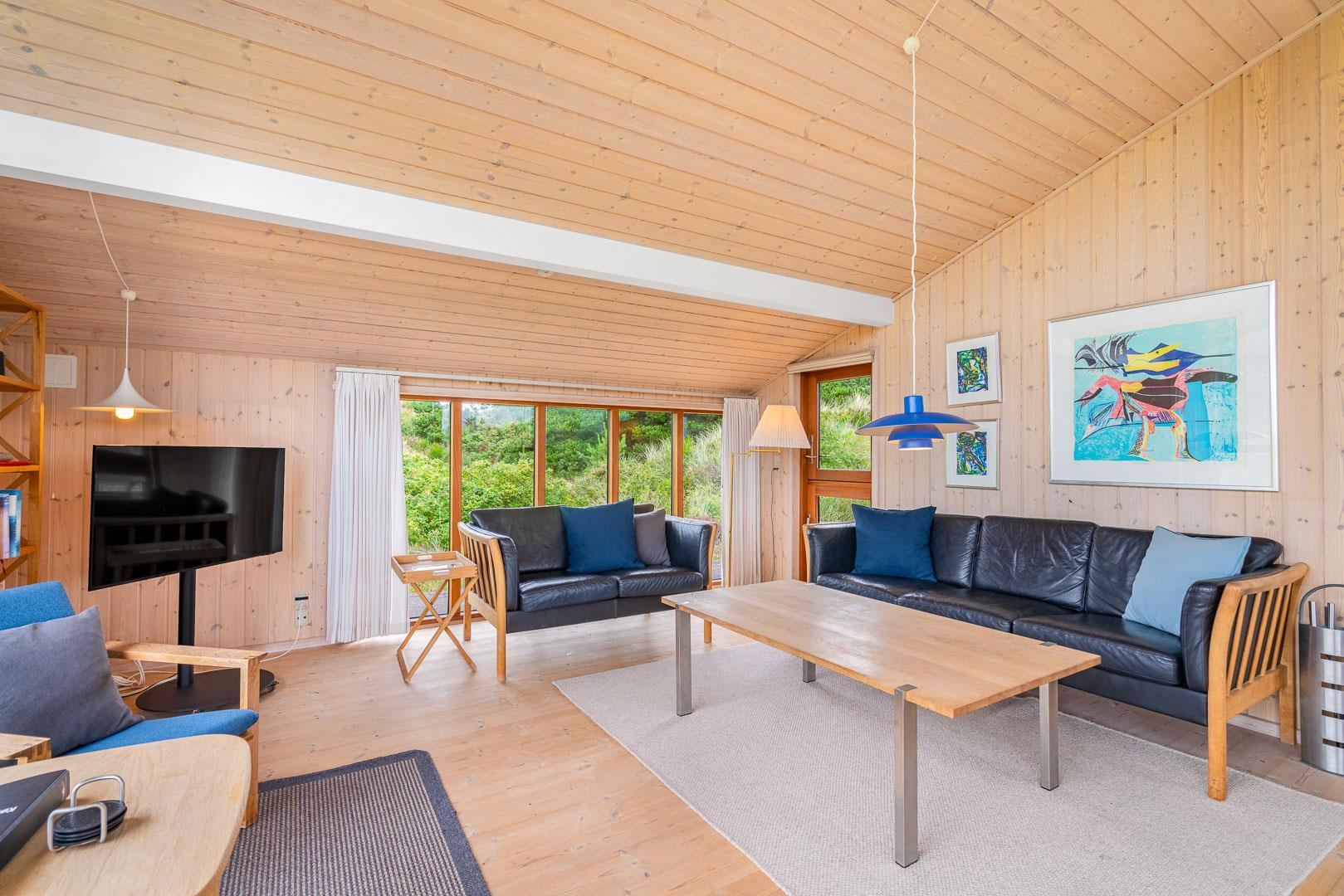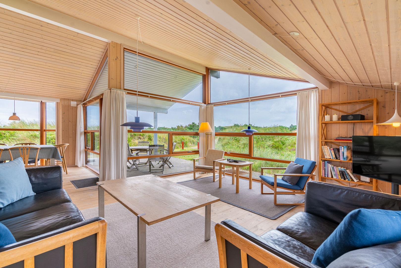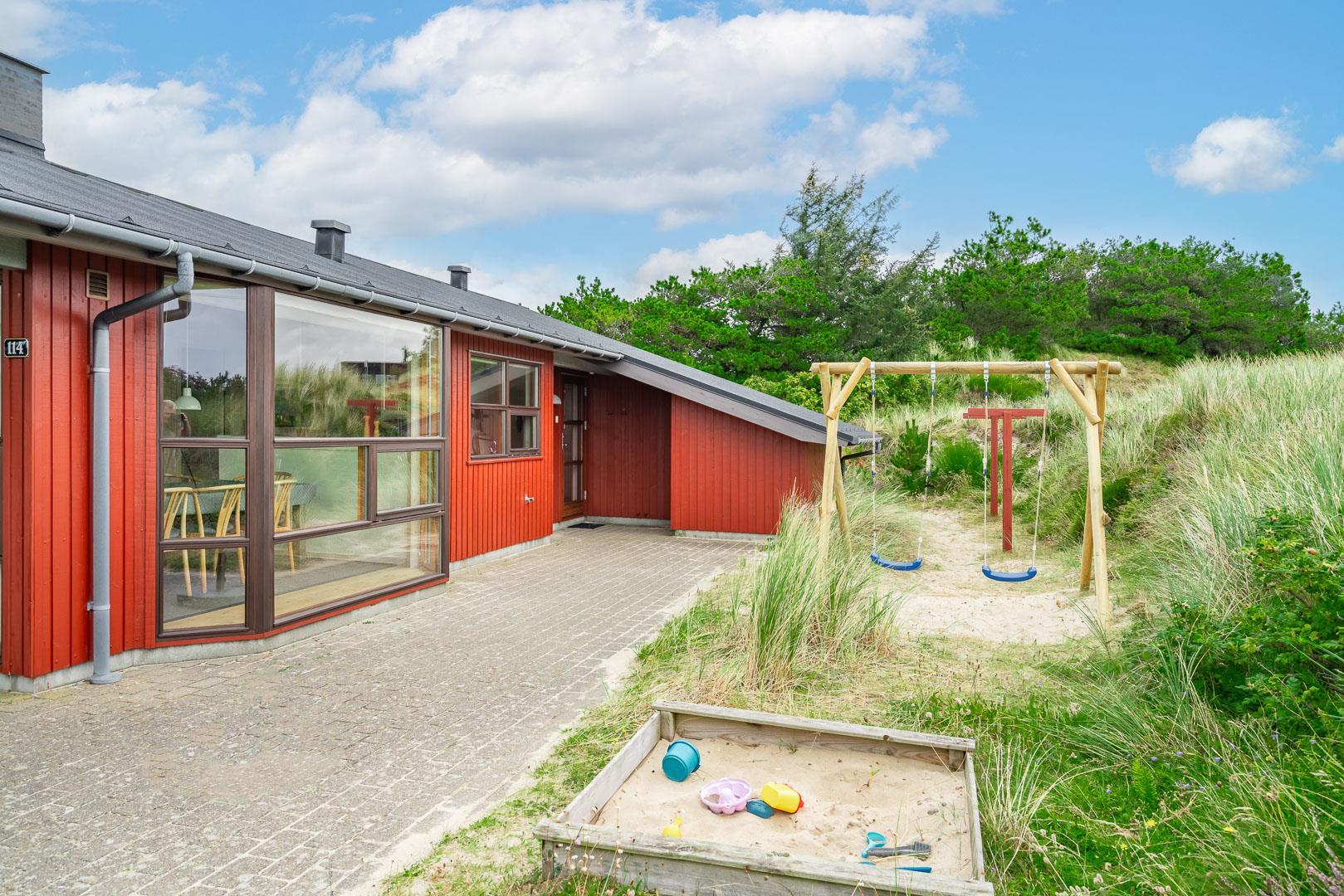 Auf einem ungestörten Grundstück in einer Sackgasse und an der Naturschutzlinie bei einem großen geschützten Dünengebiet, liegt dieses schöne Ferienhaus. Das Haus ist gemütlich und persönlich eingerichtet. Es gibt eine überdachte Terrasse und zwei offene Terrassen alle mit Zugang von der Stube. Von den Terrassen kann man die fantastische Aussicht über die Dünenumgebung genießen. Zentral gelegener Kaminofen und Wärmepumpe halten die Energiekosten gering. Es gibt kostenloses drahtloses Internet im Haus. Nichtraucherhaus.