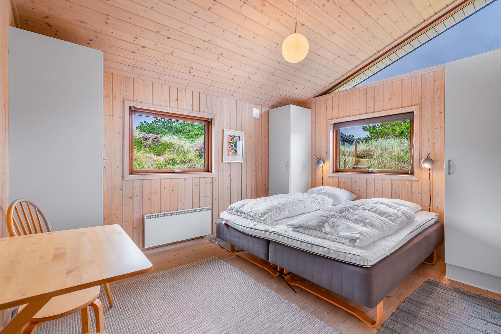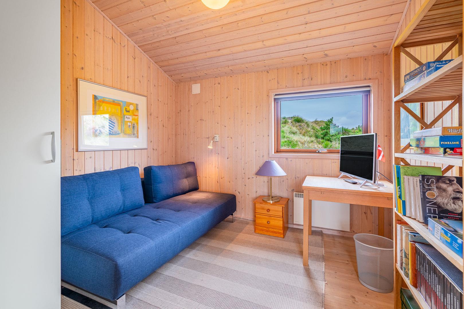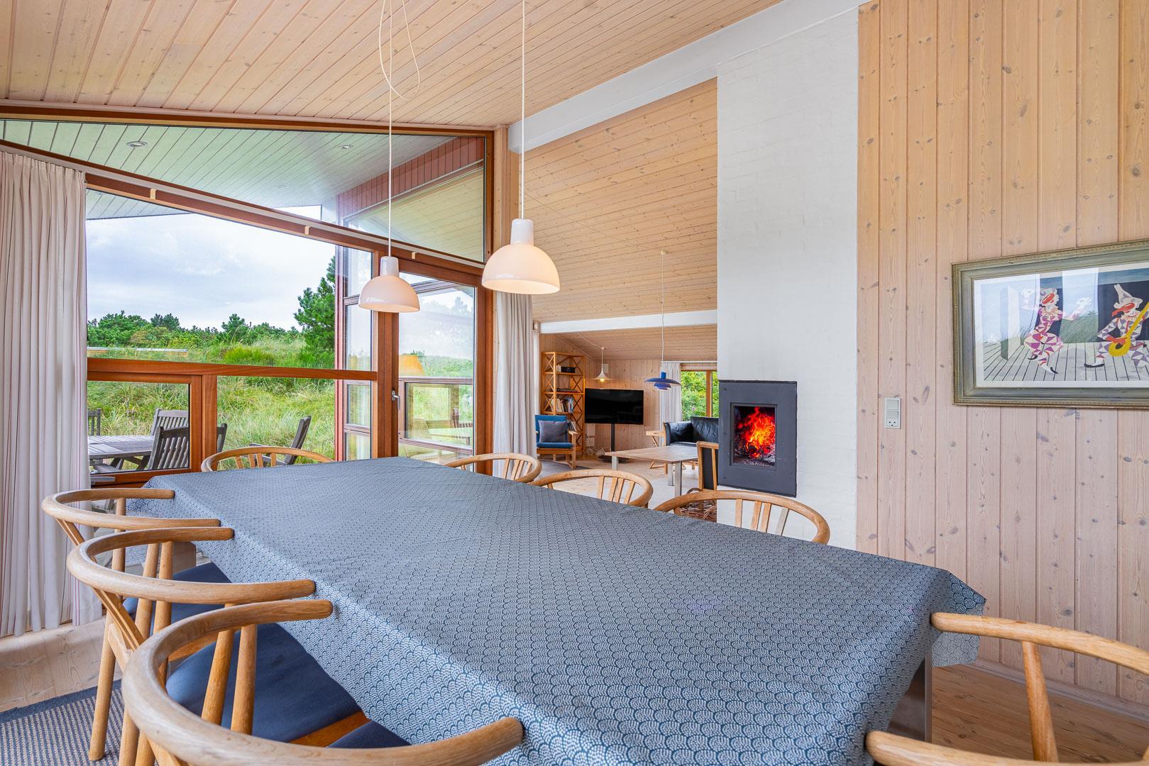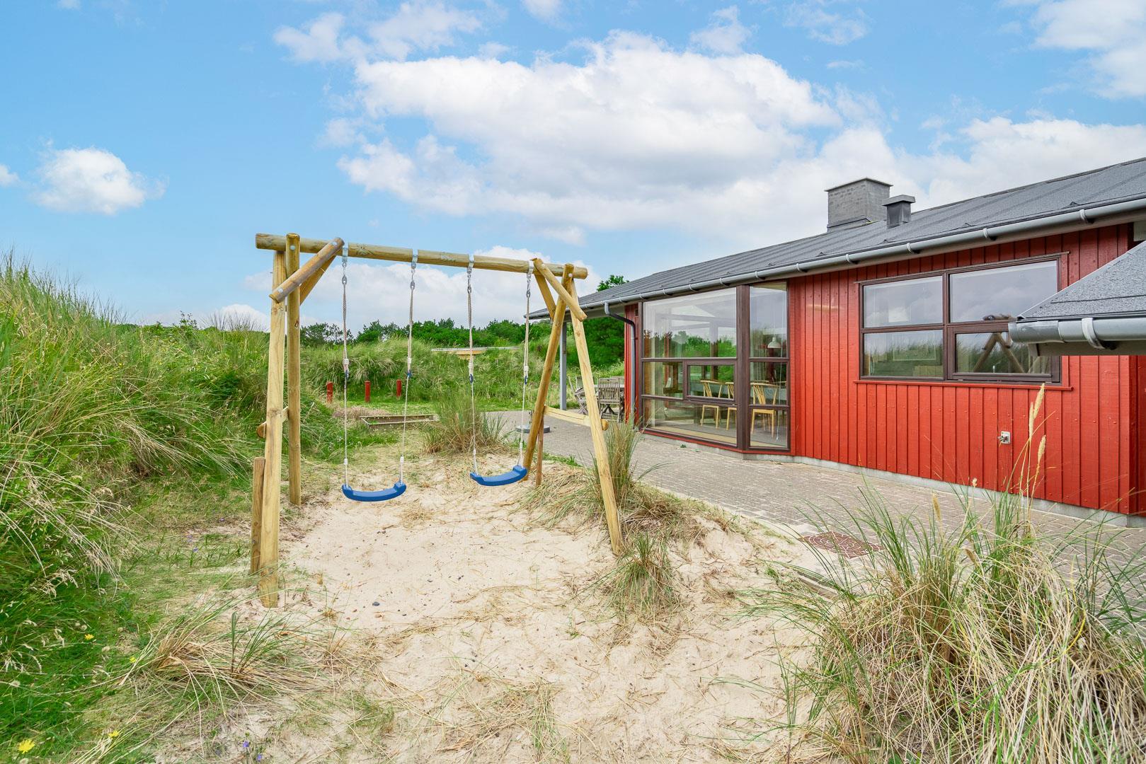 Auf einem ungestörten Grundstück in einer Sackgasse und an der Naturschutzlinie bei einem großen geschützten Dünengebiet, liegt dieses schöne Ferienhaus. Das Haus ist gemütlich und persönlich eingerichtet. Es gibt eine überdachte Terrasse und zwei offene Terrassen alle mit Zugang von der Stube. Von den Terrassen kann man die fantastische Aussicht über die Dünenumgebung genießen. Zentral gelegener Kaminofen und Wärmepumpe halten die Energiekosten gering. Es gibt kostenloses drahtloses Internet im Haus. Nichtraucherhaus.