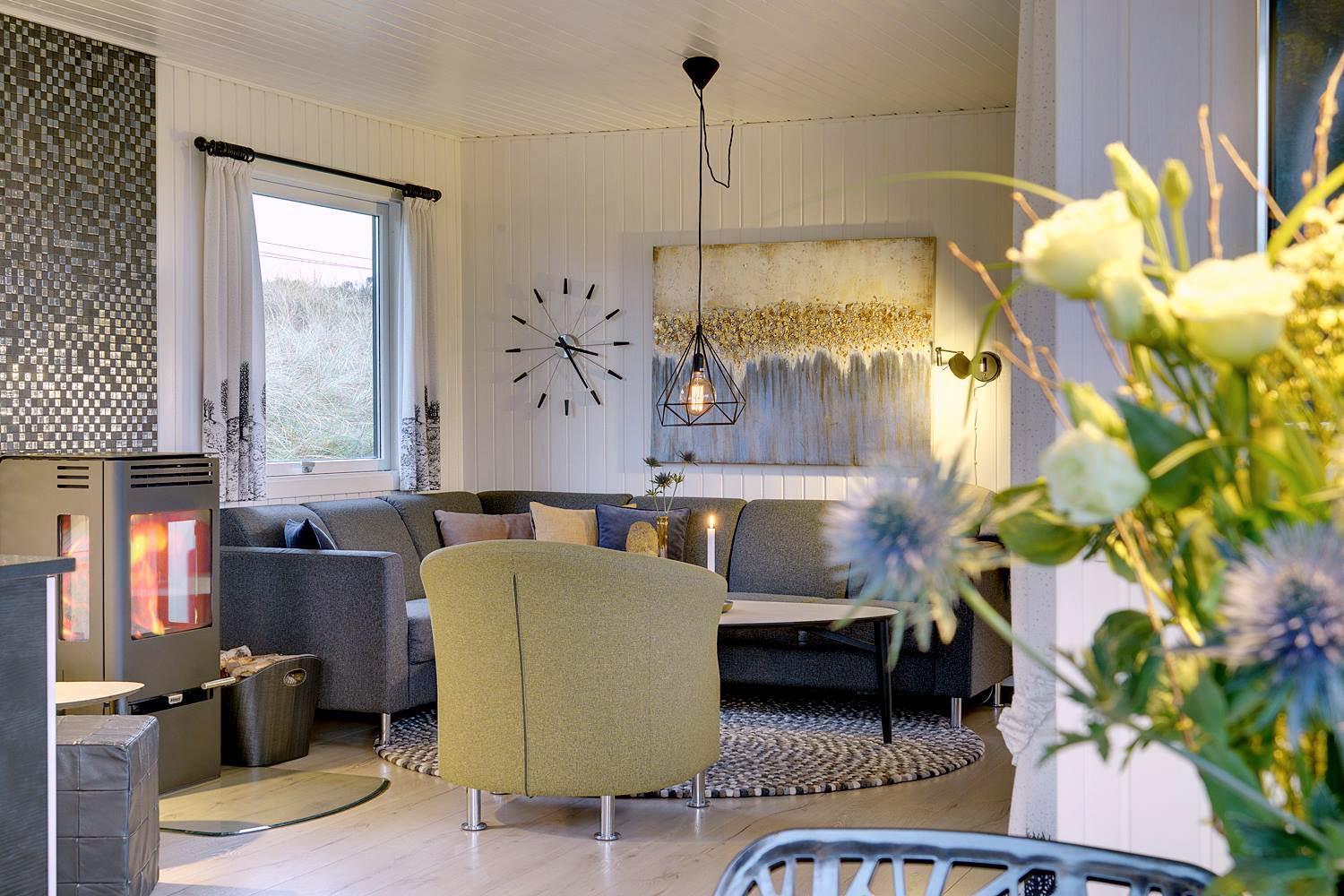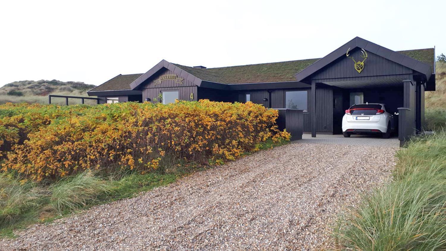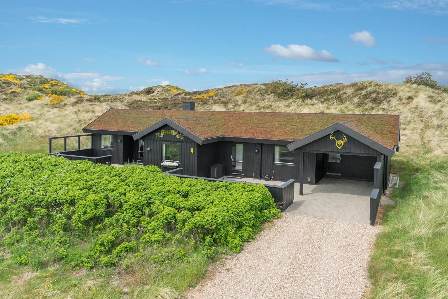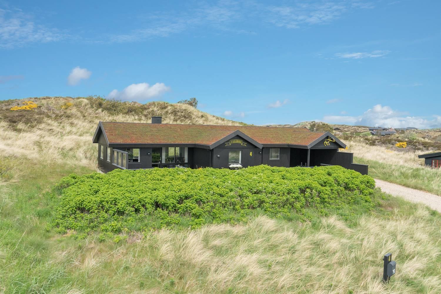 Persönlich eingerichtetes Ferienhaus gelegen auf einem prachtvollen hügeligen Grundstück. Das Haus liegt an einem Hang und es gibt eine fantastische Aussicht über die Dünen von der schönen Süd gerichteten Terrasse mit tollem Windschutz. Carport mit dazugehörigem Schuppen mit Platz für Fahrräder, Kinderwagen u.v.m.
