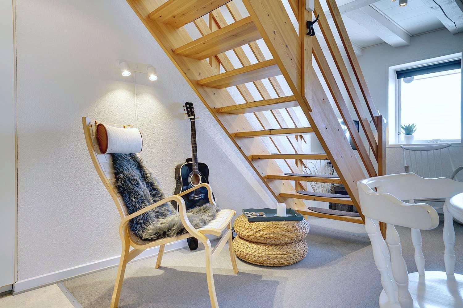 Im Obergeschoss befinden sich sowohl das Schlafzimmer als auch das Kinderzimmer, die offen miteinander verbunden sind – ideal für Familien mit kleineren Kindern. Ebenfalls auf dieser Etage befindet sich das Badezimmer sowie ein zusätzliches TV-Gerät, sodass die ganze Familie Ruhe und Unterhaltung finden kann.