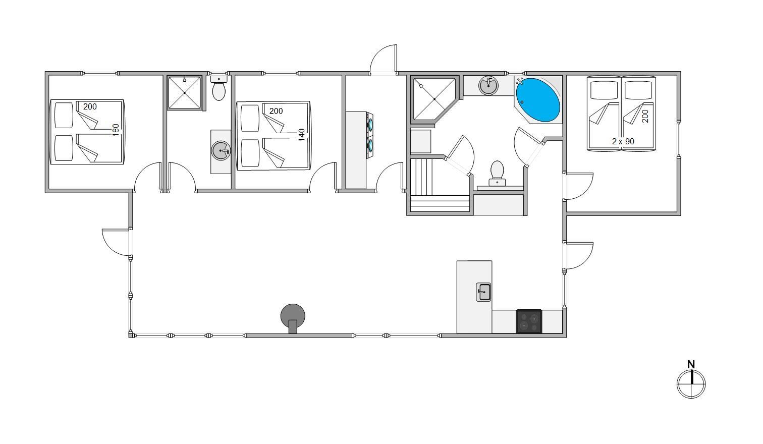 This holiday home at Blåbærvej 3D in Henne Strand accommodates up to 6 people. The sleeping arrangements are spread across three comfortable and spacious bedrooms, each offering a private retreat.
