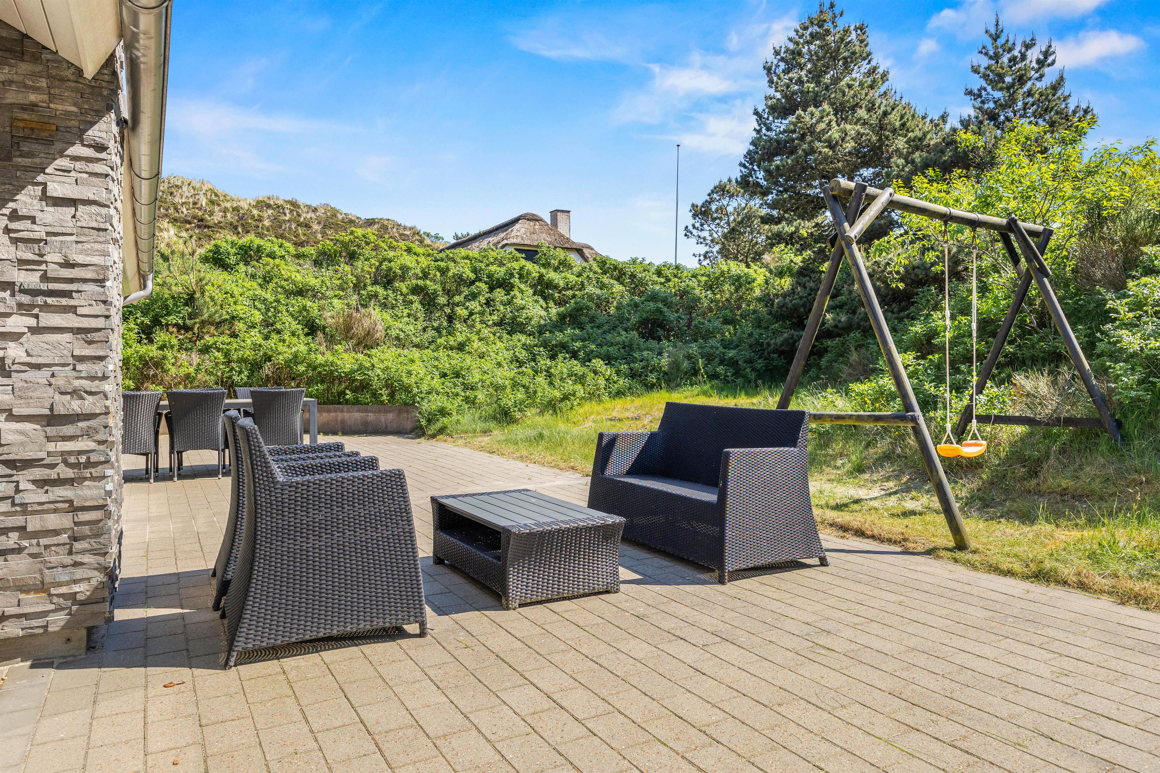 The natural grounds surrounding this beautiful holiday home at Blåbærvej 3D in Henne Strand offer plenty of space and opportunities for outdoor relaxation. The large, partially covered terrace features garden furniture and a barbecue, perfect for sociable evening meals outdoors. Children can enjoy themselves on the swing while you unwind on the terrace.