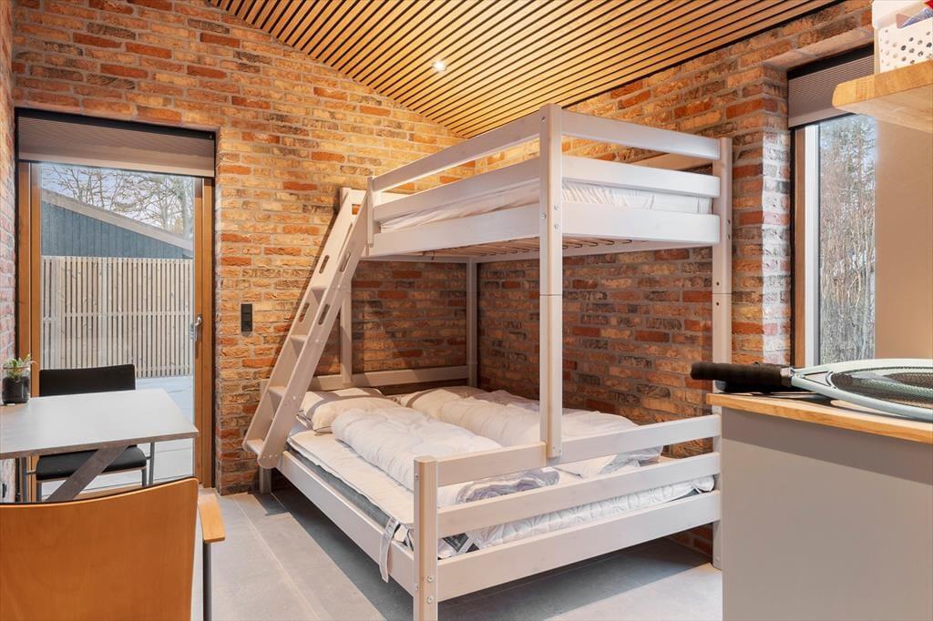 Inden døre mødes I af den der særlige fornemmelse, hvor alt er lyst, indbydende og gennemtænkt – og hvor feriestemningen hurtigt sænker sig. Her er der god plads til, at flere generationer eller en stor venneflok kan være sammen uden at være oven i hinanden, og samtidig er der rig mulighed for at finde små, rolige hjørner til en stille stund med en kop kaffe. Som prikken over i’et er der lagt op til ren forkælelse i gæstehuset, hvor både sauna og spa indbyder til wellness efter en dag ved vandet. Det er den slags komfort, der gør, at feriedagene føles ekstra lange på den gode måde – og at aftenerne bliver til afslappede timer, hvor man helt glemmer kalenderen derhjemme. Feriedagene kan byde på masser af sjov og samvær inden døre, idet huset råder over et skønt aktivitetsrum med et multibord, der nemt kan skifte mellem pool/billard, airhockey og bordtennis. Her er der lagt op til hyggelige turneringer og grin på tværs af alder, mens værelserne samtidig giver god plads til leg, afslapning og små pauser i eget tempo.