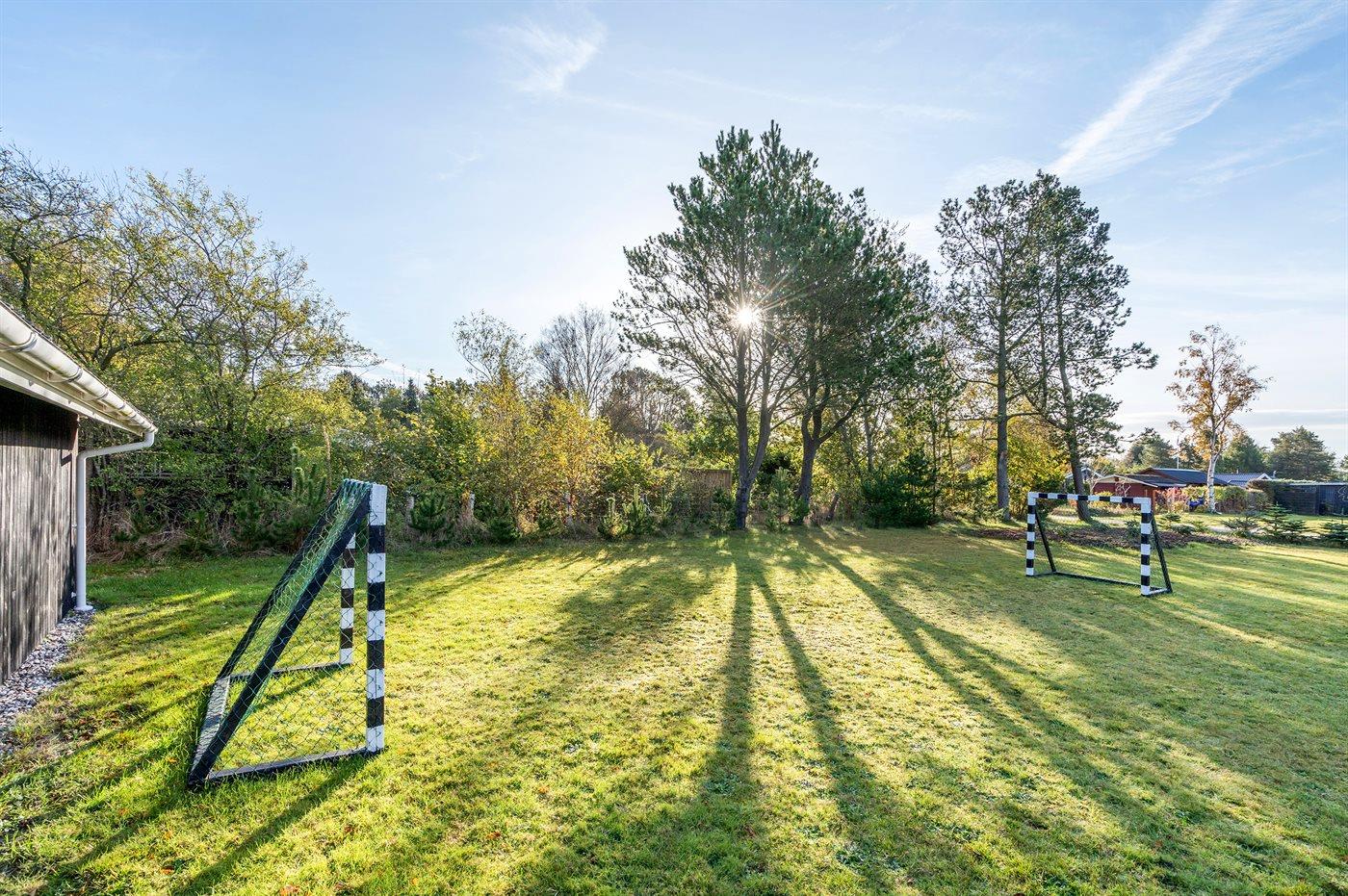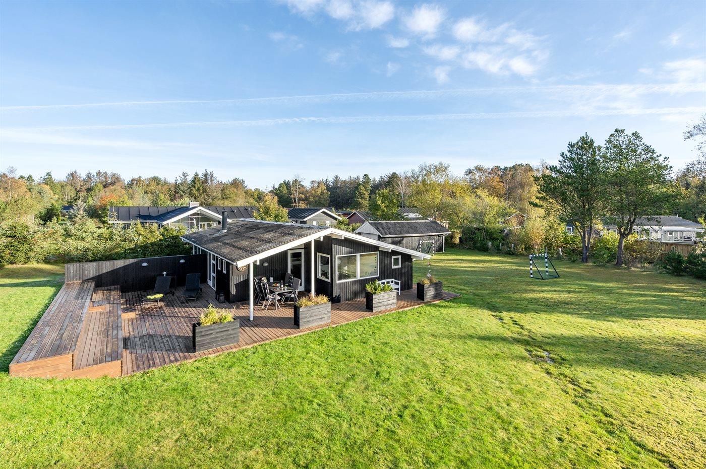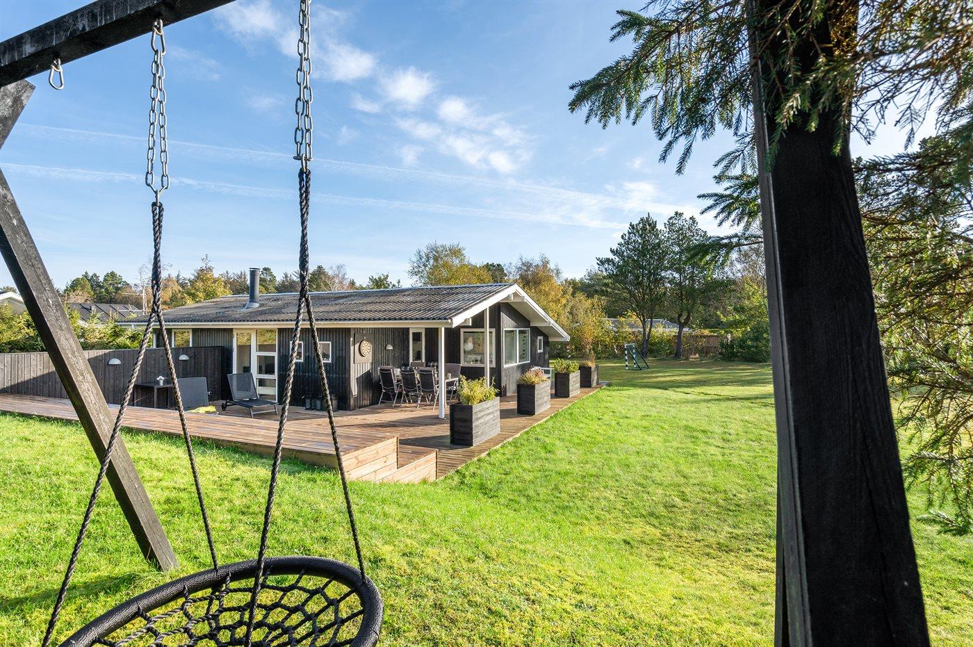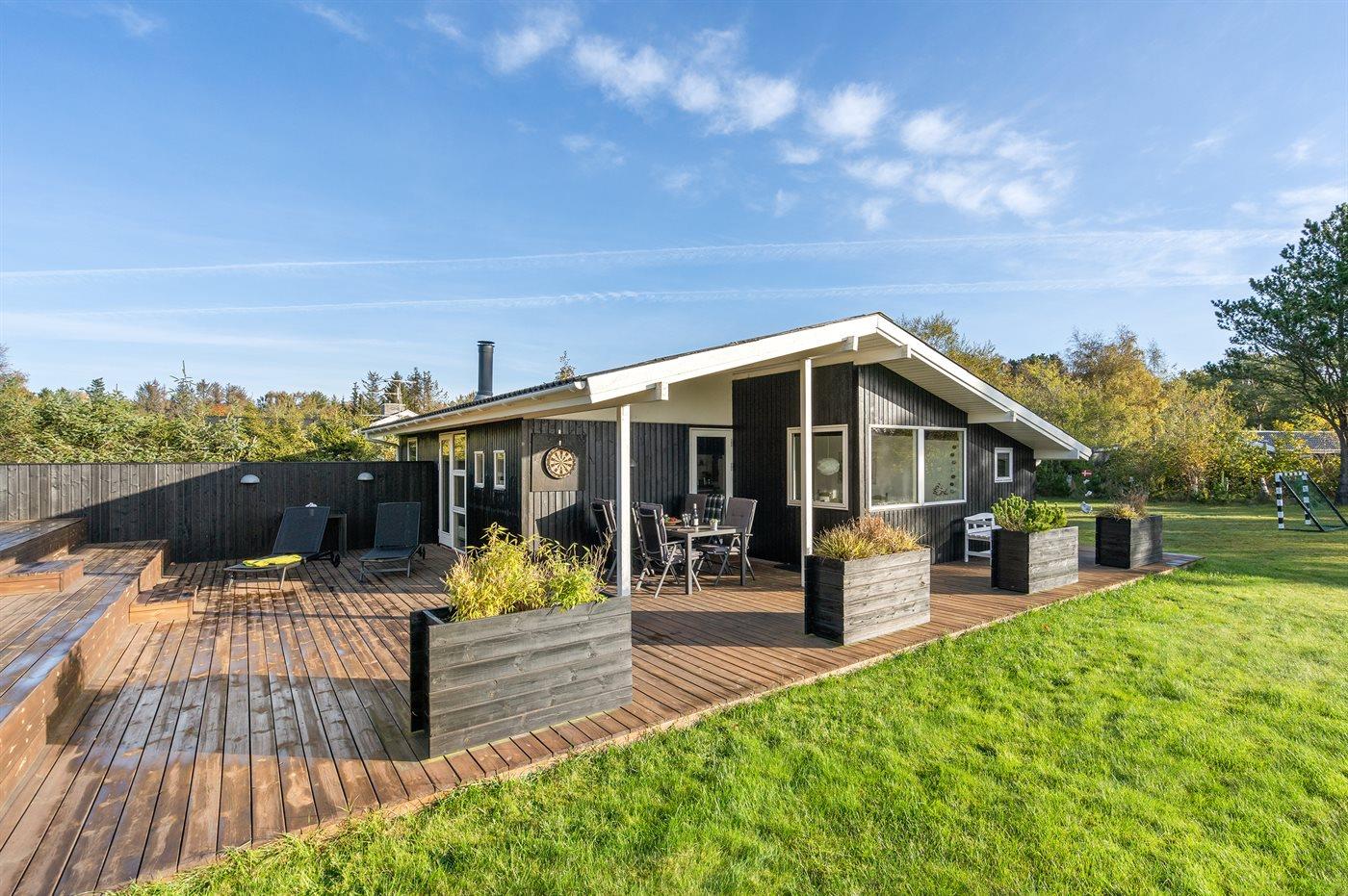 The holiday home is situated on a 1600 m² garden site. Situated 600 m from the sea. Nearest shop is 600 m away. A 85 m² terrace belong to the holiday home. Furthermore the house has a 15 m² covered terrace. Swing. Football goal.Fire place. Barbecue at your disposal. Parking place by the holiday home.
