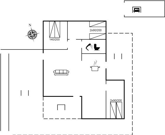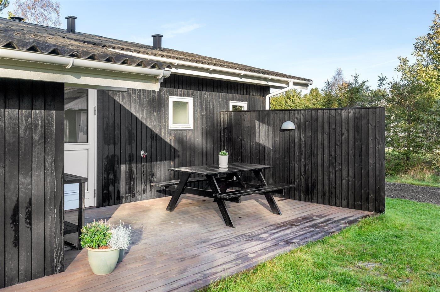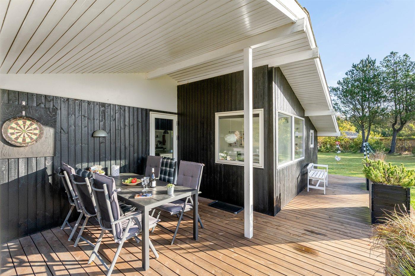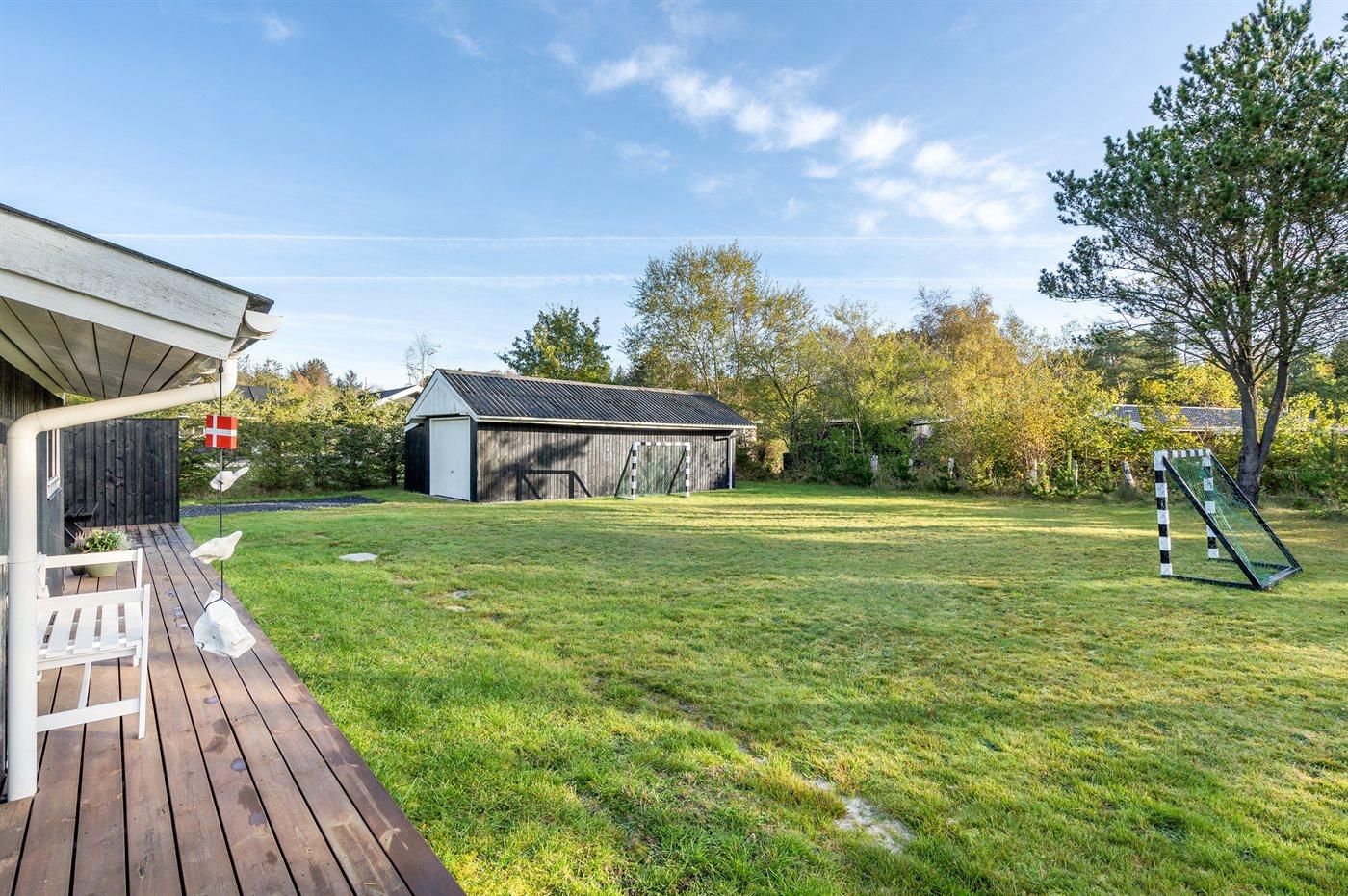 The holiday home is situated on a 1600 m² garden site. Situated 600 m from the sea. Nearest shop is 600 m away. A 85 m² terrace belong to the holiday home. Furthermore the house has a 15 m² covered terrace. Swing. Football goal.Fire place. Barbecue at your disposal. Parking place by the holiday home.