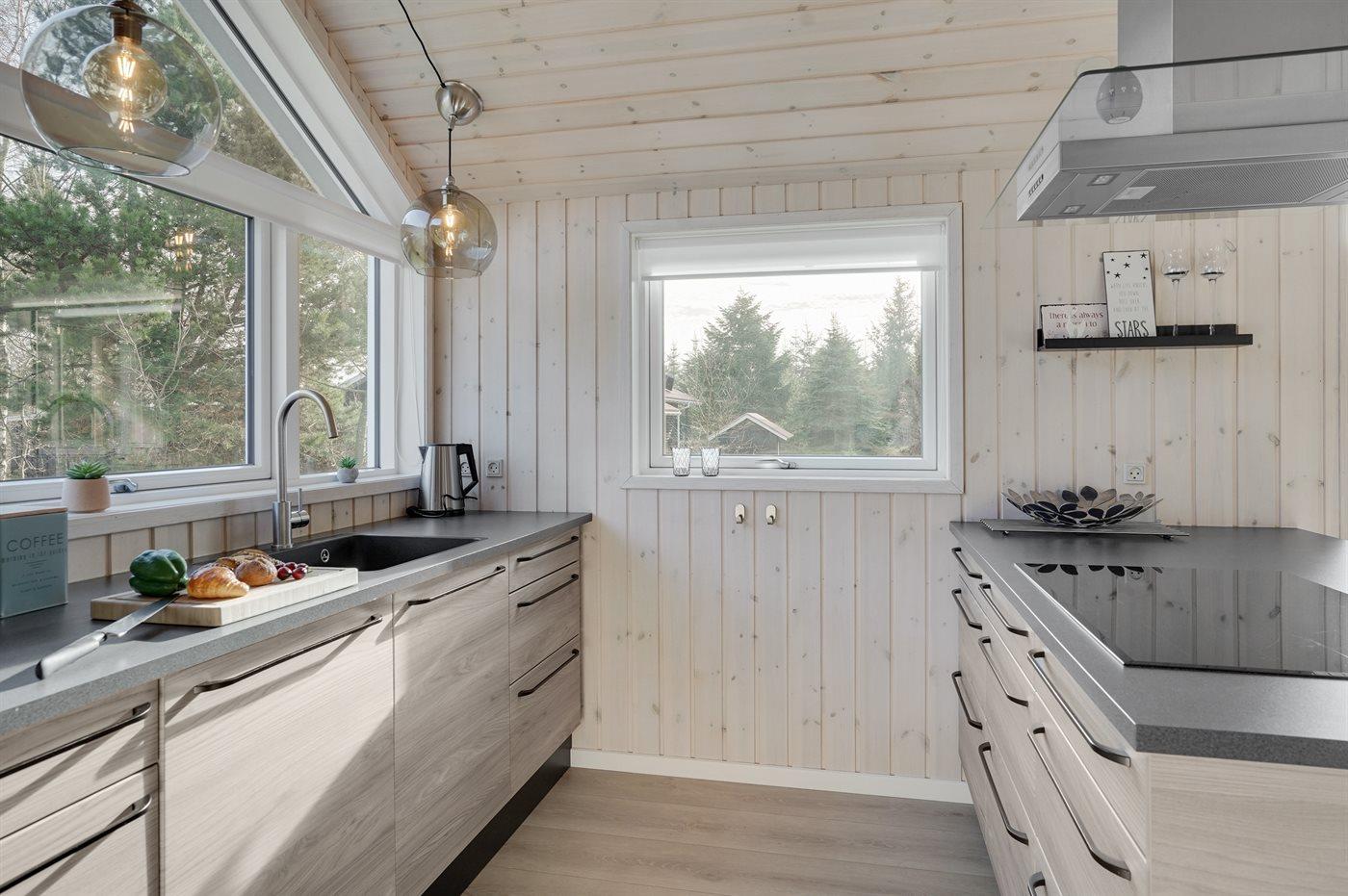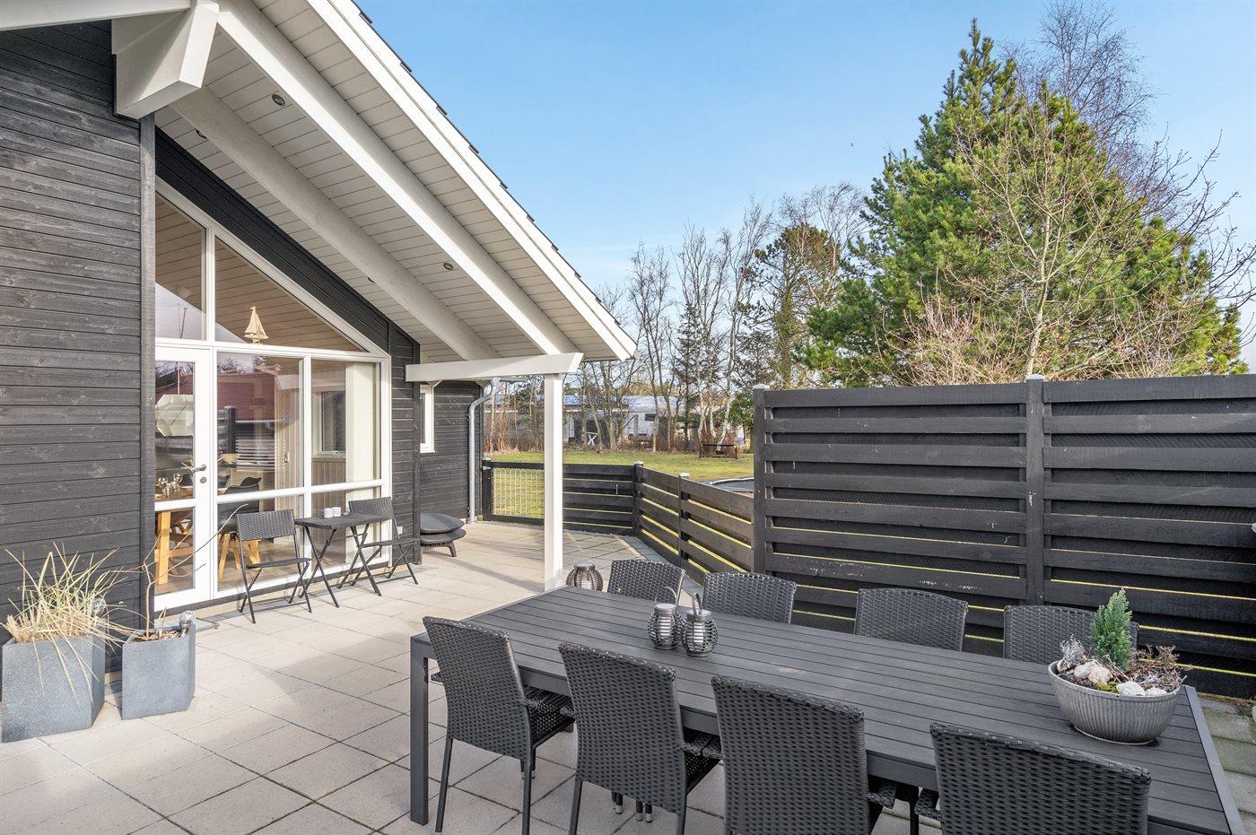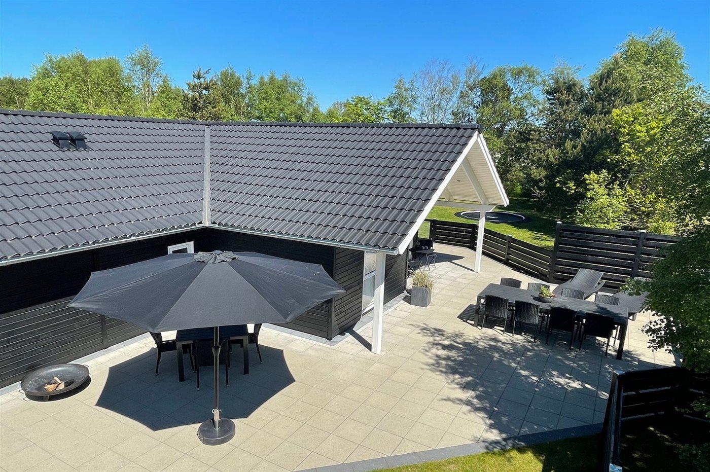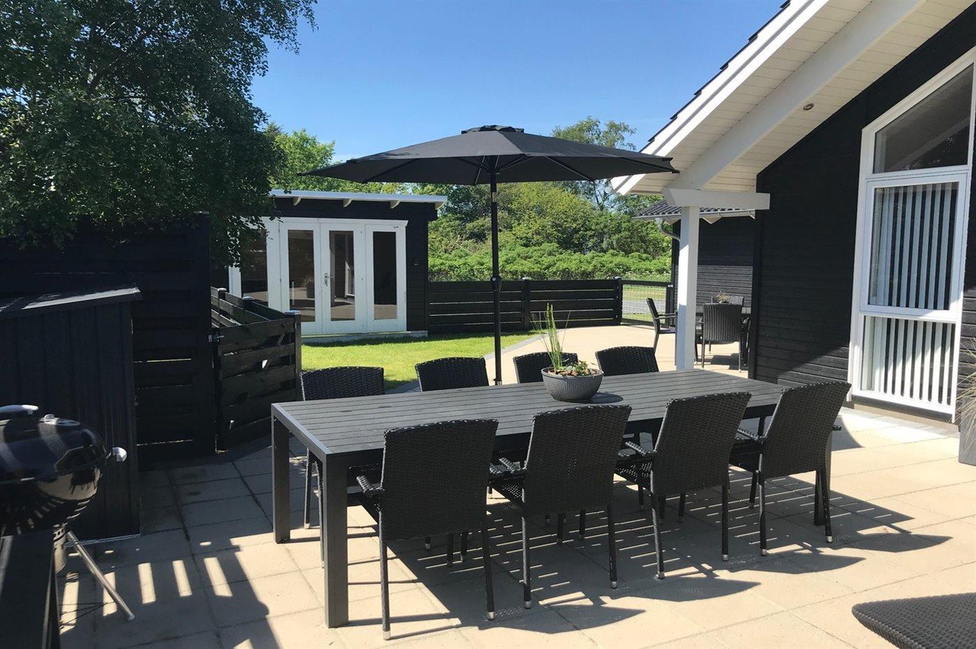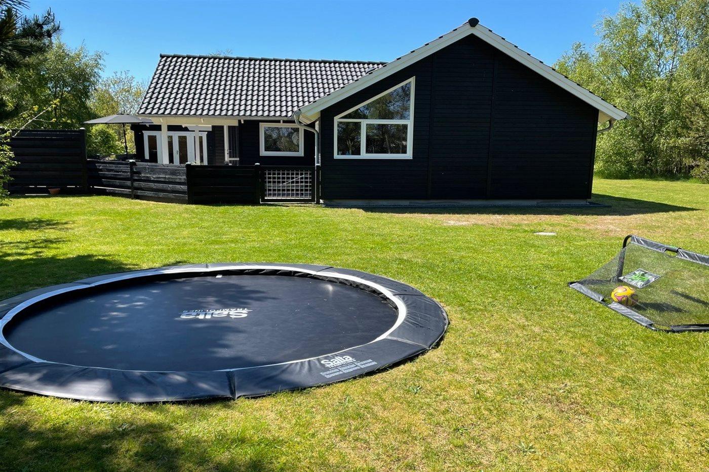 The holiday home is situated on a 1008 m² garden site. Situated 400 m from the sea. Situated 6000 m from inlet. Situated 500 m from lake. Nearest shop is 3000 m away. You will find a golf course in a distance of 6000 m. A 78 m² terrace belong to the holiday home. Furthermore the house has a 9 m² covered terrace. Hereof a total of 87 m² enclosed terrace. Trampoline. Petanque. Football goal. Barbecue at your disposal. Parking place by the holiday home.
