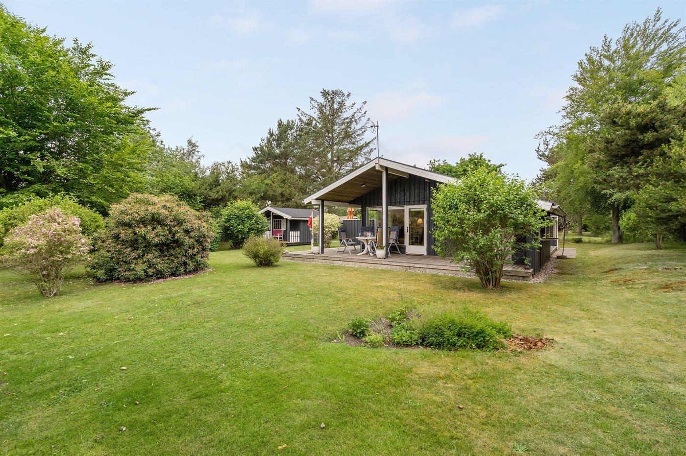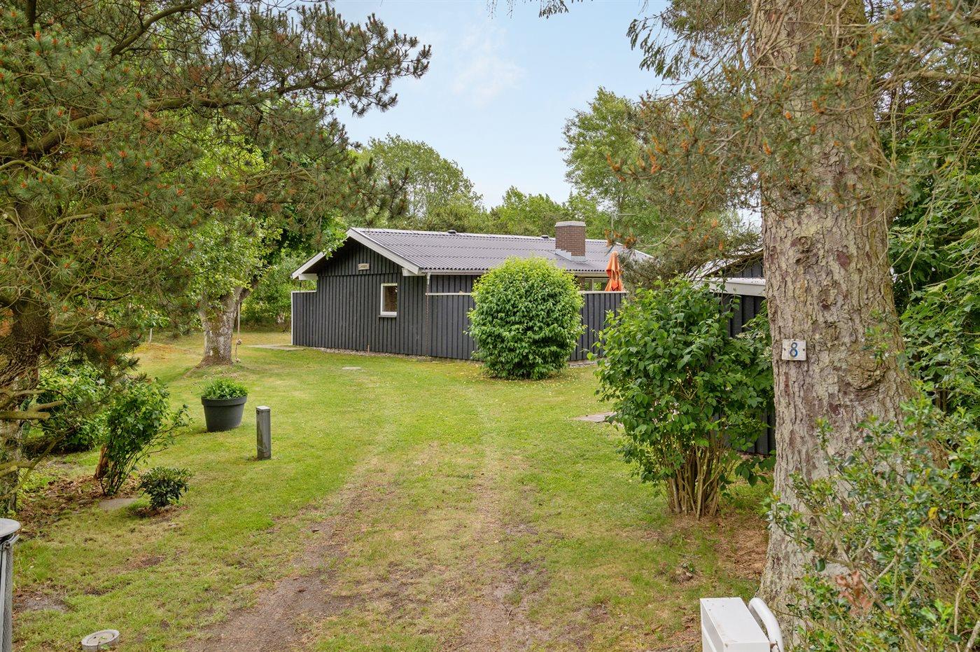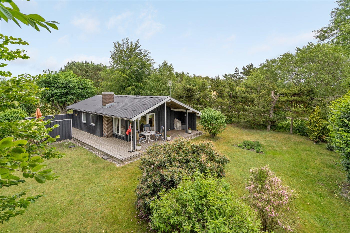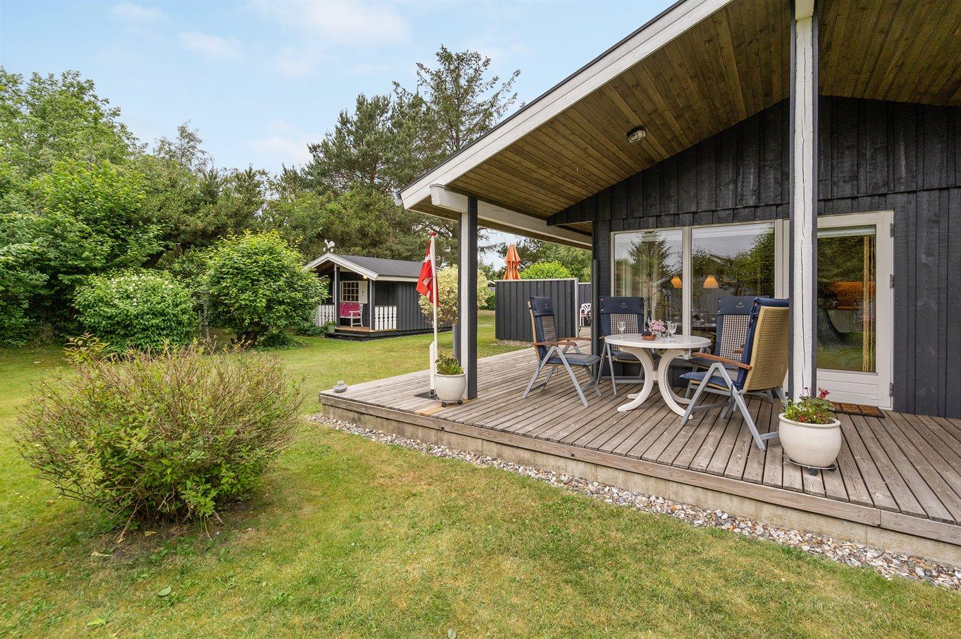 The holiday home is situated on a 1050 m² garden site. Situated 800 m from the sea. Nearest shop is 2500 m away. A 55 m² terrace belong to the holiday home. Furthermore the house has a 21 m² covered terrace. Hereof a total of 16 m² enclosed terrace. Parking place by the holiday home.