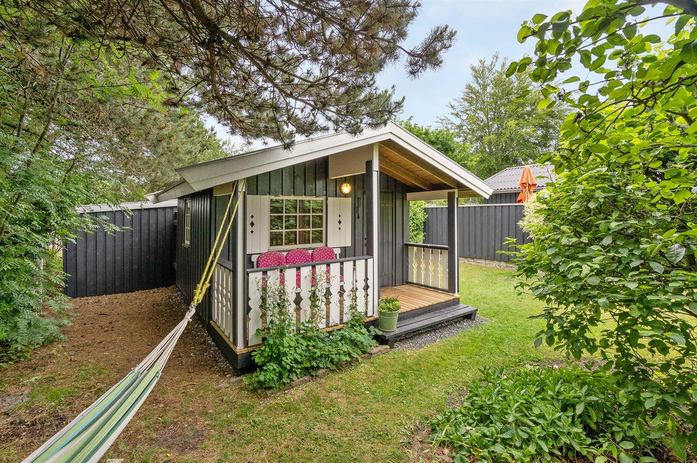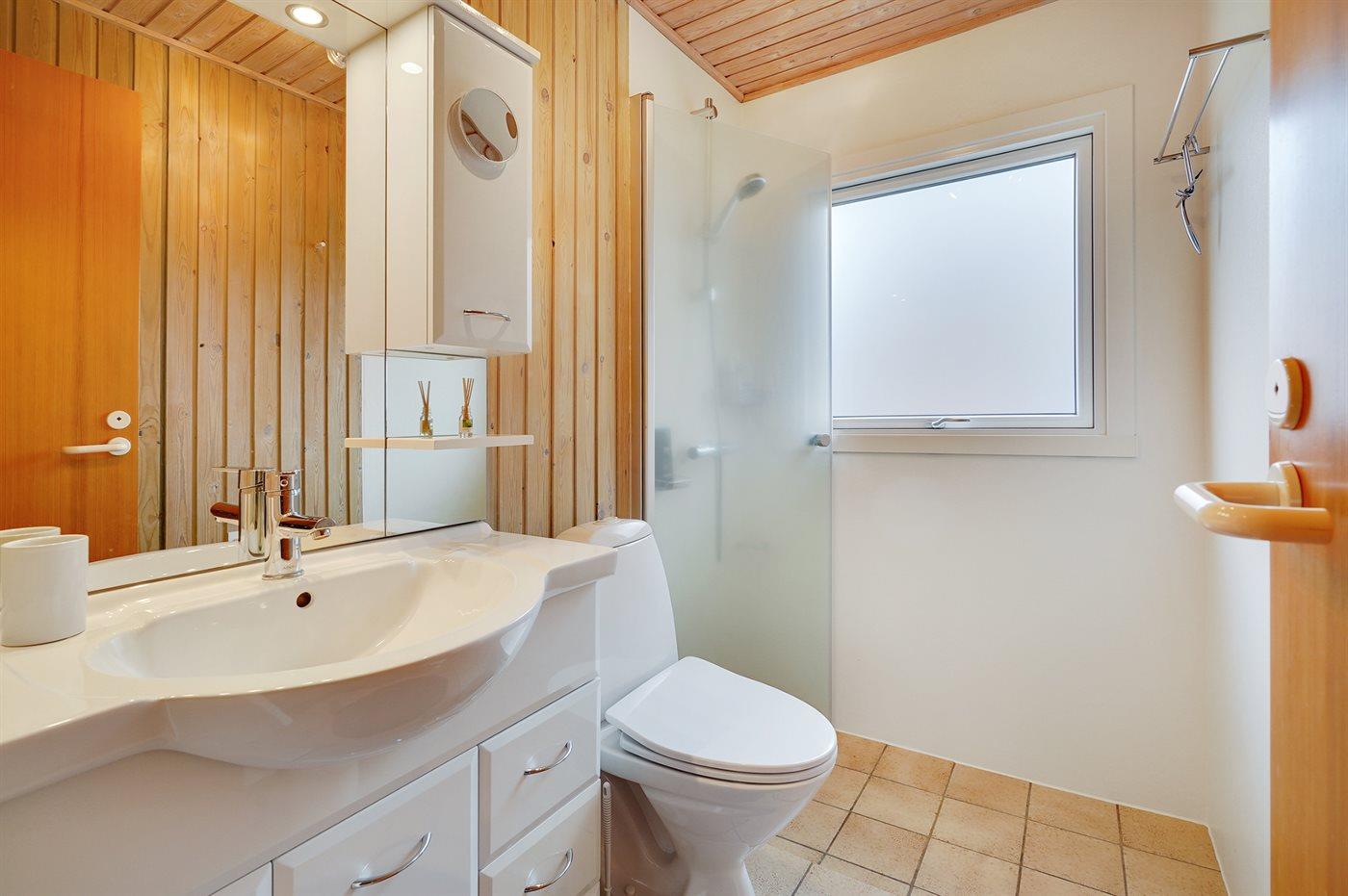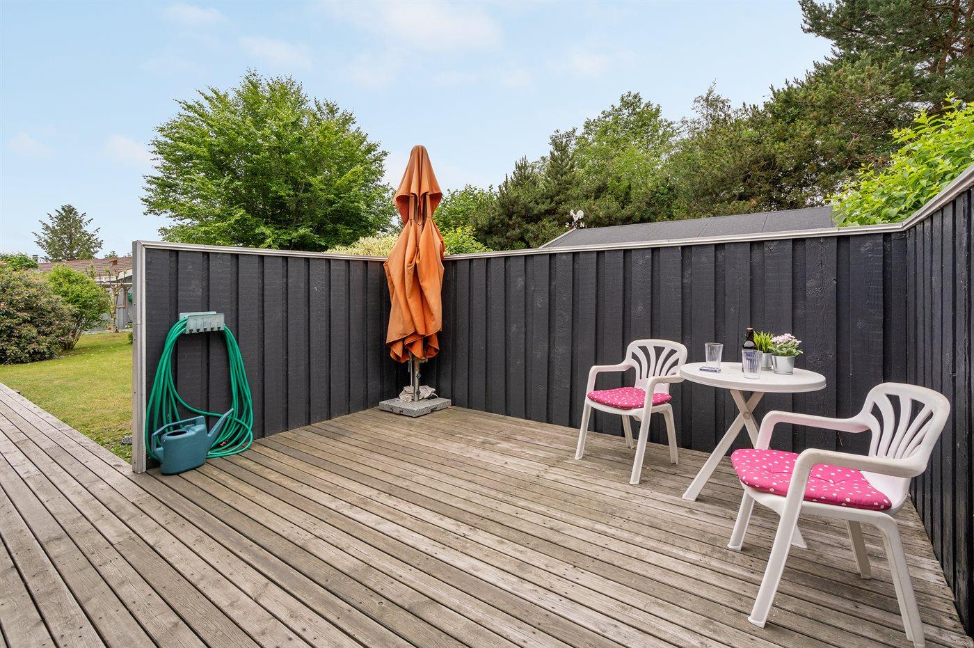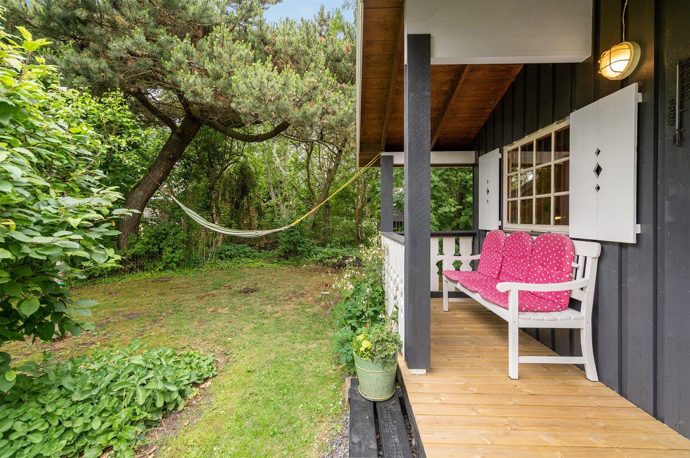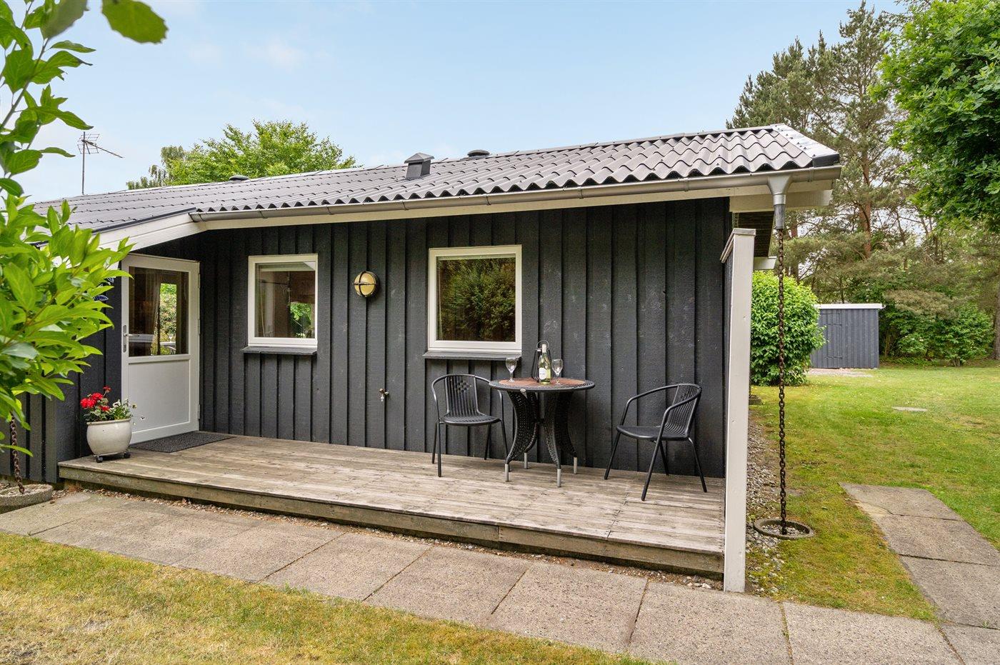 The holiday home is situated on a 1050 m² garden site. Situated 800 m from the sea. Nearest shop is 2500 m away. A 55 m² terrace belong to the holiday home. Furthermore the house has a 21 m² covered terrace. Hereof a total of 16 m² enclosed terrace. Parking place by the holiday home.