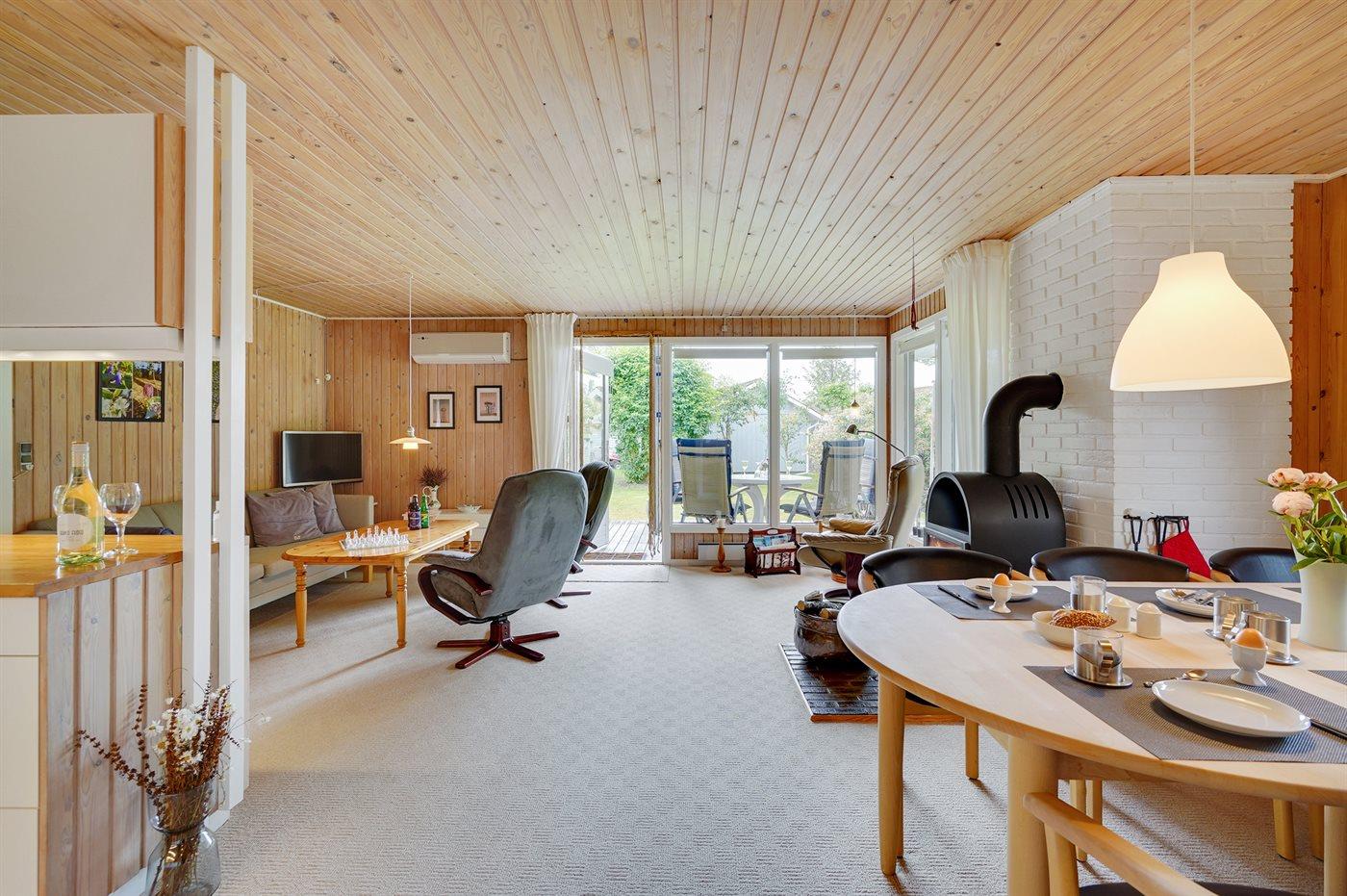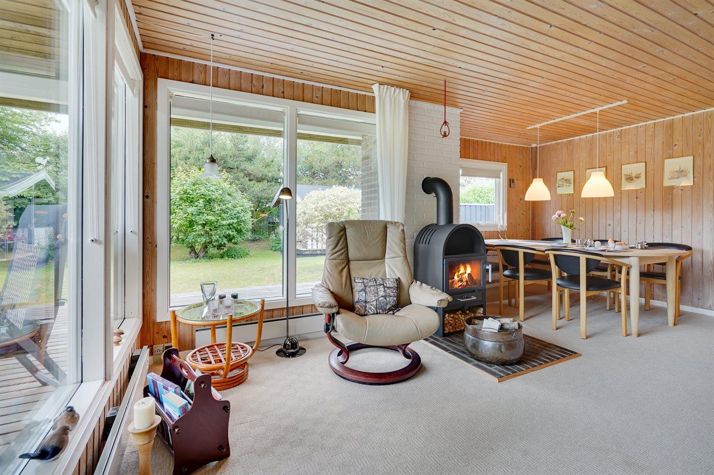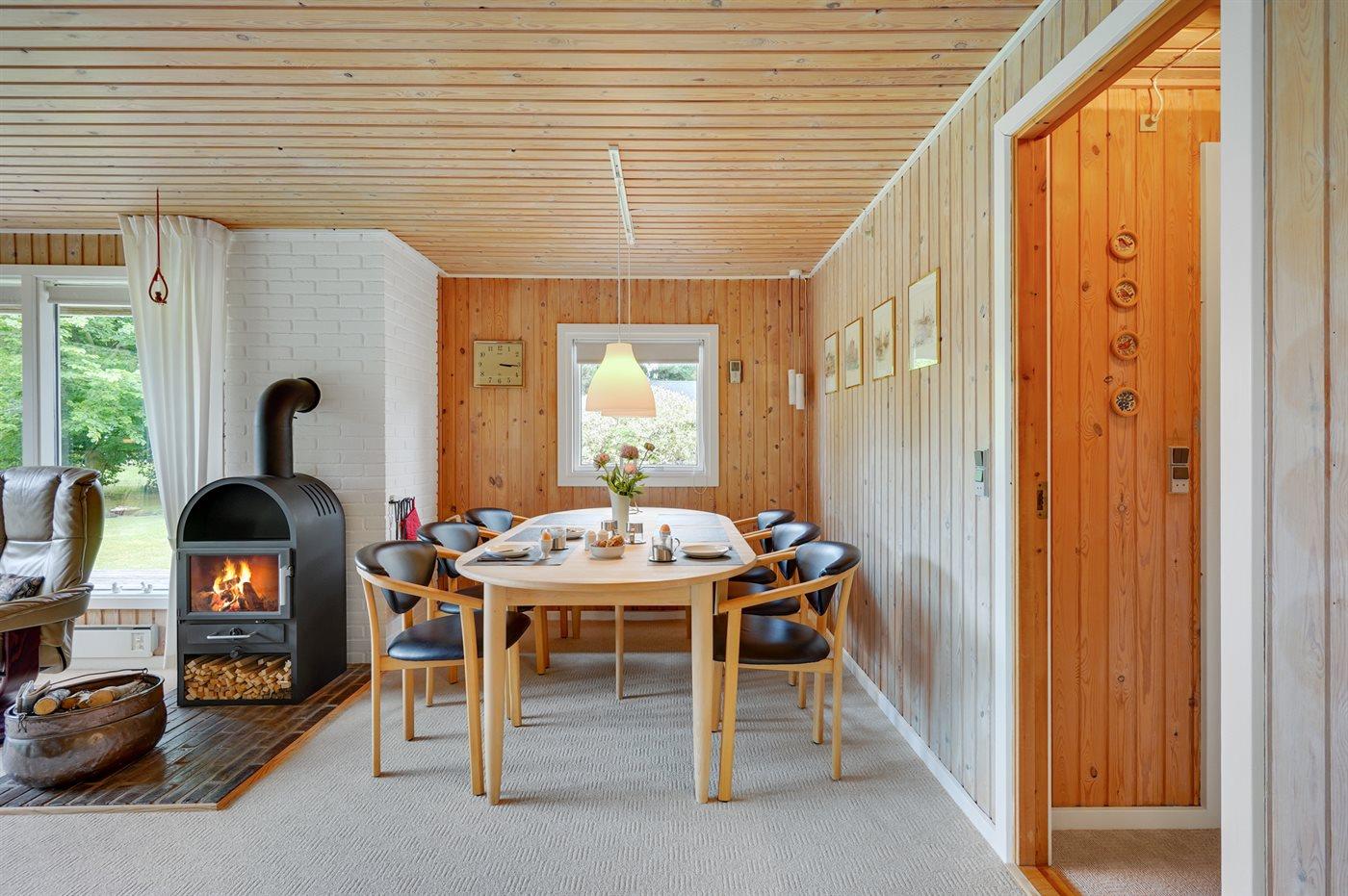 Holiday home suitable for 7 persons as well as 1 child up to 3 years. The holiday home is 70 m² and is build in 1981. In 2018 the holiday home was partial renovated. No pets allowed. The holiday home is equipped with energy-saving heat pump.} Freezer capacity of 20 litres. Further more there is 1 wood-burning stove. For the youngest ones there is 1 high chair. Changing table.