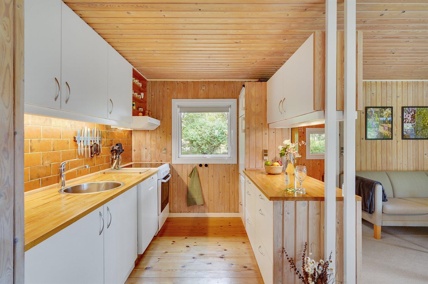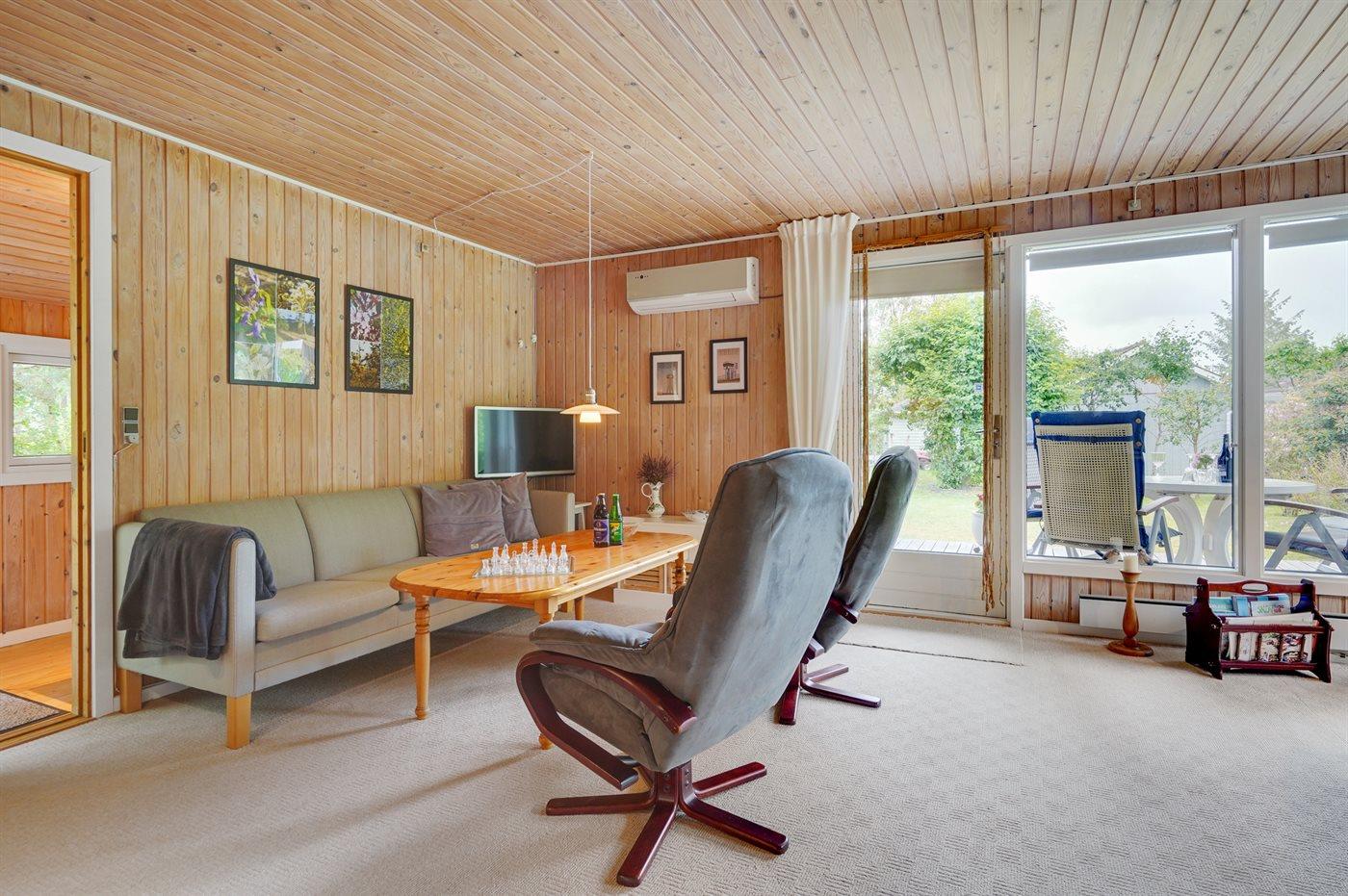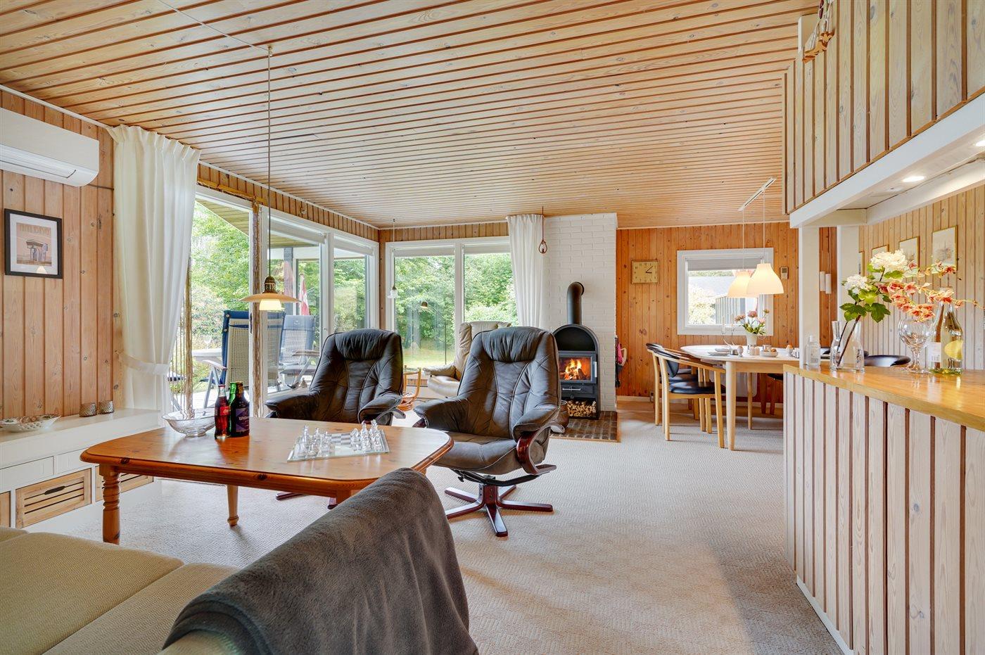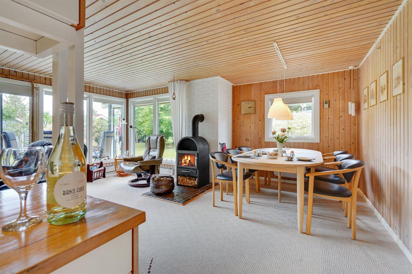 Holiday home suitable for 7 persons as well as 1 child up to 3 years. The holiday home is 70 m² and is build in 1981. In 2018 the holiday home was partial renovated. No pets allowed. The holiday home is equipped with energy-saving heat pump.} Freezer capacity of 20 litres. Further more there is 1 wood-burning stove. For the youngest ones there is 1 high chair. Changing table.