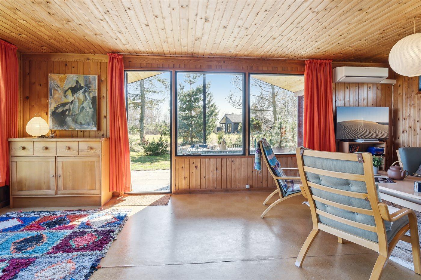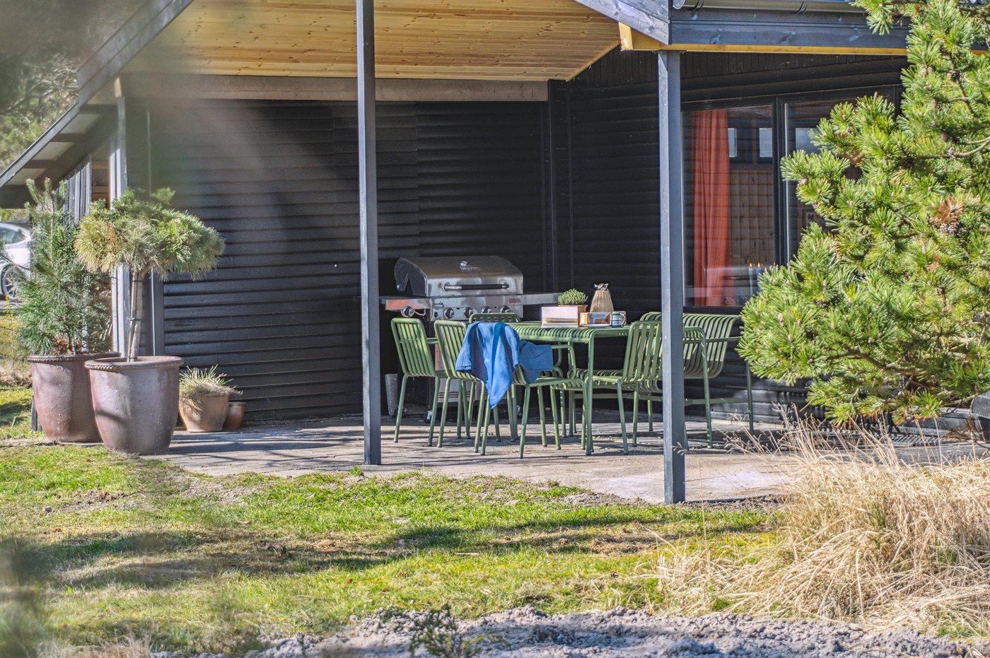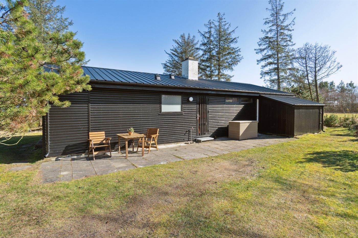 The holiday home is situated on a 1206 m² garden site. Situated 200 m from the sea. Situated 6100 m from inlet. Nearest shop is 1800 m away. You will find a golf course in a distance of 5600 m. Furthermore the house has a 21 m² covered terrace.Fire place. Barbecue at your disposal. Parking place by the holiday home.