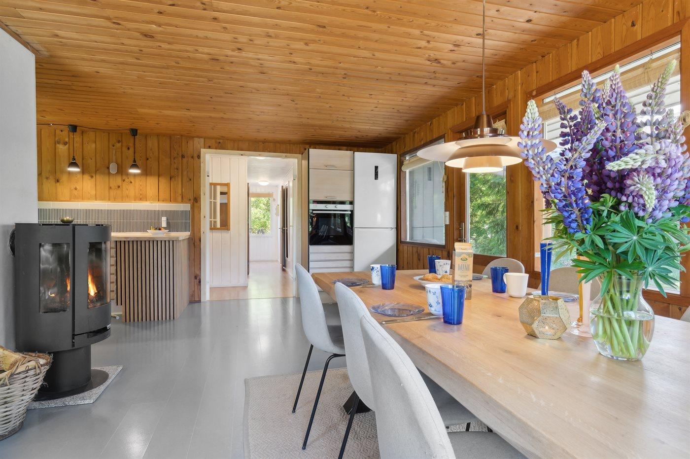 Holiday home suitable for 6 persons . 2 of the beds is only suitable for older children (4-11 years). The holiday home is 78 m² and is build in 1969. In 2022 the holiday home was renovated. You can bring along 2 pets. The holiday home is equipped with 1 energy-saving air-to-air heat pump. Floor heating in all tiled floors. The holiday home has washing machine. Freezer capacity of 80 litres. Further more there is 1 wood-burning stove. For the youngest ones there is 1 high chair.