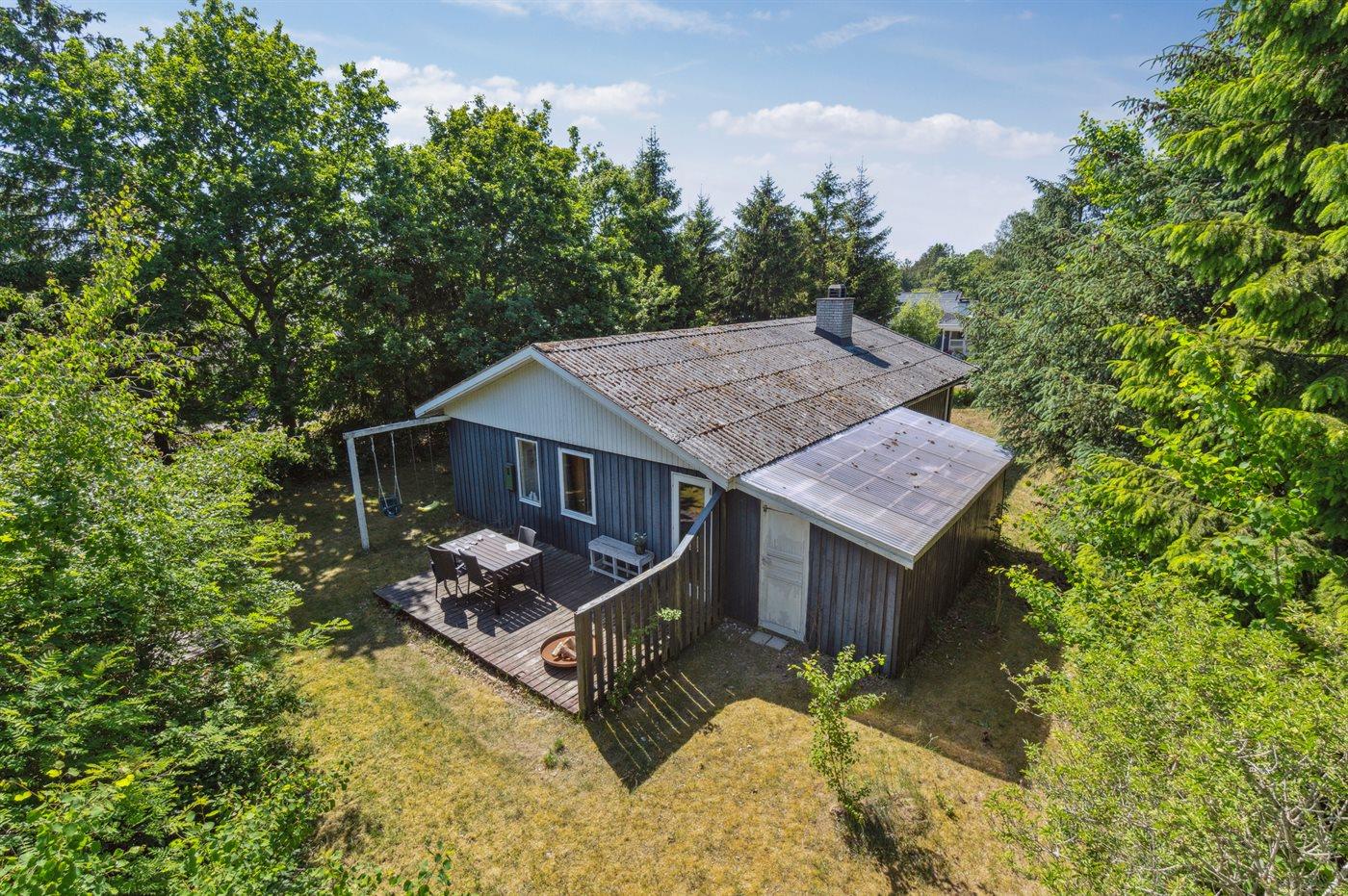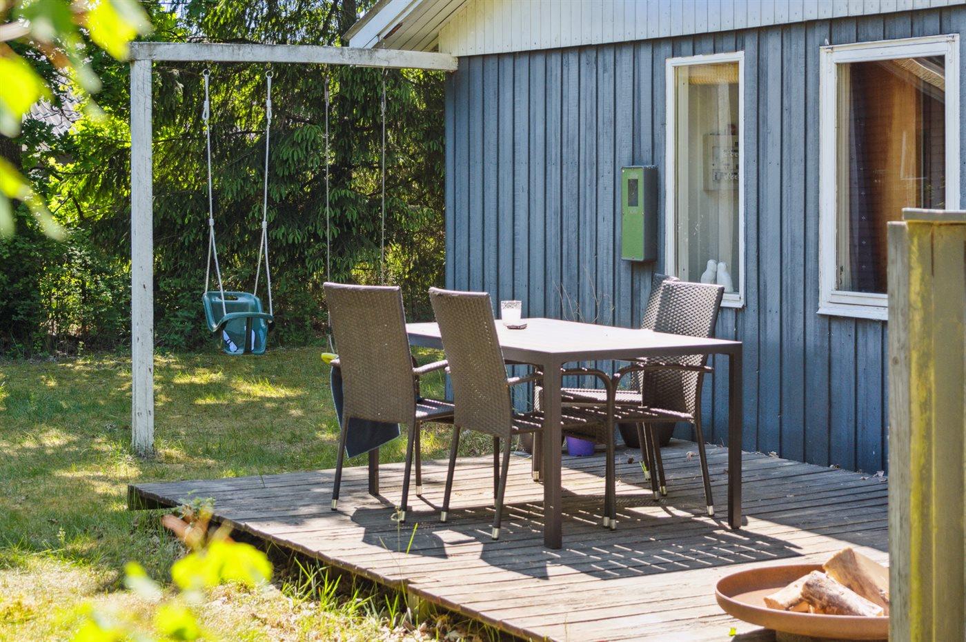 The holiday home is situated on a 1250 m² natural site. The site is fenced in. Situated 600 m from the sea. Nearest shop is 1000 m away. You will find a golf course in a distance of 5000 m. A terrace belong to the holiday home. Furthermore the house has a covered terrace. Swing. Situated 500 m from a playground.Fire place. Barbecue at your disposal. Parking place by the holiday home.