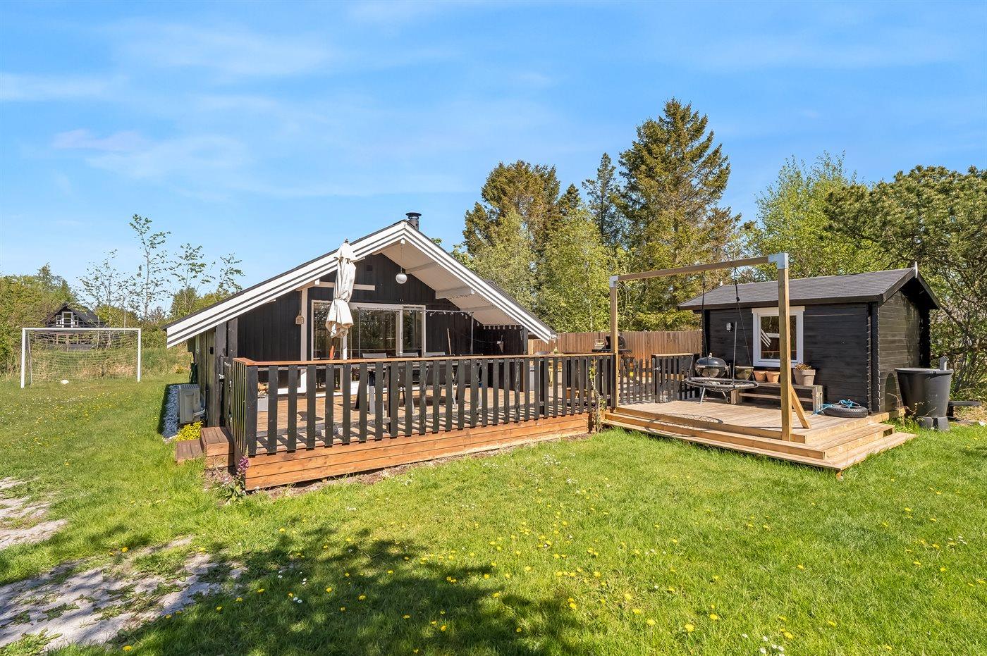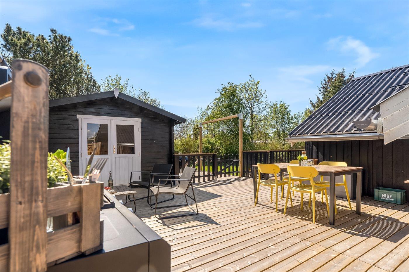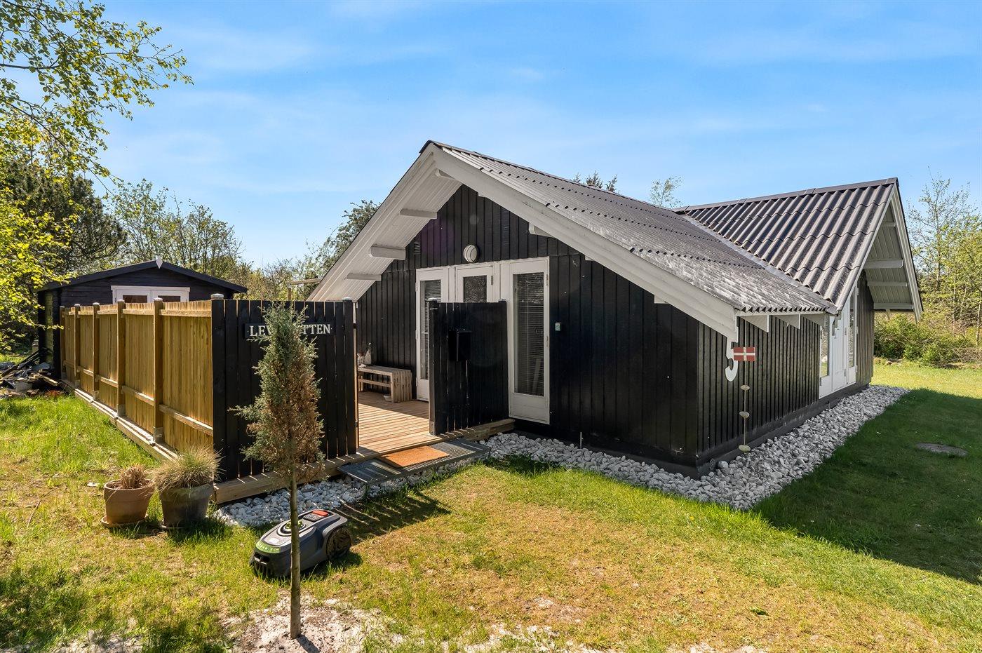The holiday home is situated on a 1579 m² natural site. Situated 800 m from the sea. Nearest shop is 2000 m away. A terrace belong to the holiday home. Furthermore the house has a covered terrace. You find a tool shed. Parking place by the holiday home.