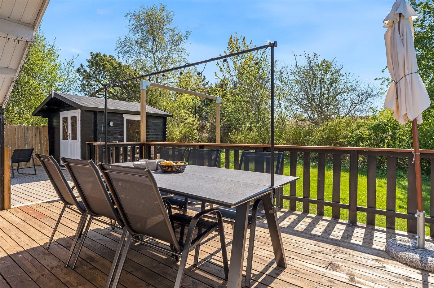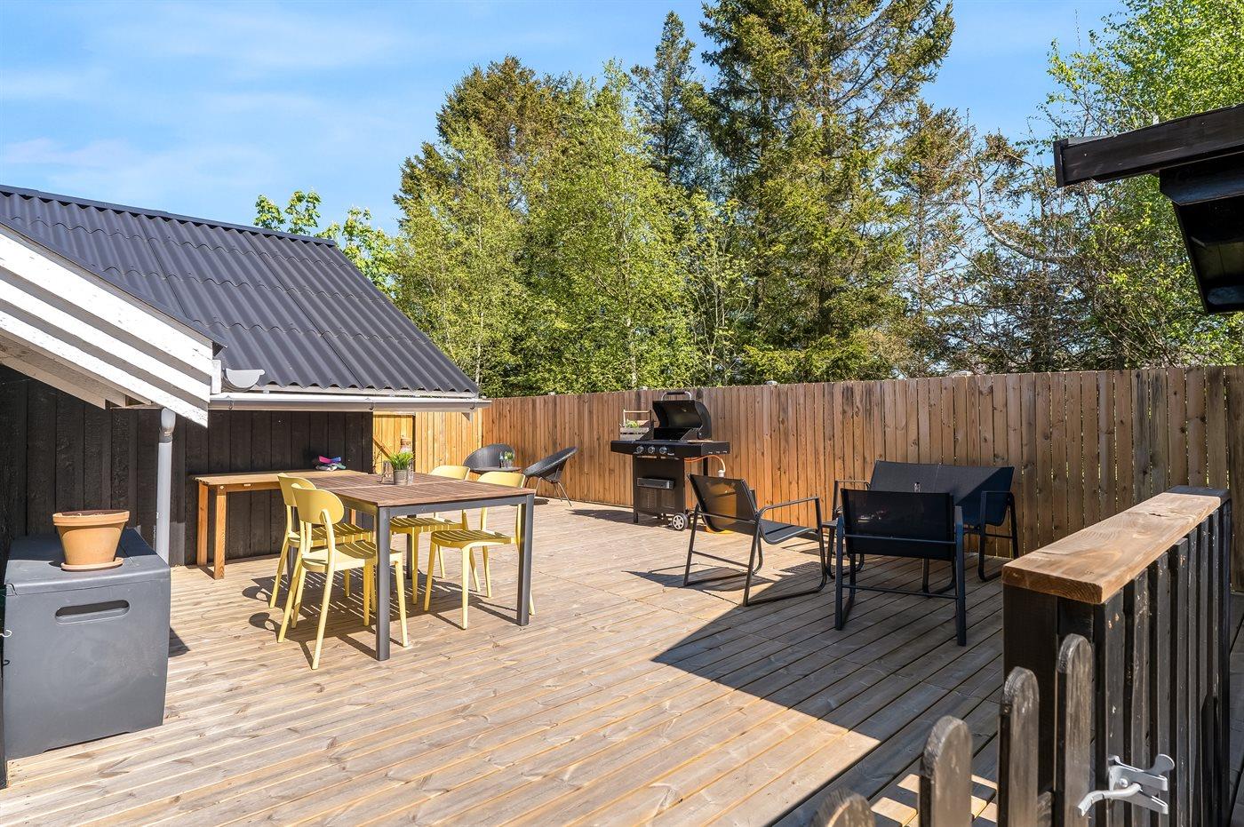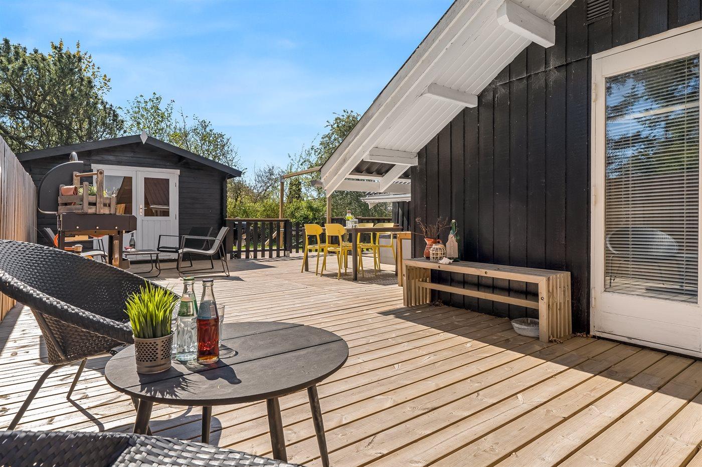 The holiday home is situated on a 1579 m² natural site. Situated 800 m from the sea. Nearest shop is 2000 m away. A terrace belong to the holiday home. Furthermore the house has a covered terrace. You find a tool shed. Parking place by the holiday home.