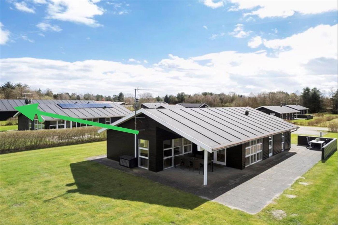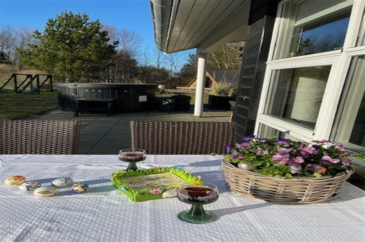 The holiday home is situated on a 1050 m² garden site. Situated 1900 m from the sea. Nearest shop is 1600 m away. A terrace belong to the holiday home. Furthermore the house has a covered terrace. Sandbox. Football goal.Fire place. Shelter. Barbecue at your disposal. Parking place by the holiday home.