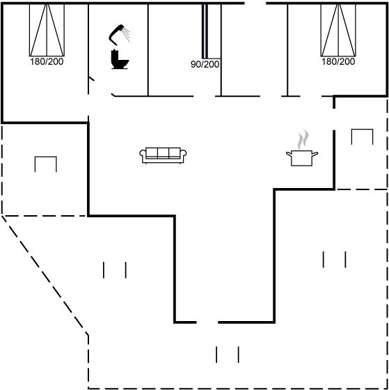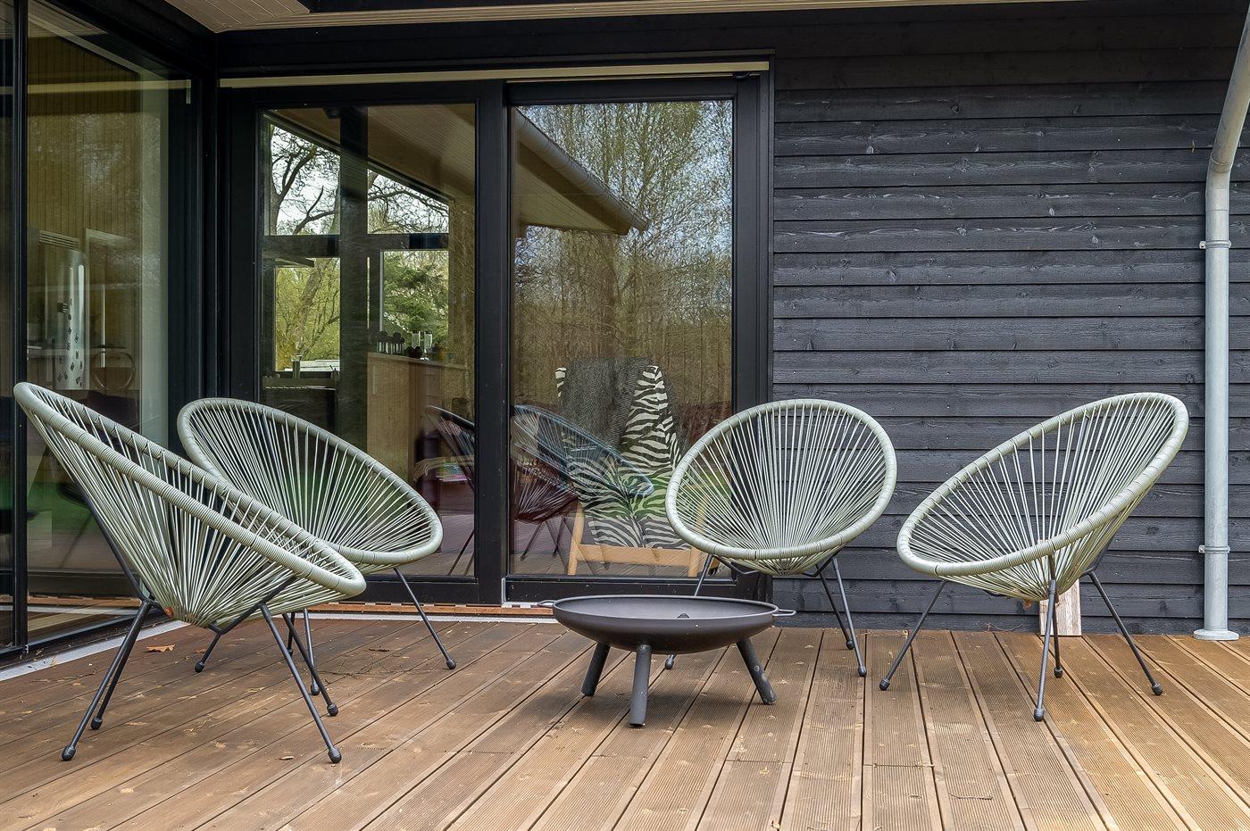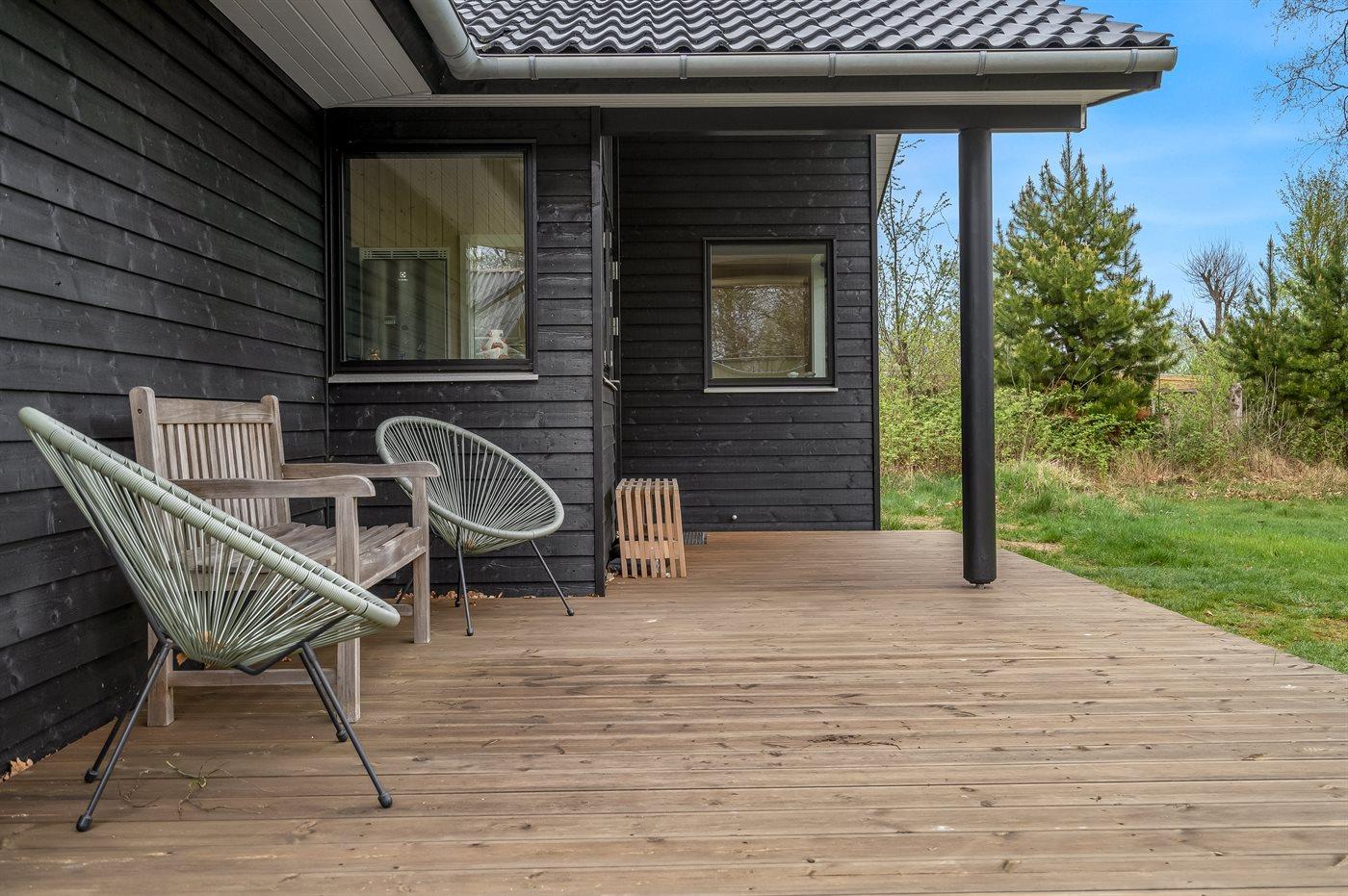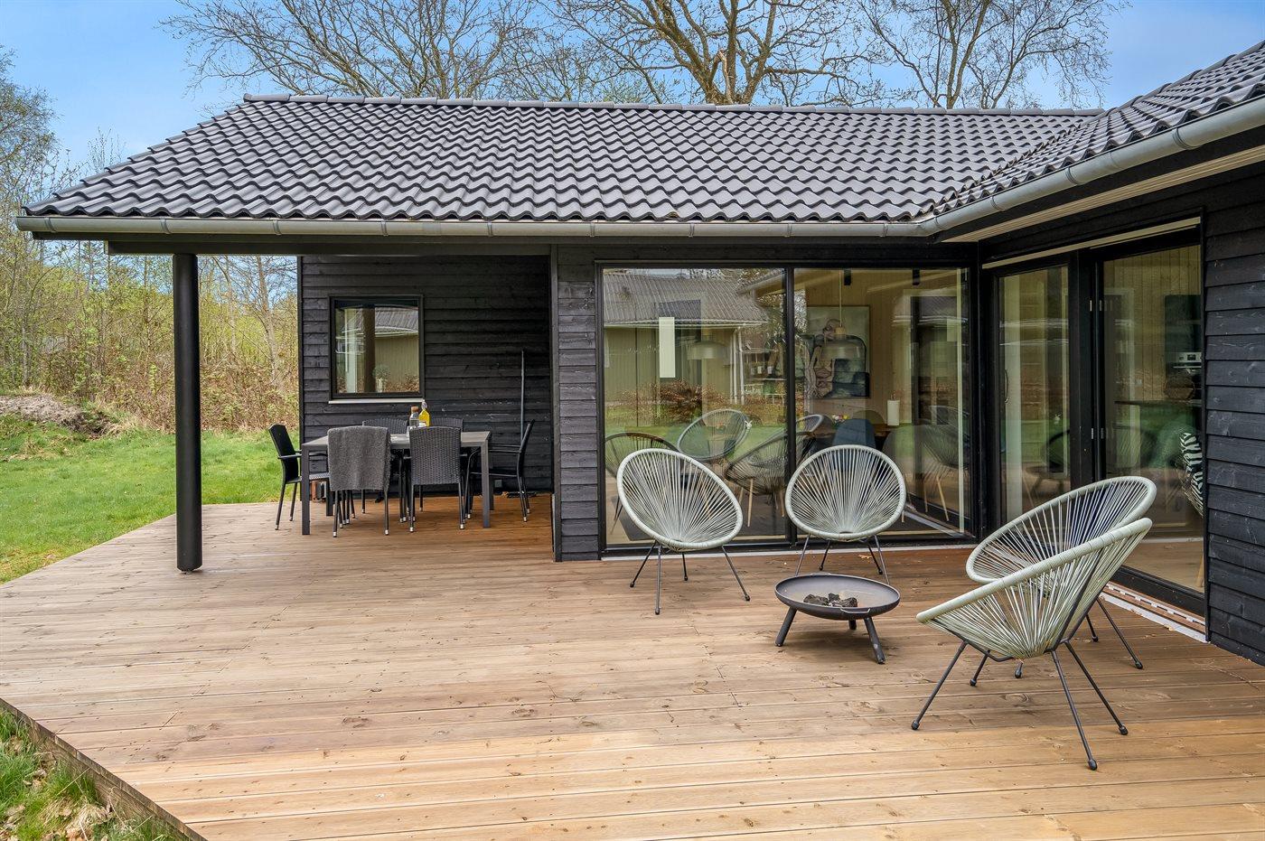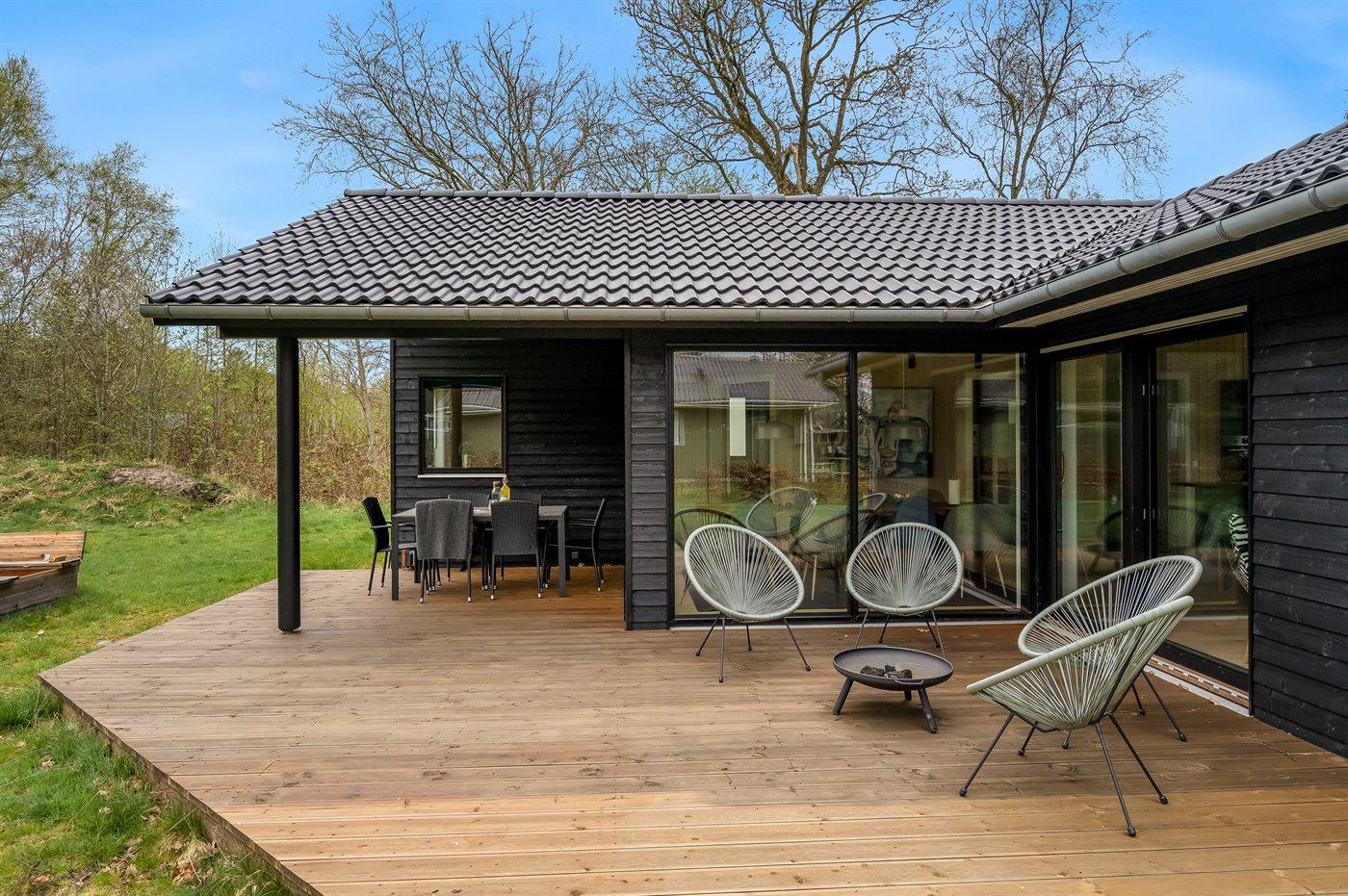 The holiday home is situated on a 1300 m² garden site. Situated 1500 m from the sea. Situated 7500 m from inlet. Nearest shop is 890 m away. You will find a golf course in a distance of 6400 m. A terrace belong to the holiday home. Furthermore the house has a covered terrace. Sandbox. Trampoline.Fire place. Barbecue at your disposal. Parking place by the holiday home.