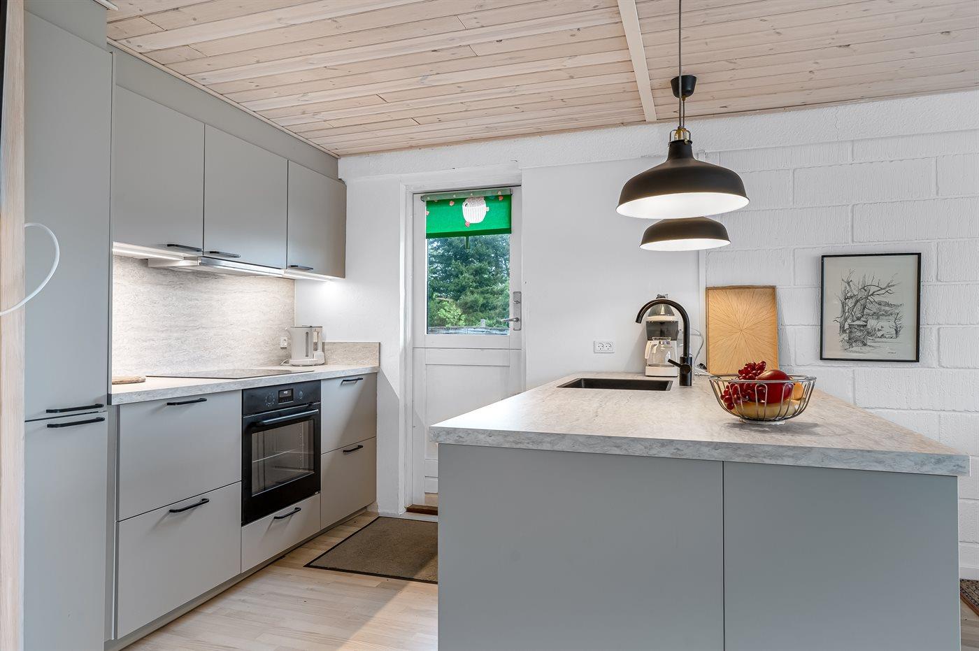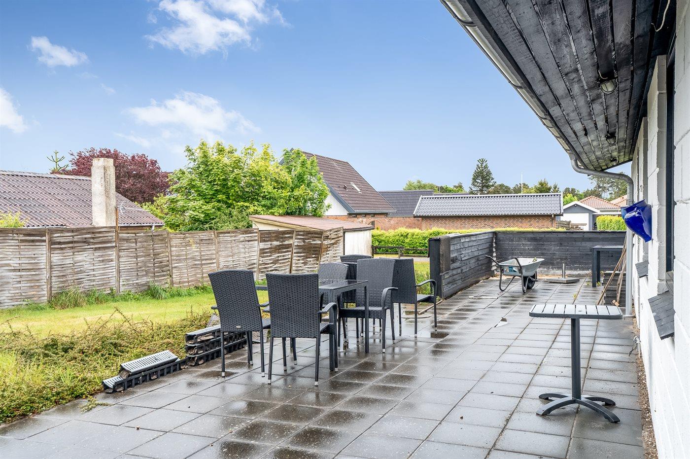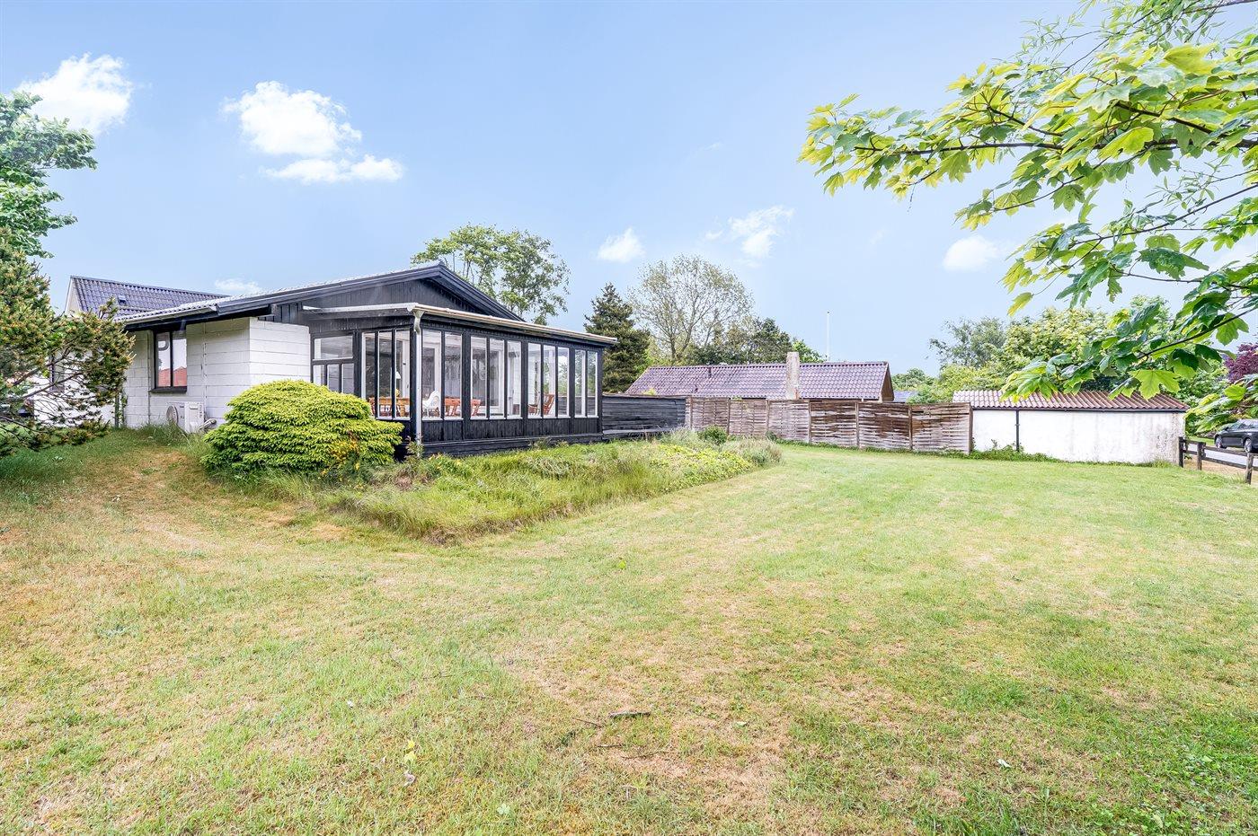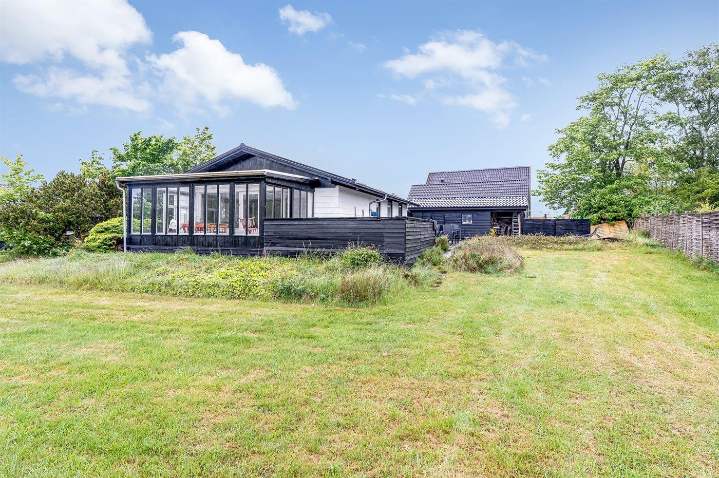 The holiday home is situated on a 890 m² garden site. Situated 650 m from the sea. Situated 7600 m from inlet. Nearest shop is 230 m away. You will find a golf course in a distance of 6800 m. A terrace belong to the holiday home. Barbecue at your disposal. Parking place by the holiday home.