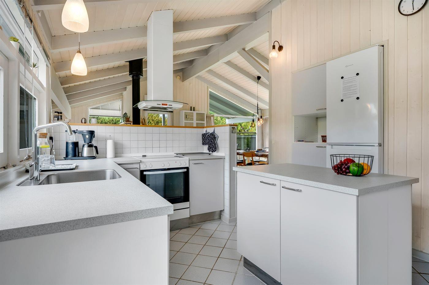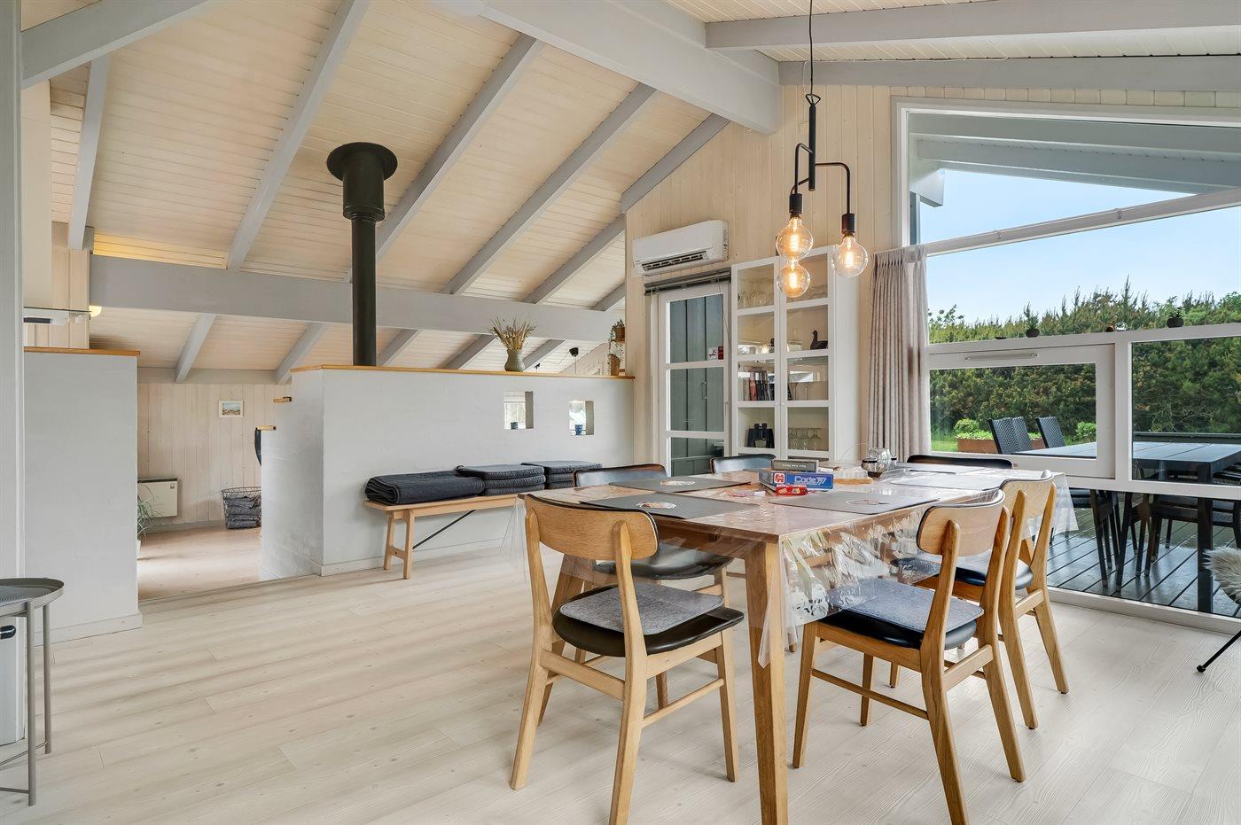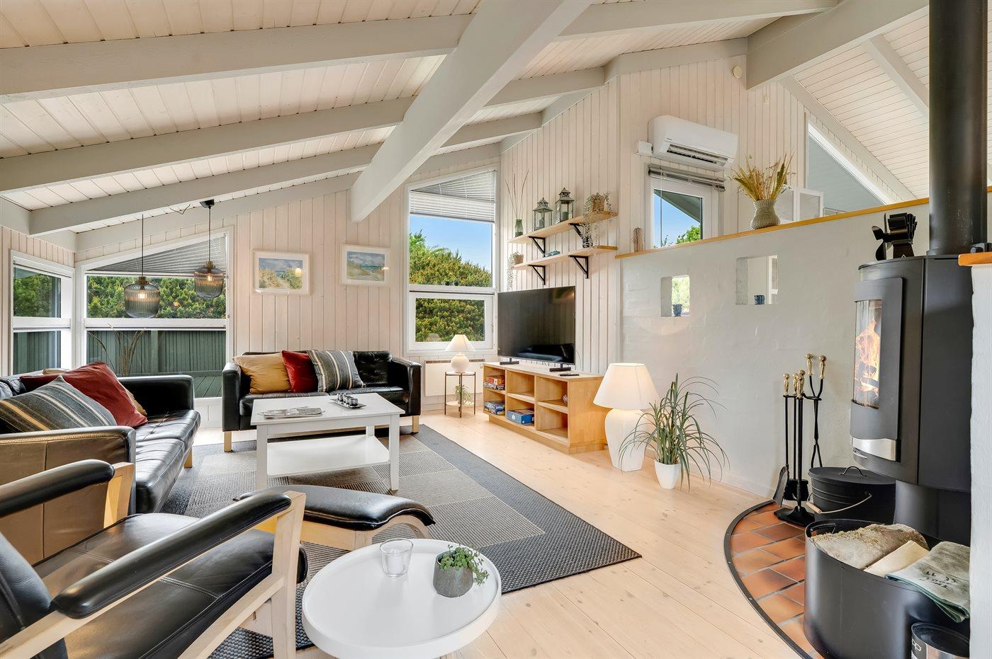 Holiday home suitable for 6 persons . 2 of the beds is only suitable for older children (4-11 years). The holiday home is 117 m² and is build in 1996. No pets allowed. The holiday home is equipped with 1 energy-friendly air-to-air heat pump. The holiday home contains a combined washer and dryer. Freezer capacity of 150 litres. Further more there is 1 wood-burning stove. For the youngest ones there is 1 high chair.