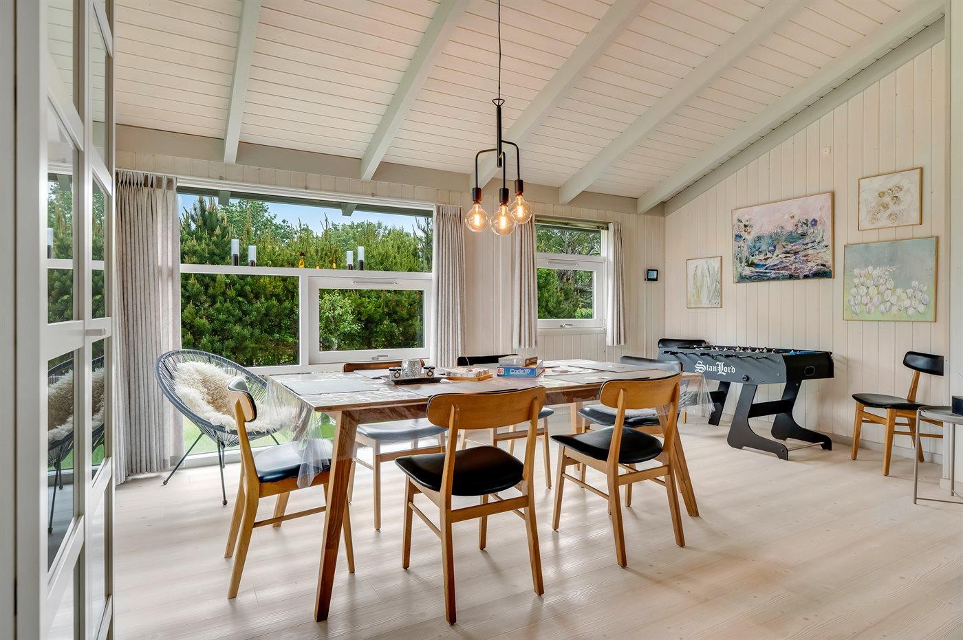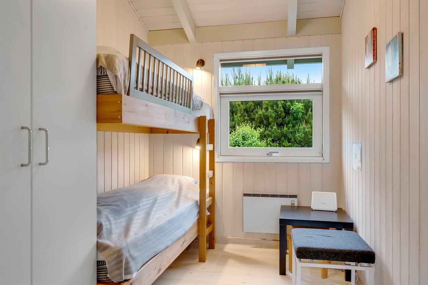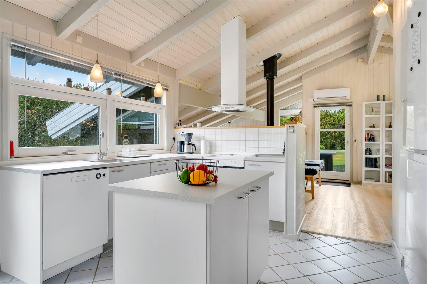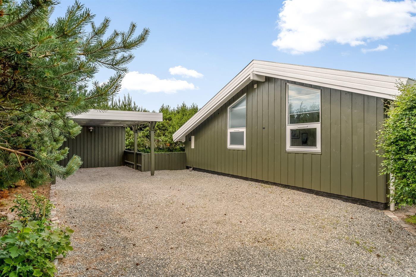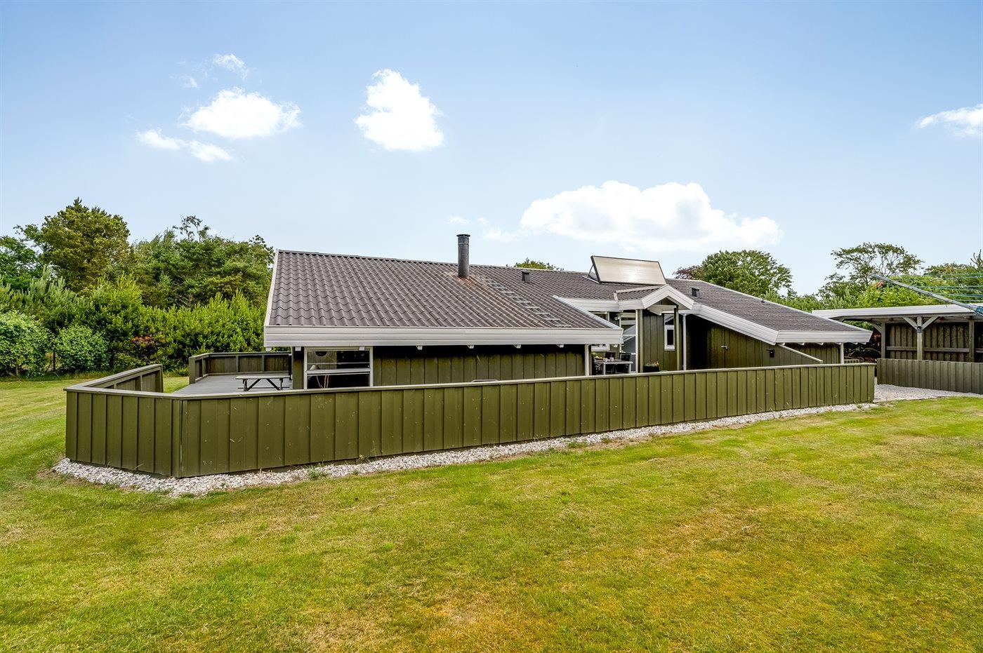 The holiday home is situated on a 1252 m² garden site. Situated 200 m from the sea. Situated 7300 m from inlet. Nearest shop is 600 m away. You will find a golf course in a distance of 5400 m. A terrace belong to the holiday home. Furthermore the house has a covered terrace. Swing. Slide. Barbecue at your disposal. Parking place by the holiday home.