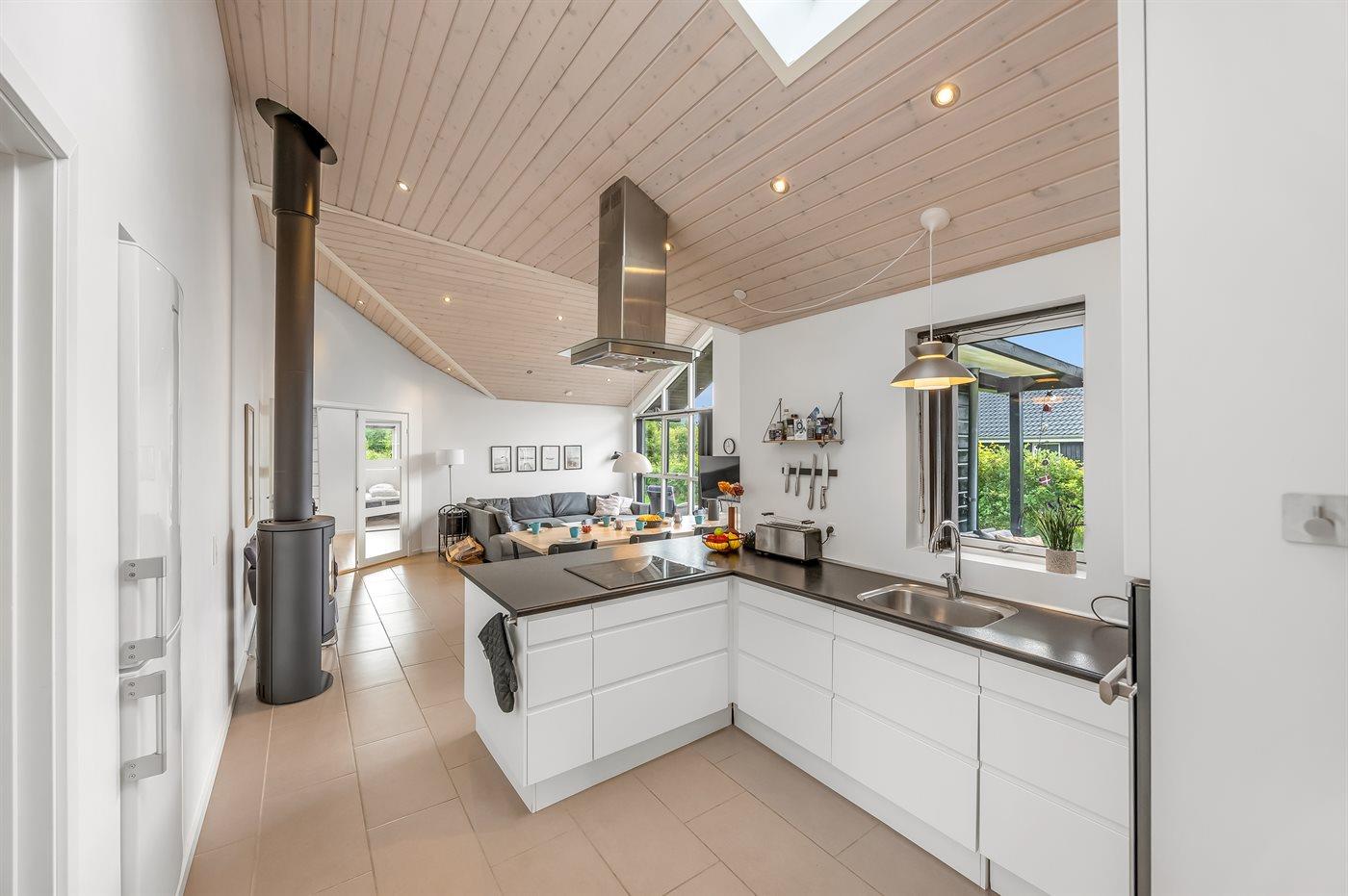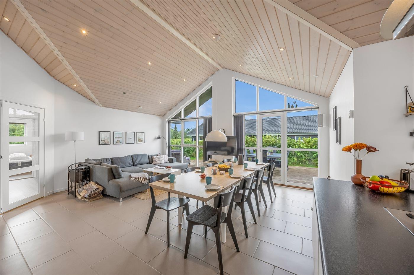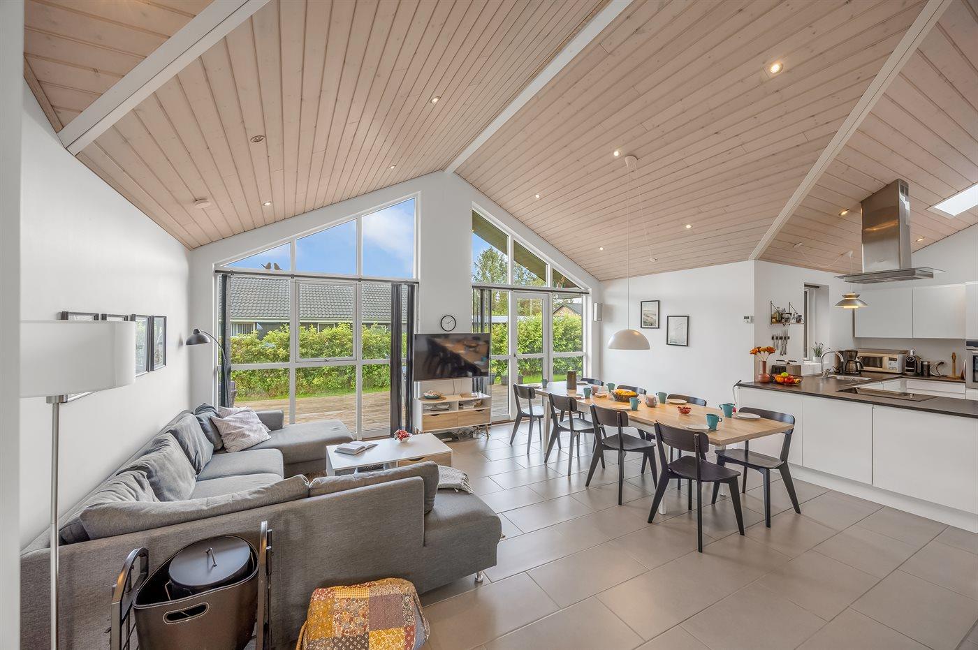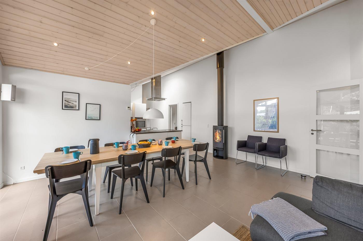 Holiday home suitable for 8 persons as well as 1 child up to 3 years. The holiday home is 135 m² and is build in 2017. No pets allowed. The holiday home is equipped with 1 energy-friendly air-to-water heat pump. There is floorheating all over the holiday home. The holiday home has washing machine. Tumble dryer. Freezer capacity of 64 litres. Further more there is 1 wood-burning stove. For the youngest ones there is 1 high chair.